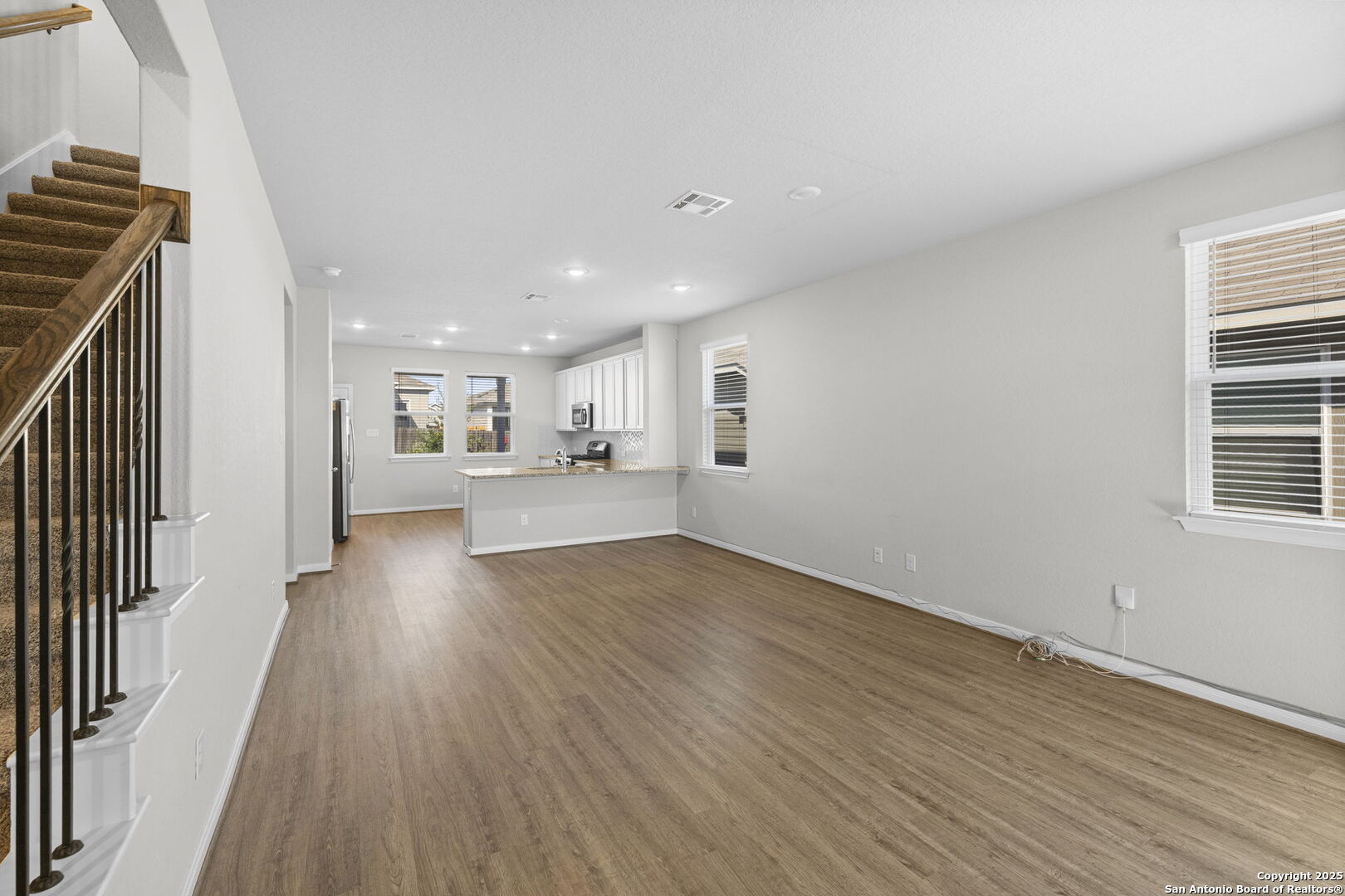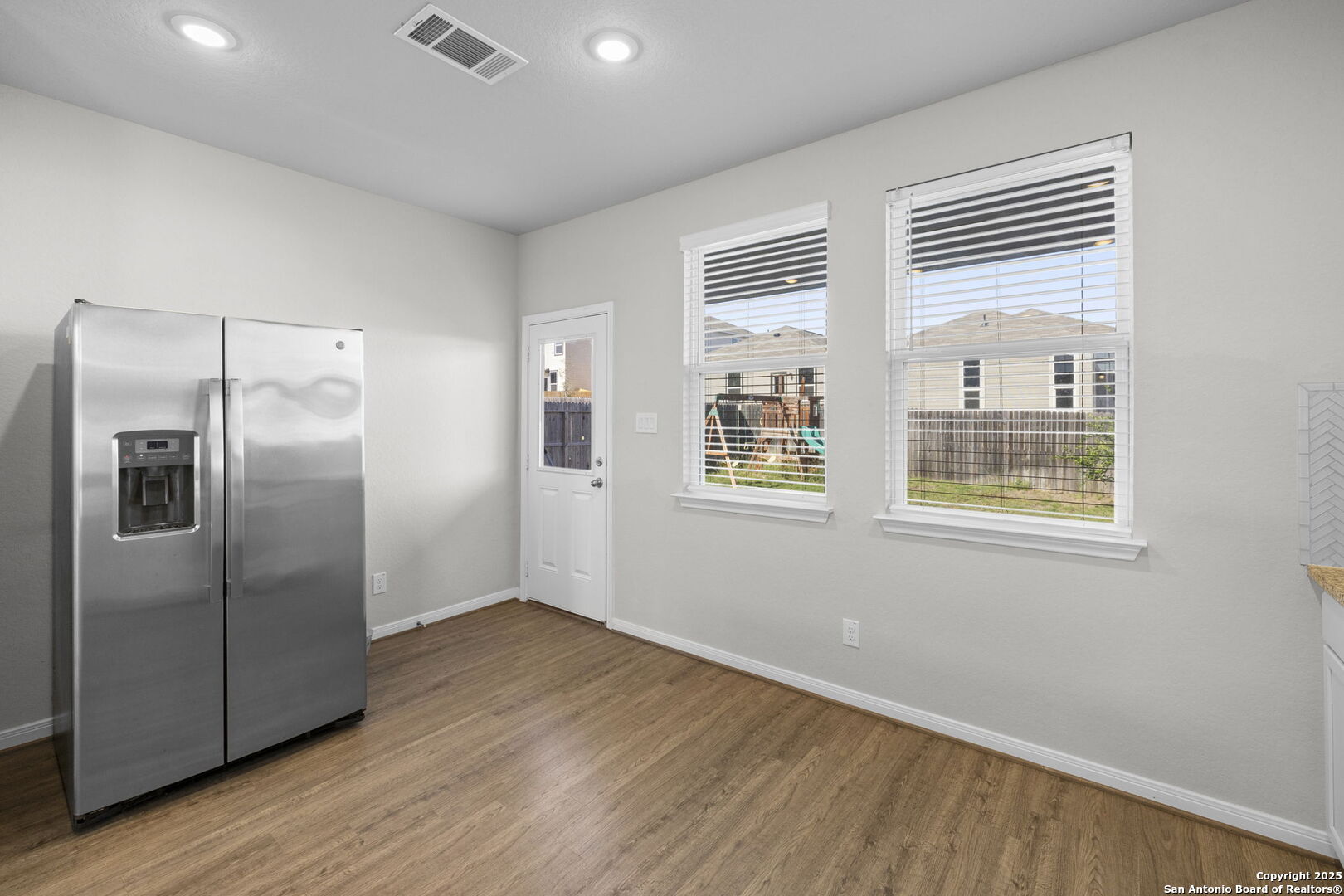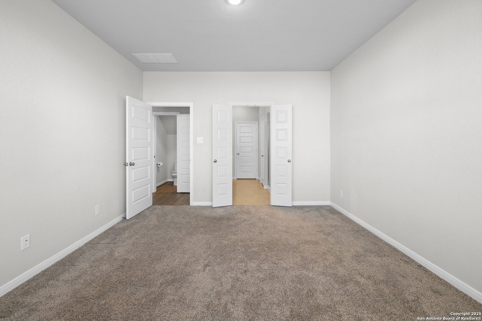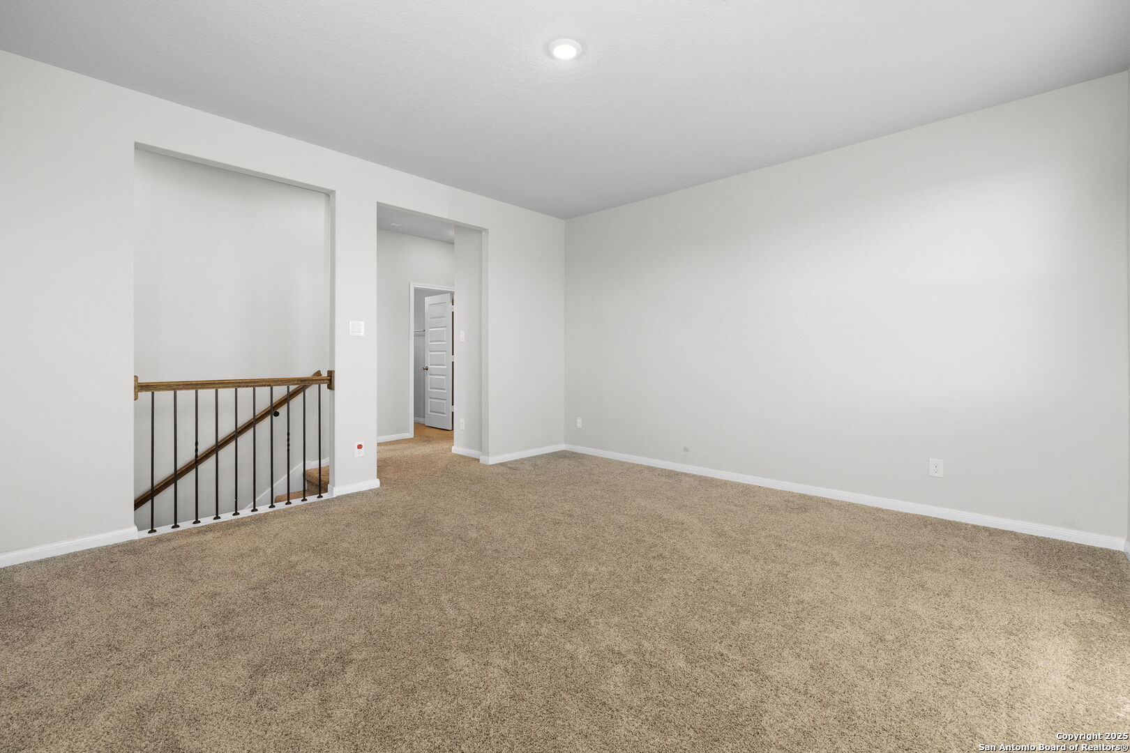 Welcome Home to Comfort, Style, and Convenience! Step into this cozy home featuring high ceilings and sleek laminate flooring throughout the main living areas, creating an open and inviting atmosphere perfect for everyday living and entertaining. The chef-inspired kitchen includes granite countertops, a striking herringbone backsplash, stainless steel appliances, and an extended breakfast bar ideal for casual dining or hosting guests. Retreat to the spacious primary suite offering an oversized shower, dual vanities, and a generous walk-in closet. Upstairs, you'll find versatile flex space and well-appointed secondary bedrooms that offer comfort and privacy for family or guests. Enjoy outdoor living on the covered back patio overlooking a flat, usable backyard great for relaxing or play. Additional upgrades include a garage door opener, water softener, irrigation system, and more! Conveniently located just minutes from Loop 1604, Randolph AFB, shopping, dining, entertainment, downtown San Antonio and community amenities this well-maintained home is ready for YOU! Please have your realtor inquire about a possible VA to VA Assumable Loan with a 2.75 interest rate.