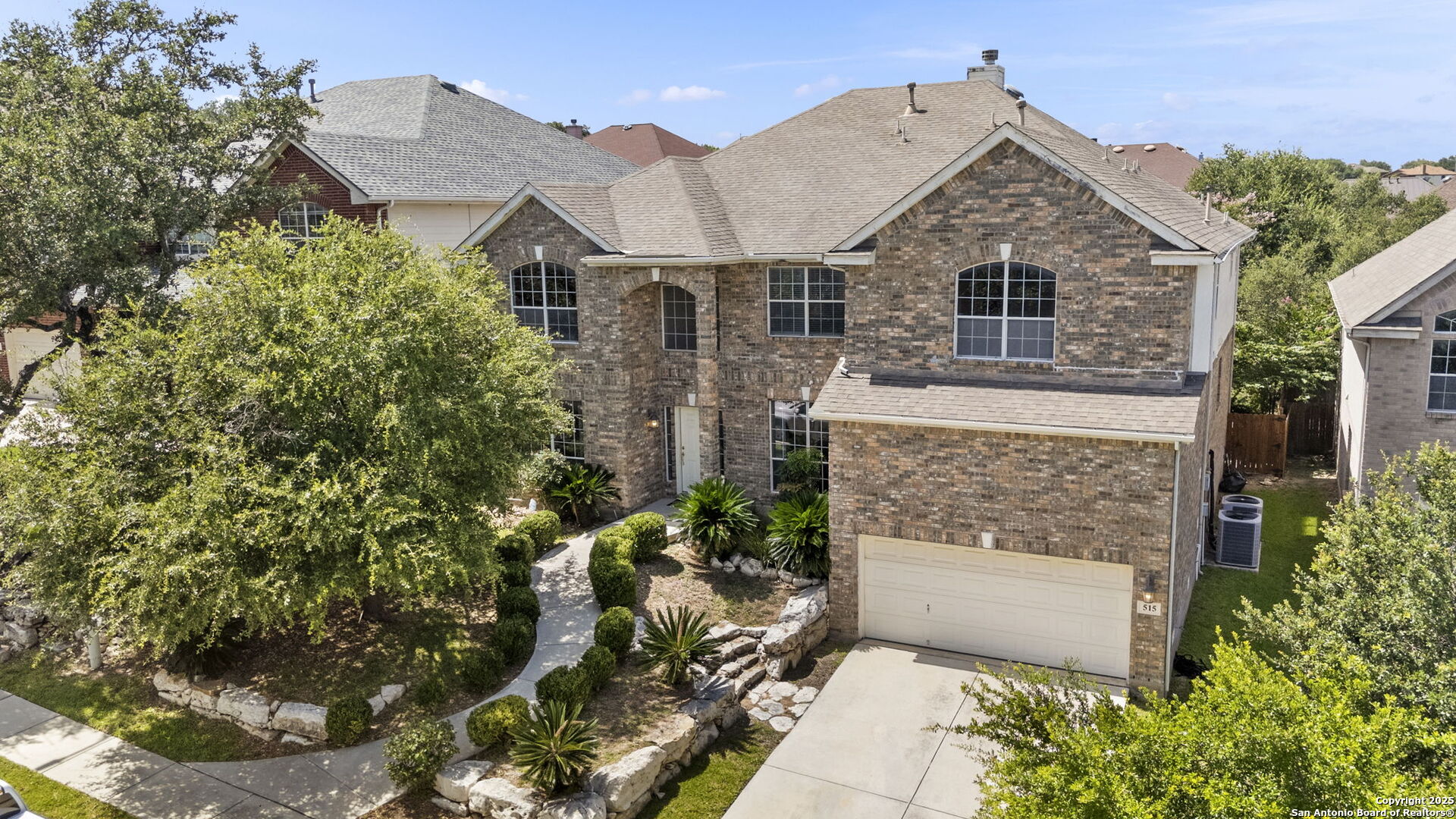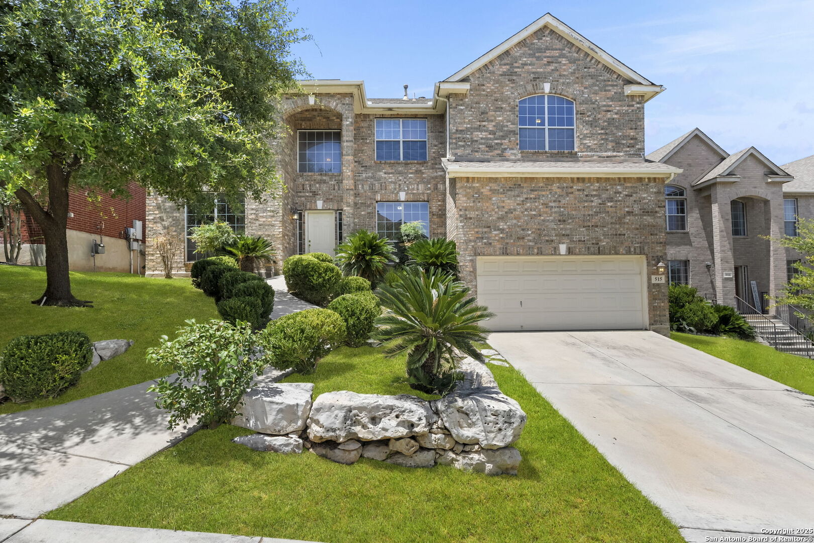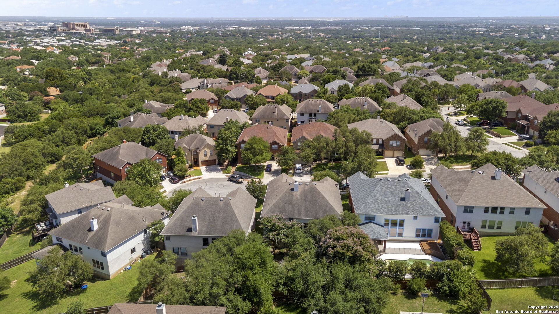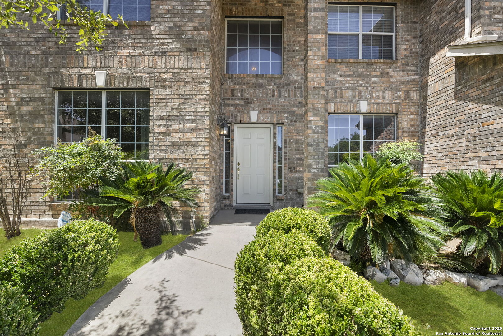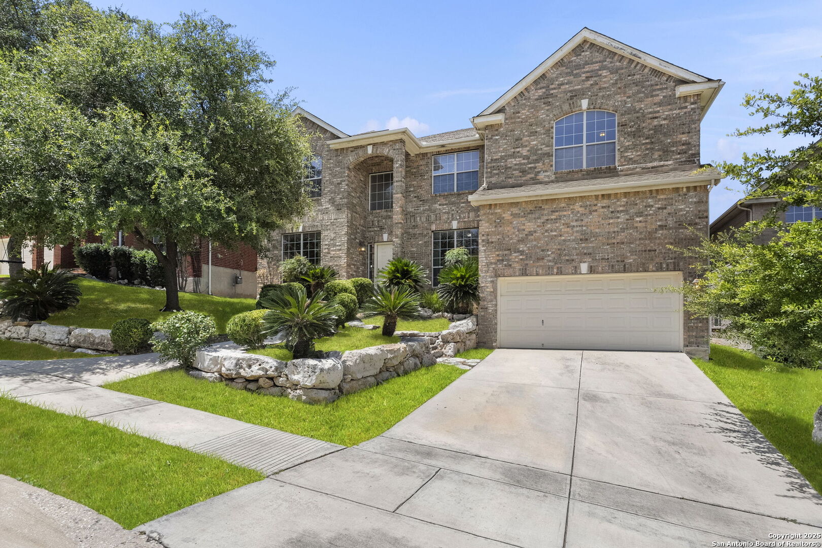 Motivated seller. Welcome home to this architecturally charming two-story gem with soaring vaulted ceilings, built by Legend Homes. Nestled in the privately gated community of The Peak at Promontory in Stone Oak, this home is surrounded by mature trees and features classic three-sided brick masonry. Ideally located just outside Loop 1604 in San Antonio's highly desirable North Side, this property offers excellent long-term investment potential and is just minutes from top-rated NEISD schools, Stone Oak amenities, shopping, dining, and major highways. Step inside and discover a bright, welcoming layout filled with natural light. You're greeted by a dedicated study and elegant formal living and dining spaces, enhanced by graceful arches and windows that bring the outdoors in. A beautifully crafted wood staircase flows into the heart of the home, a spacious, open-concept living area with soaring two-story ceilings, a dramatic wall of windows, and floors that create warmth and sophistication. The inviting living room centers around a cozy corner gas fireplace and offers serene views of the backyard, making it ideal for both relaxing evenings and entertaining guests. The adjoining chef's kitchen is thoughtfully designed with white cabinetry, granite countertops, a diamond-pattern ceramic tile backsplash, and stainless steel appliances, including a gas cooktop, oven, microwave, and dishwasher. A casual dining area, framed by archways, sits just off the kitchen, perfect for everyday meals or morning coffee. Throughout the home, tile, wood, and laminate flooring provide a clean, modern look, completely carpet-free. With five spacious bedrooms, three and a half baths, and versatile living spaces, there's room for everyone. The expansive upstairs game room is ideal for a home gym, media space, or playroom, and the dedicated media room is perfect for movie nights. The primary suite is a peaceful retreat with a spa-inspired bath featuring a walk-in shower, soaking tub, dual vanities, and a generous walk-in closet. Step outside into your own private oasis. The serene backyard offers a covered patio with charming wood accents and views of the lush, mature landscaping. Tall trees provide natural shade and a peaceful ambiance, while a spacious lawn and thoughtfully designed plant beds create the perfect setting for play, gardening, or outdoor entertaining. A stone pathway winds through the yard, adding character and convenience. Conveniently located near Loop 1604, US 281, and IH-10, you'll enjoy quick access to premier destinations like Canyon Springs Golf Club, TPC Parkway, JW Marriott Hill Country Resort, The Rim, La Cantera, and top local parks such as Eisenhower, Phil Hardberger, and McAllister. With nearby access to Camp Bullis and the airport, the location is as practical as it is beautiful. Surrounded by top-tier public and private schools and nestled in a community that feels like a retreat, this home isn't just a place to live; it's a story waiting to unfold.