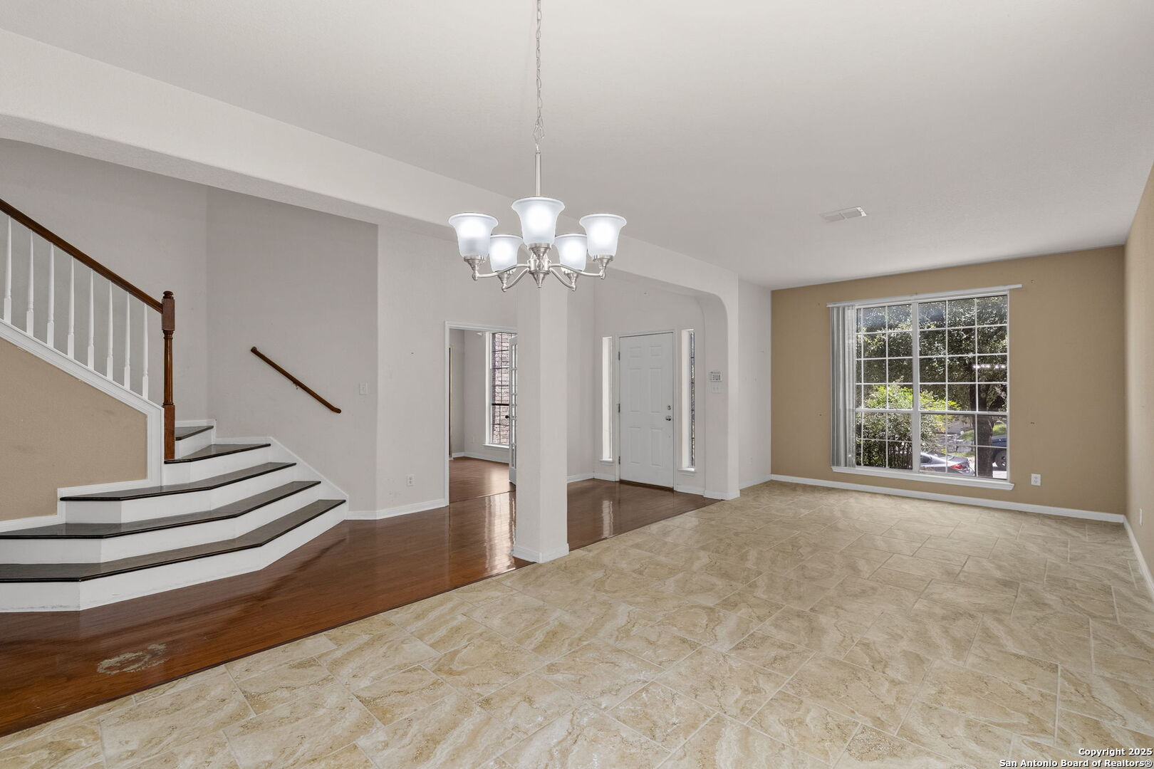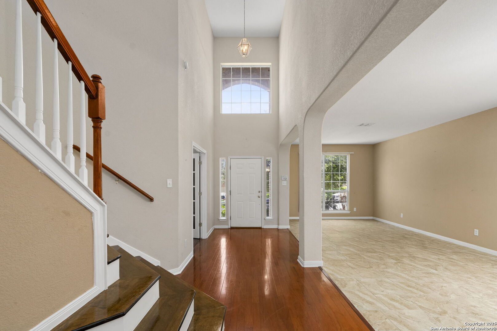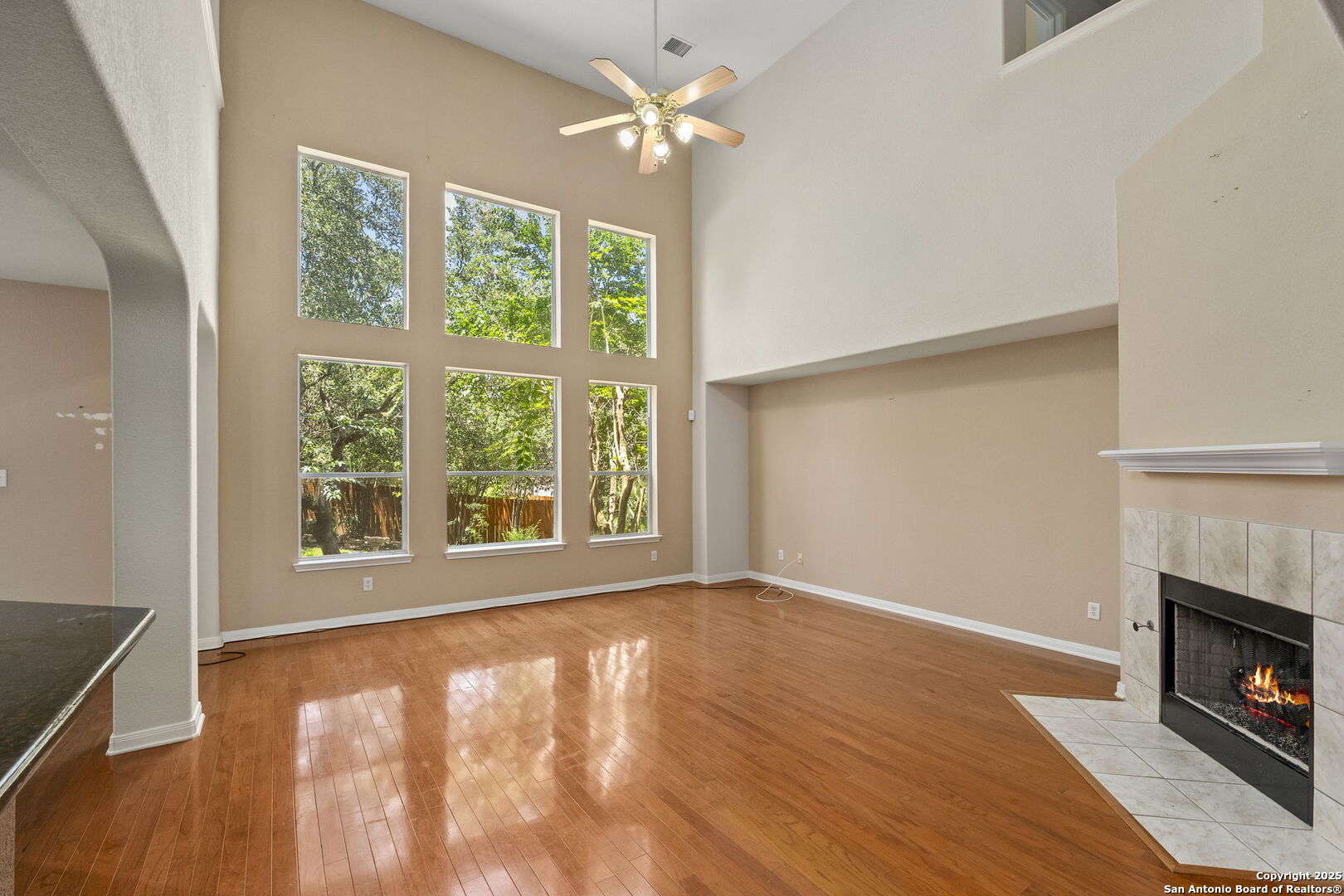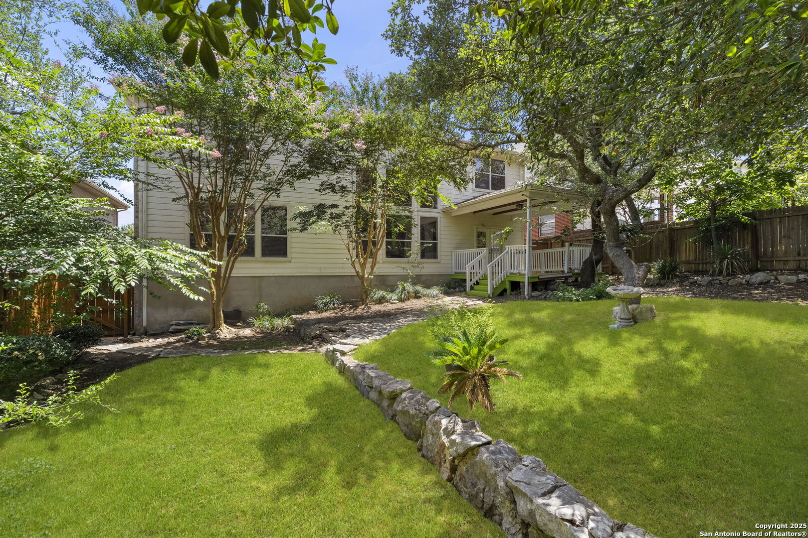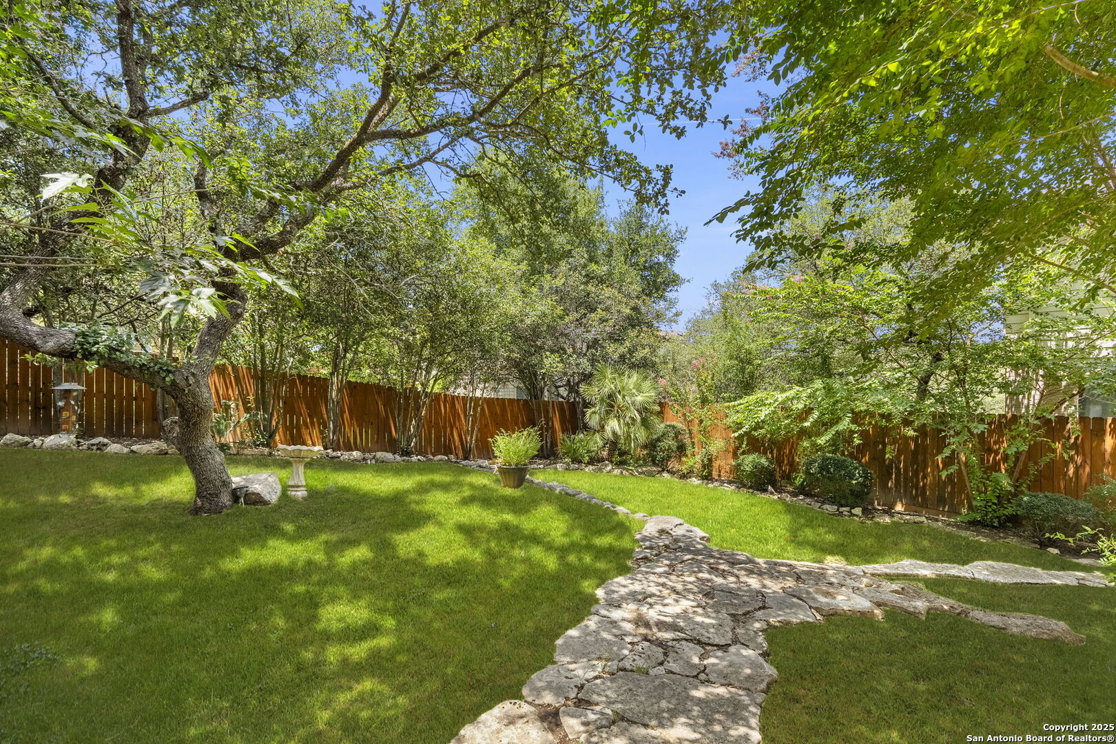 Motivated seller. Welcome home to this architecturally charming two-story gem with soaring vaulted ceilings, built by Legend Homes. Nestled in the privately gated community of The Peak at Promontory in Stone Oak, this home is surrounded by mature trees and features classic three-sided brick masonry. Ideally located just outside Loop 1604 in San Antonio's highly desirable North Side, this property offers excellent long-term investment potential and is just minutes from top-rated NEISD schools, Stone Oak amenities, shopping, dining, and major highways. Step inside and discover a bright, welcoming layout filled with natural light. You're greeted by a dedicated study and elegant formal living and dining spaces, enhanced by graceful arches and windows that bring the outdoors in. A beautifully crafted wood staircase flows into the heart of the home, a spacious, open-concept living area with soaring two-story ceilings, a dramatic wall of windows, and floors that create warmth and sophistication. The inviting living room centers around a cozy corner gas fireplace and offers serene views of the backyard, making it ideal for both relaxing evenings and entertaining guests. The adjoining chef's kitchen is thoughtfully designed with white cabinetry, granite countertops, a diamond-pattern ceramic tile backsplash, and stainless steel appliances, including a gas cooktop, oven, microwave, and dishwasher. A casual dining area, framed by archways, sits just off the kitchen, perfect for everyday meals or morning coffee. Throughout the home, tile, wood, and laminate flooring provide a clean, modern look, completely carpet-free. With five spacious bedrooms, three and a half baths, and versatile living spaces, there's room for everyone. The expansive upstairs game room is ideal for a home gym, media space, or playroom, and the dedicated media room is perfect for movie nights. The primary suite is a peaceful retreat with a spa-inspired bath featuring a walk-in shower, soaking tub, dual vanities, and a generous walk-in closet. Step outside into your own private oasis. The serene backyard offers a covered patio with charming wood accents and views of the lush, mature landscaping. Tall trees provide natural shade and a peaceful ambiance, while a spacious lawn and thoughtfully designed plant beds create the perfect setting for play, gardening, or outdoor entertaining. A stone pathway winds through the yard, adding character and convenience. Conveniently located near Loop 1604, US 281, and IH-10, you'll enjoy quick access to premier destinations like Canyon Springs Golf Club, TPC Parkway, JW Marriott Hill Country Resort, The Rim, La Cantera, and top local parks such as Eisenhower, Phil Hardberger, and McAllister. With nearby access to Camp Bullis and the airport, the location is as practical as it is beautiful. Surrounded by top-tier public and private schools and nestled in a community that feels like a retreat, this home isn't just a place to live; it's a story waiting to unfold.