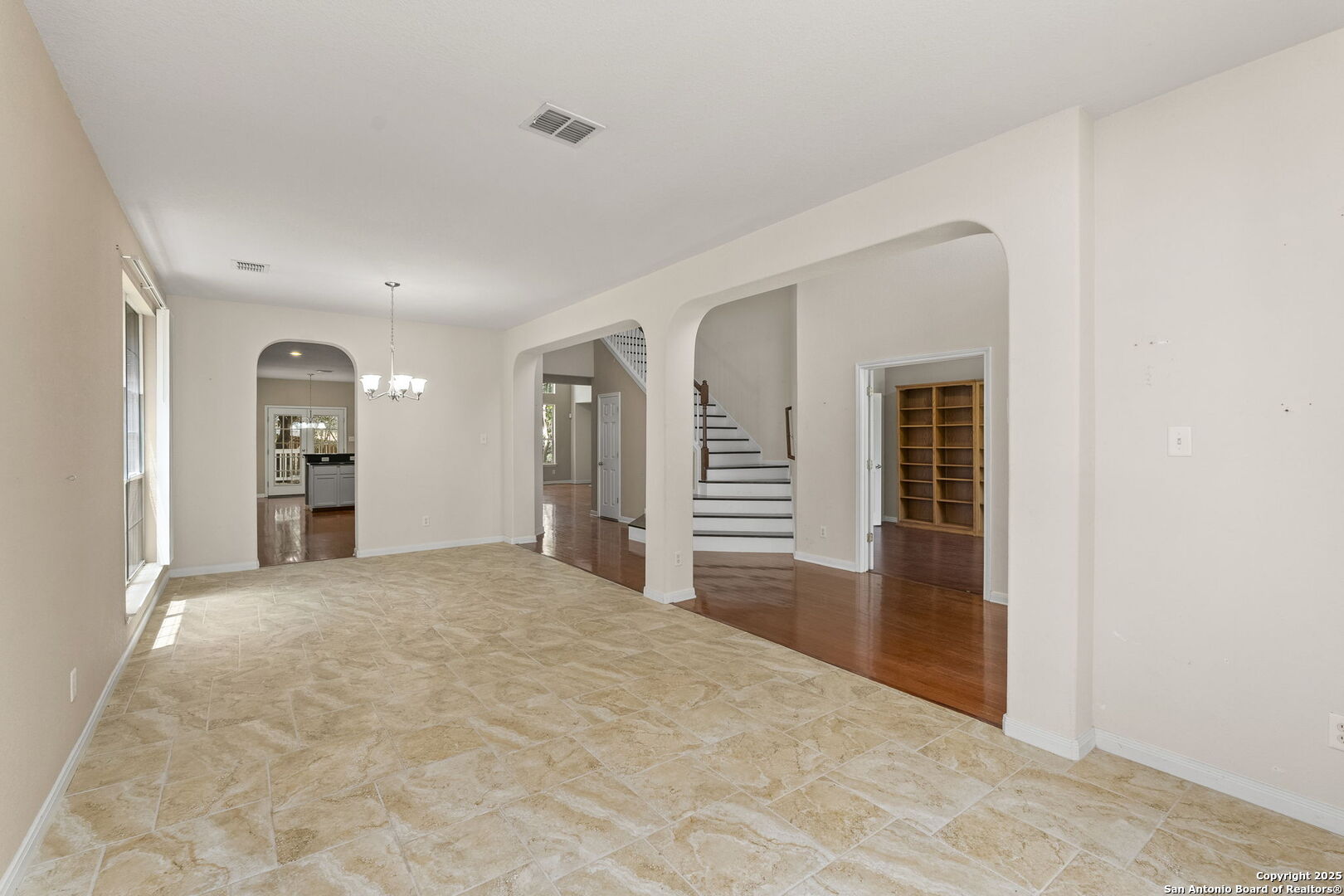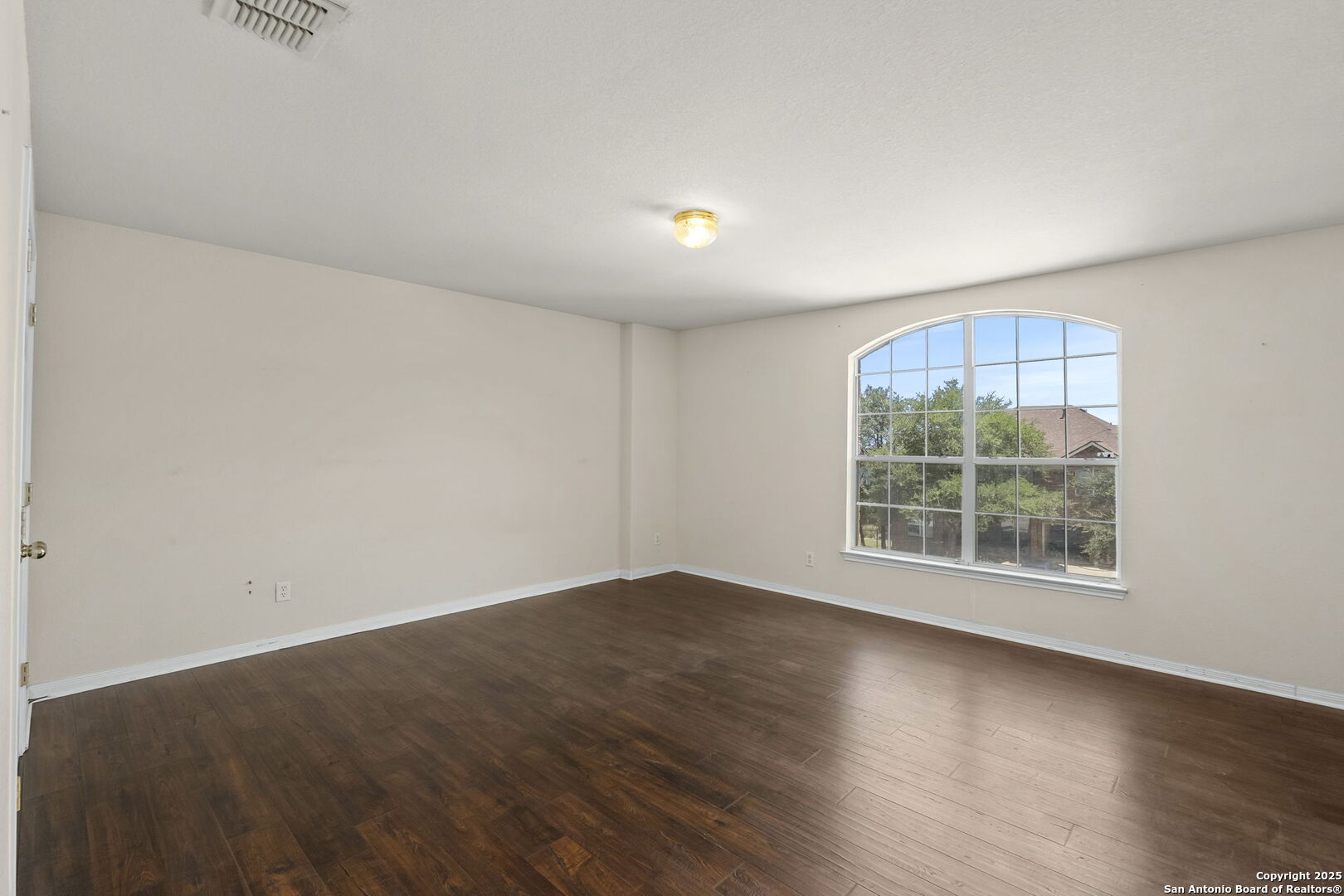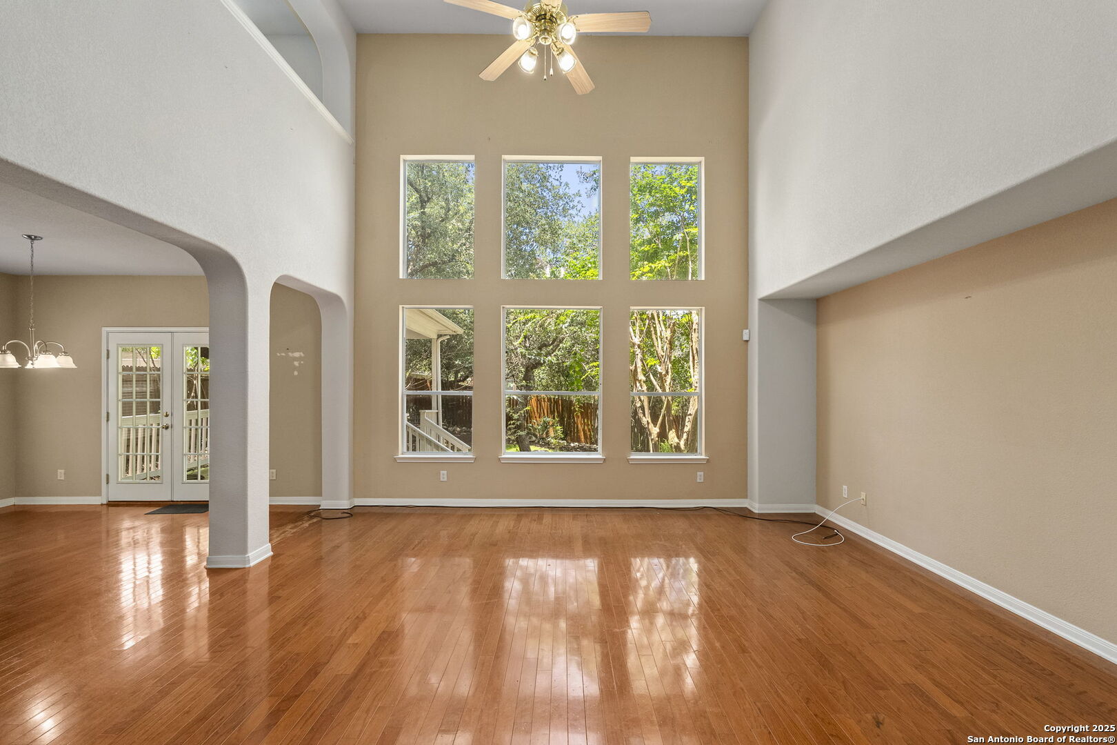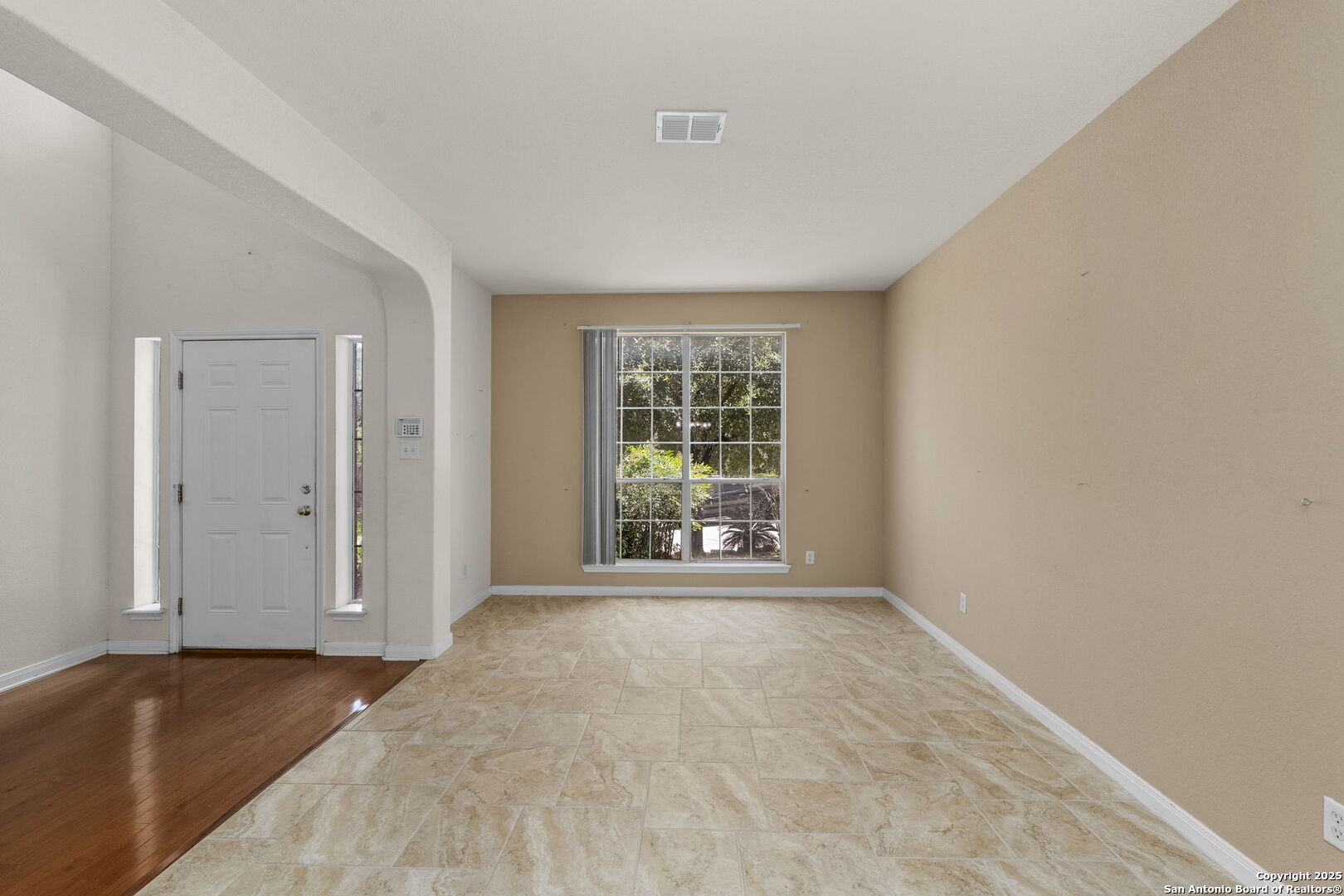Motivated seller. Welcome home to this architecturally charming two-story gem with soaring vaulted ceilings, built by Legend Homes. Nestled in the privately gated community of The Peak at Promontory in Stone Oak, this home is surrounded by mature trees and features classic three-sided brick masonry. Ideally located just outside Loop 1604 in San Antonio's highly desirable North Side, this property offers excellent long-term investment potential and is just minutes from top-rated NEISD schools, Stone Oak amenities, shopping, dining, and major highways. Step inside and discover a bright, welcoming layout filled with natural light. You're greeted by a dedicated study and elegant formal living and dining spaces, enhanced by graceful arches and windows that bring the outdoors in. A beautifully crafted wood staircase flows into the heart of the home, a spacious, open-concept living area with soaring two-story ceilings, a dramatic wall of windows, and floors that create warmth and sophistication. The inviting living room centers around a cozy corner gas fireplace and offers serene views of the backyard, making it ideal for both relaxing evenings and entertaining guests. The adjoining chef's kitchen is thoughtfully designed with white cabinetry, granite countertops, a diamond-pattern ceramic tile backsplash, and stainless steel appliances, including a gas cooktop, oven, microwave, and dishwasher. A casual dining area, framed by archways, sits just off the kitchen, perfect for everyday meals or morning coffee. Throughout the home, tile, wood, and laminate flooring provide a clean, modern look, completely carpet-free. With five spacious bedrooms, three and a half baths, and versatile living spaces, there's room for everyone. The expansive upstairs game room is ideal for a home gym, media space, or playroom, and the dedicated media room is perfect for movie nights. The primary suite is a peaceful retreat with a spa-inspired bath featuring a walk-in shower, soaking tub, dual vanities, and a generous walk-in closet. Step outside into your own private oasis. The serene backyard offers a covered patio with charming wood accents and views of the lush, mature landscaping. Tall trees provide natural shade and a peaceful ambiance, while a spacious lawn and thoughtfully designed plant beds create the perfect setting for play, gardening, or outdoor entertaining. A stone pathway winds through the yard, adding character and convenience. Conveniently located near Loop 1604, US 281, and IH-10, you'll enjoy quick access to premier destinations like Canyon Springs Golf Club, TPC Parkway, JW Marriott Hill Country Resort, The Rim, La Cantera, and top local parks such as Eisenhower, Phil Hardberger, and McAllister. With nearby access to Camp Bullis and the airport, the location is as practical as it is beautiful. Surrounded by top-tier public and private schools and nestled in a community that feels like a retreat, this home isn't just a place to live; it's a story waiting to unfold.