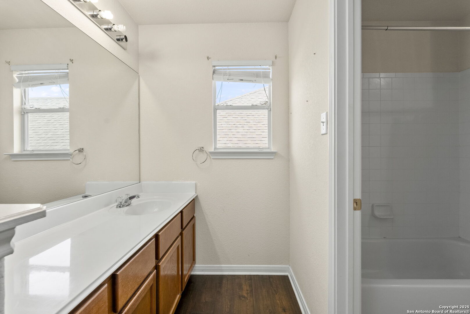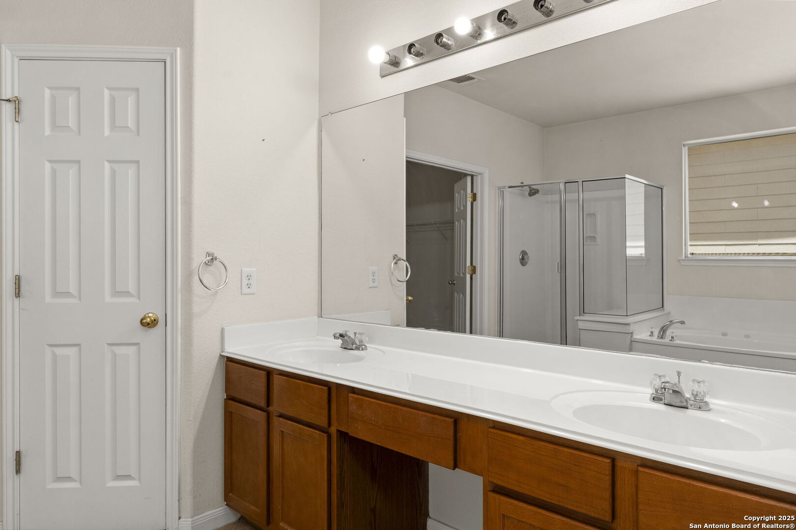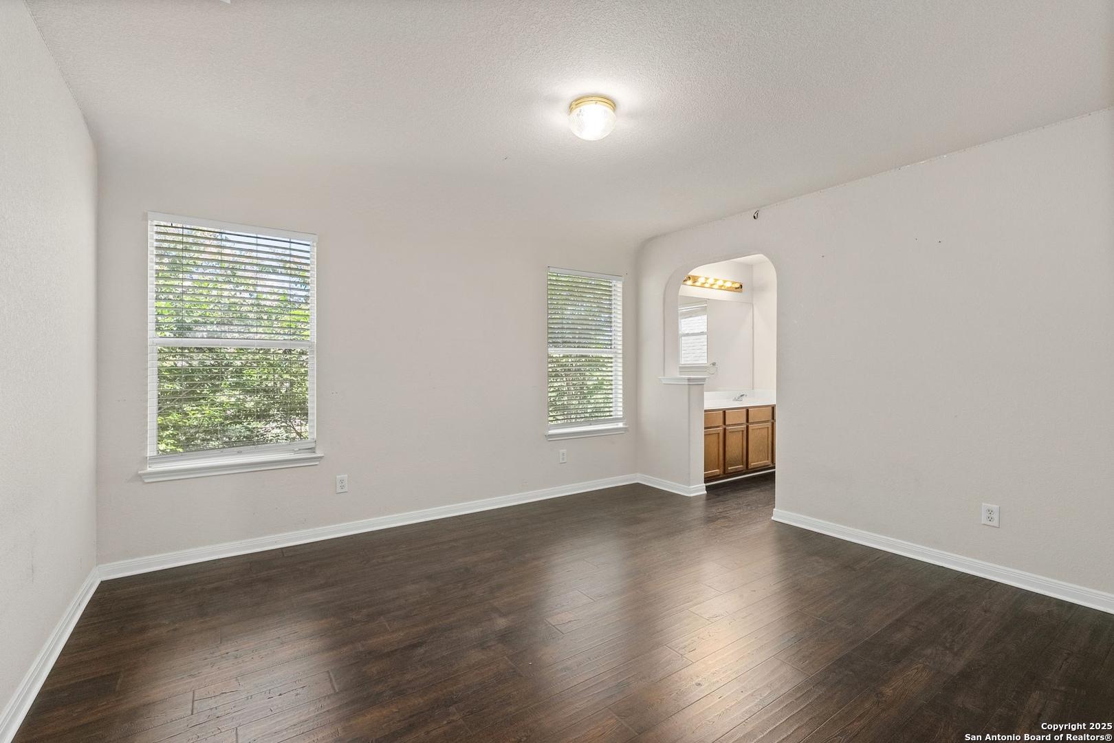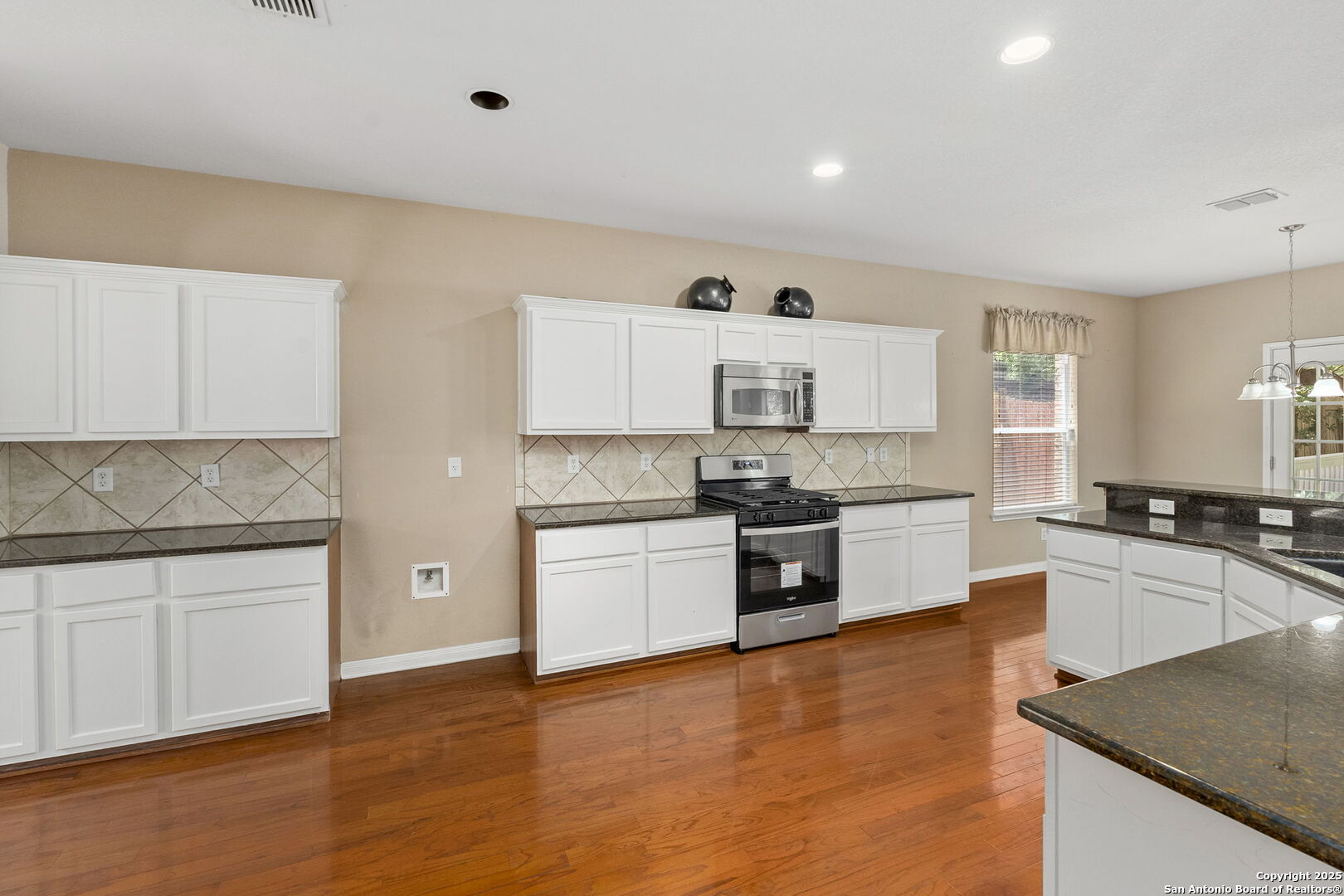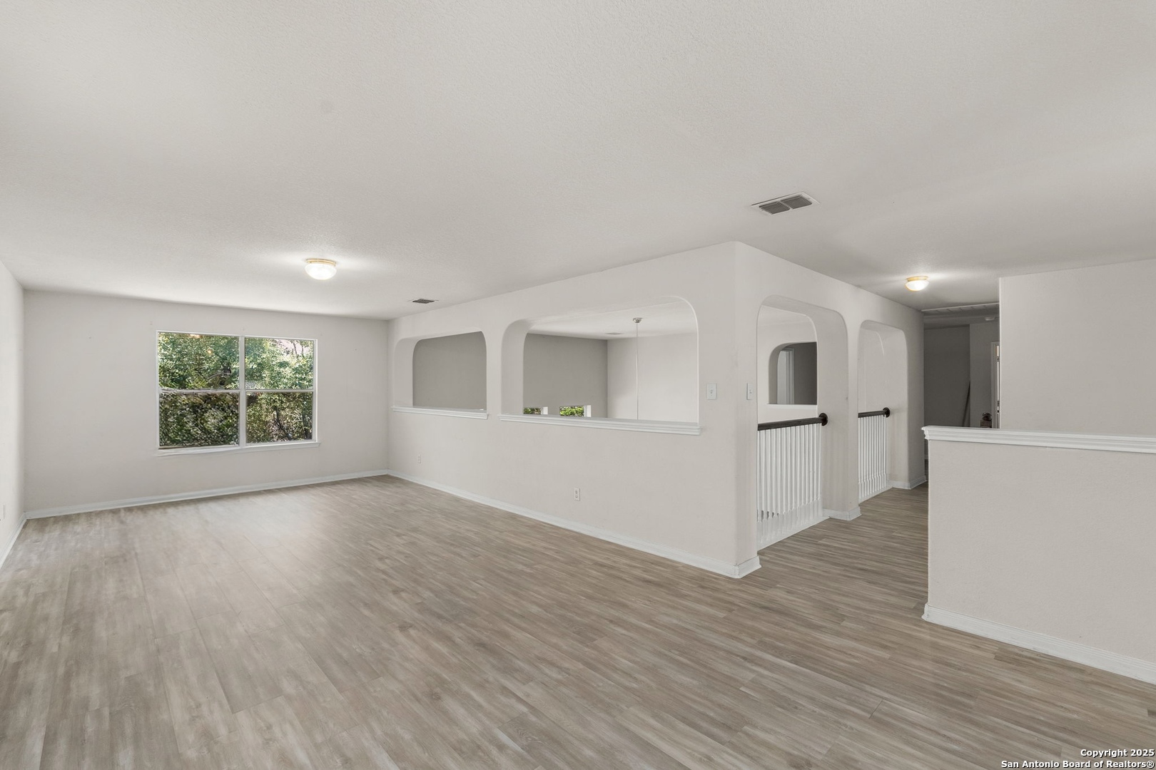 Motivated seller. Welcome home to this architecturally charming two-story gem with soaring vaulted ceilings, built by Legend Homes. Nestled in the privately gated community of The Peak at Promontory in Stone Oak, this home is surrounded by mature trees and features classic three-sided brick masonry. Ideally located just outside Loop 1604 in San Antonio's highly desirable North Side, this property offers excellent long-term investment potential and is just minutes from top-rated NEISD schools, Stone Oak amenities, shopping, dining, and major highways. Step inside and discover a bright, welcoming layout filled with natural light. You're greeted by a dedicated study and elegant formal living and dining spaces, enhanced by graceful arches and windows that bring the outdoors in. A beautifully crafted wood staircase flows into the heart of the home, a spacious, open-concept living area with soaring two-story ceilings, a dramatic wall of windows, and floors that create warmth and sophistication. The inviting living room centers around a cozy corner gas fireplace and offers serene views of the backyard, making it ideal for both relaxing evenings and entertaining guests. The adjoining chef's kitchen is thoughtfully designed with white cabinetry, granite countertops, a diamond-pattern ceramic tile backsplash, and stainless steel appliances, including a gas cooktop, oven, microwave, and dishwasher. A casual dining area, framed by archways, sits just off the kitchen, perfect for everyday meals or morning coffee. Throughout the home, tile, wood, and laminate flooring provide a clean, modern look, completely carpet-free. With five spacious bedrooms, three and a half baths, and versatile living spaces, there's room for everyone. The expansive upstairs game room is ideal for a home gym, media space, or playroom, and the dedicated media room is perfect for movie nights. The primary suite is a peaceful retreat with a spa-inspired bath featuring a walk-in shower, soaking tub, dual vanities, and a generous walk-in closet. Step outside into your own private oasis. The serene backyard offers a covered patio with charming wood accents and views of the lush, mature landscaping. Tall trees provide natural shade and a peaceful ambiance, while a spacious lawn and thoughtfully designed plant beds create the perfect setting for play, gardening, or outdoor entertaining. A stone pathway winds through the yard, adding character and convenience. Conveniently located near Loop 1604, US 281, and IH-10, you'll enjoy quick access to premier destinations like Canyon Springs Golf Club, TPC Parkway, JW Marriott Hill Country Resort, The Rim, La Cantera, and top local parks such as Eisenhower, Phil Hardberger, and McAllister. With nearby access to Camp Bullis and the airport, the location is as practical as it is beautiful. Surrounded by top-tier public and private schools and nestled in a community that feels like a retreat, this home isn't just a place to live; it's a story waiting to unfold.
