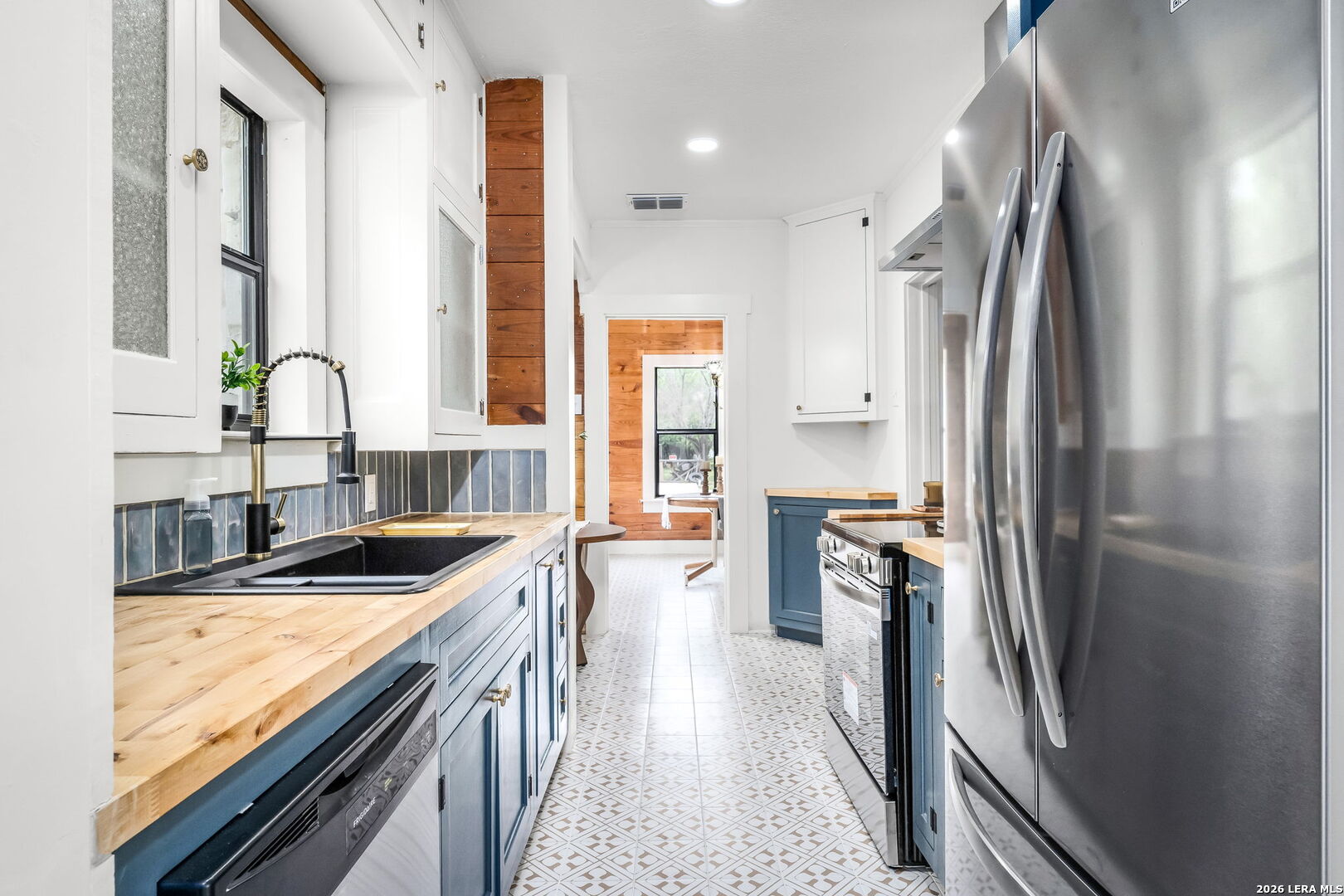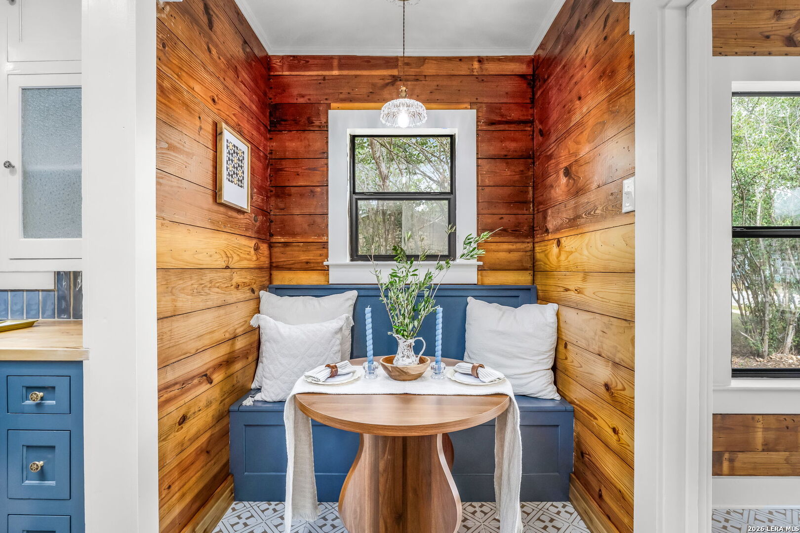 Welcome to 515 E. Mountain St., a beautifully restored 1930s home in the heart of Seguin, TX, where timeless character meets modern living. Located just minutes from downtown, and within walking distance to some of Seguin's most popular spots, including the highly acclaimed Burnt Bean Co., this home offers the ideal blend of lifestyle and convenience. From the moment you arrive, you'll notice the inviting curb appeal and classic architecture. Inside, the home showcases original hardwood floors, exposed shiplap, and preserved historic details, creating a warm and authentic feel throughout. Thoughtful restoration highlights include original patina, vintage glass doorknobs, and refinished trim, all carefully brought back to life. The thoughtfully updated interior features: * All new electrical and plumbing systems * New central air and heat system * Tankless water heater (located in attic) * New insulation in walls, attic, and under the home * Brand new windows for energy efficiency * New sewer line from the home to the street. The kitchen blends old and new with custom handmade cabinetry, banquette seating with built-in storage, and new appliances, designed for both beauty and function. Cabinetry features include built-in trash pullouts, a dedicated cutting board space, and integrated spice storage, while preserved original elements like upper cabinets and exposed brick add character and warmth. Additional highlights include: * Restored original interior doors and hardware * Updated bathroom featuring a preserved original toilet * Dedicated laundry space added (a rare upgrade for homes of this era) * Exterior improvements including power washing, mortar repair, and freshly painted trim * New roof for long-term peace of mind. Enjoy the ability to walk or bike to downtown Seguin, local shops, restaurants, coffee spots, and community events, making this location just as special as the home itself. This property is a rare opportunity to own a move-in-ready home with 1930's character in Seguin, TX, offering original charm, modern systems, and unbeatable proximity to downtown. Schedule your showing today and experience the craftsmanship, charm, and lifestyle that set this home apart.
