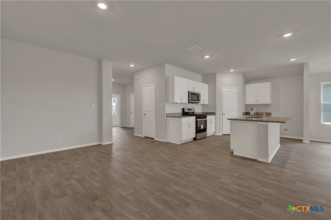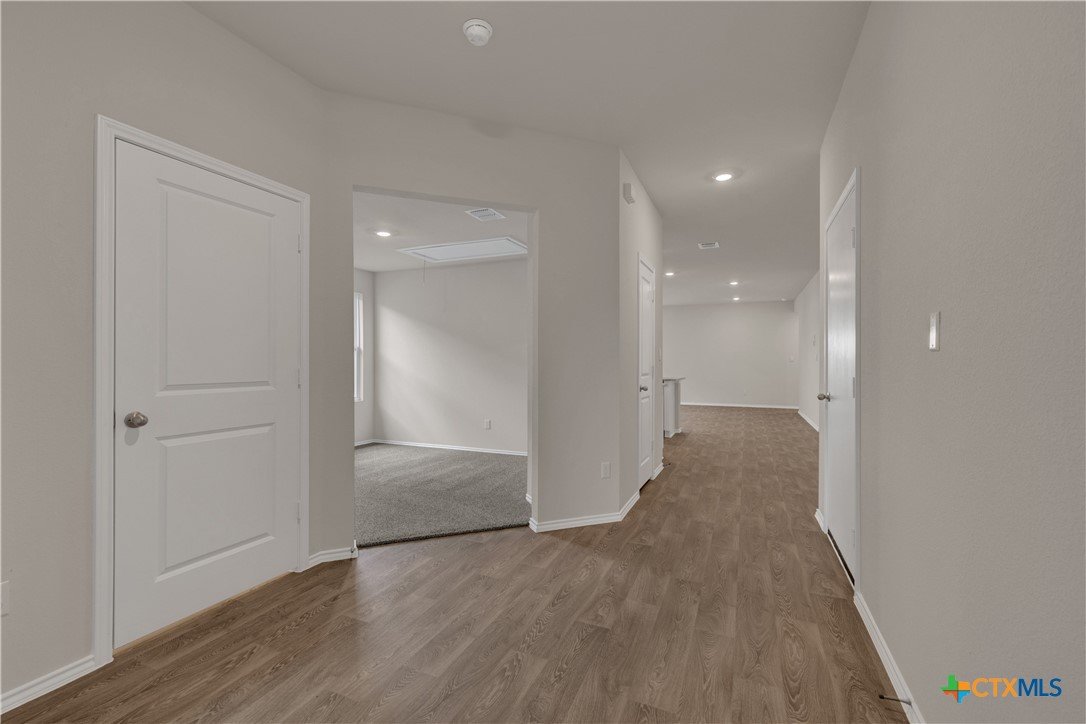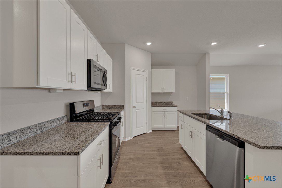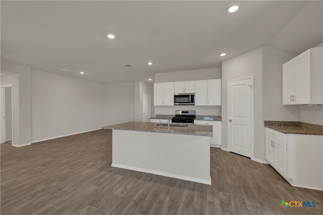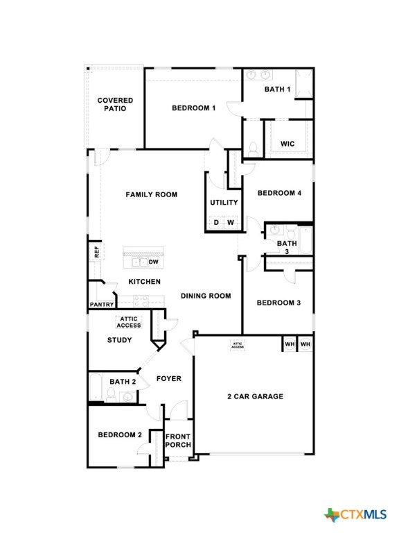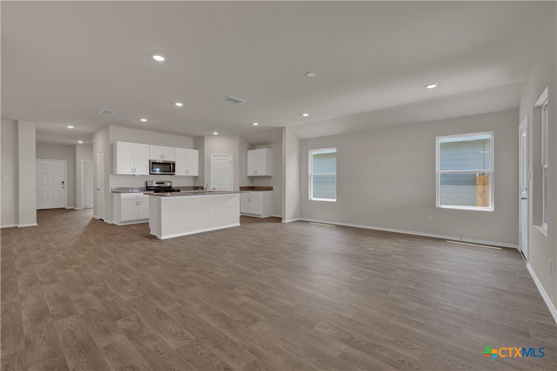 MOVE IN READY. The Lakeway is our most popular floorplan and is available at Bollinger in Maxwell, Texas. This one-story home offers 2,042 square feet of living space across 4 bedrooms, 3 bathrooms, a study, and 2-car garage. Our homes in Bollinger feature our modern farmhouse exteriors. As you enter the home from the covered front porch, you’ll step into the spacious foyer and will find the open study, bathroom 2 and bedroom 2. Use the study as a home office, library, or extra play area for the kids. Stepping further into the home, you’ll discover the dining room, kitchen and family room laid out in an open concept design. Built to make cooking, eating, and entertaining a pleasant experience for family and friends, you’re sure to make many memories in this beautiful space. The kitchen features an island with undermount sink, granite countertops, decorative granite backsplash, a pantry closet, 36” upper cabinets, and stainless-steel appliances, including a gas range. Located privately off the dining room are bedrooms 3 and 4, as well as bathroom 3. The primary bedroom is at the back of the house, off the family room, and includes a private bathroom. This relaxing bathroom space features a walk-in shower, cultured marble vanity with dual sinks, private toilet area with a door, and a walk-in closet. The utility room is outside the primary bedroom, allowing for the laundry chores to be completed with ease. The Lakeway includes vinyl flooring throughout the common areas of the home, and carpet in the bedrooms. A covered back patio is also included in the Lakeway plan. All our new homes feature Bermuda sod, an irrigation system in the front and back yard, and a 6’ privacy fence around the back yard. This home comes with our America’s Smart Home base package, which includes the Amazon Echo Pop, Front Door Bell Deadbolt Lock, Home Hub, Thermostat, and Deako Smart Switches.