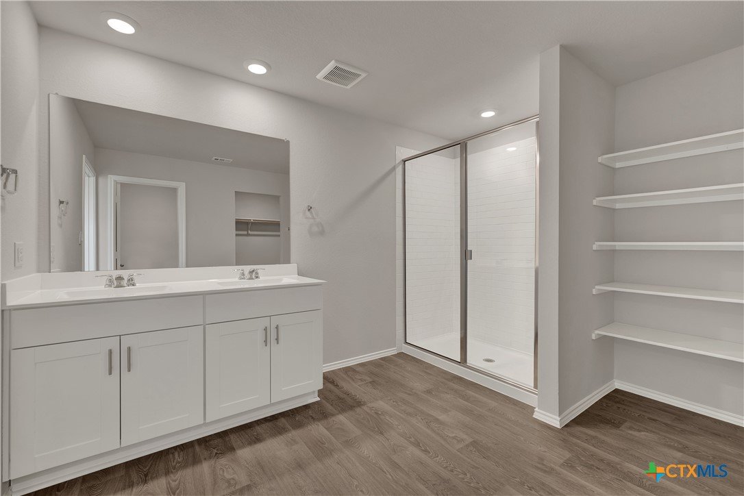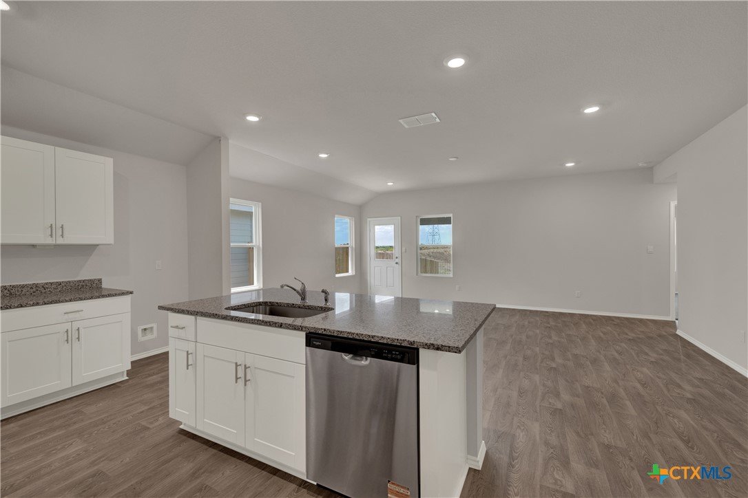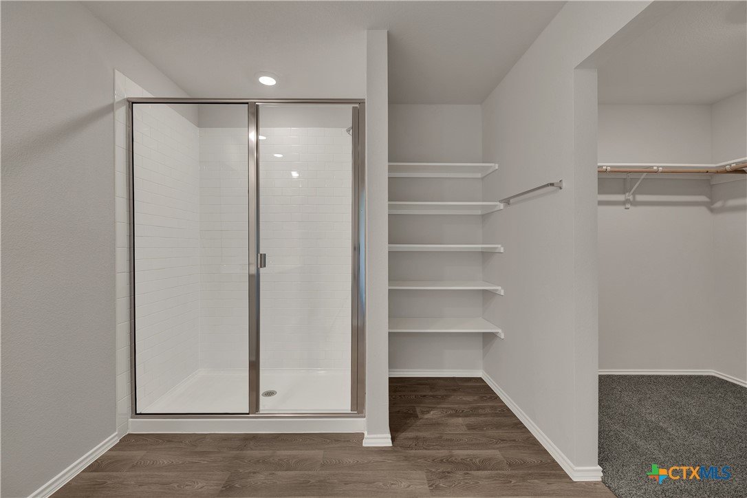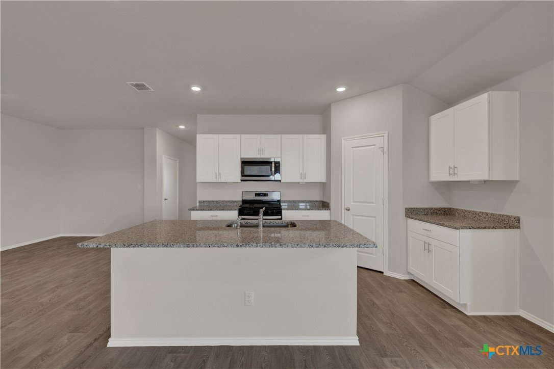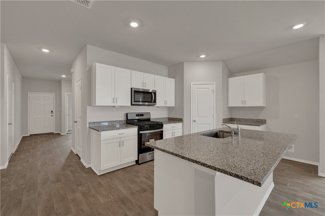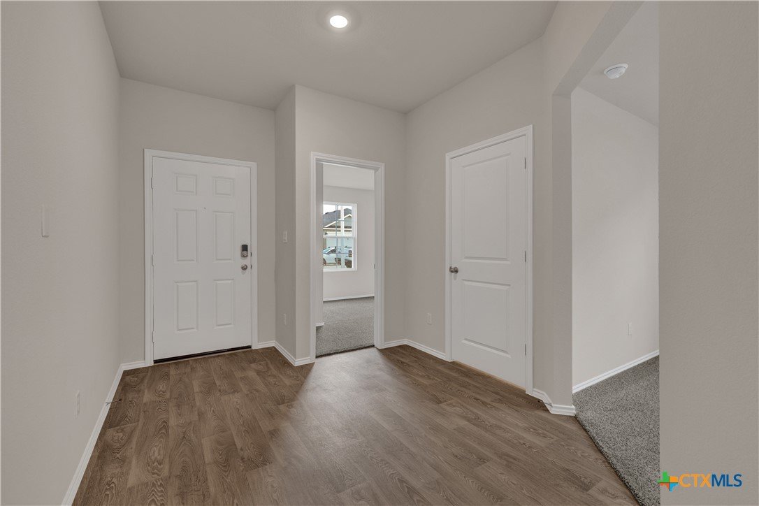 MOVE IN READY. The Lakeway is our most popular floorplan and is available at Bollinger in Maxwell, Texas. This one-story home offers 2,042 square feet of living space across 4 bedrooms, 3 bathrooms, a study, and 2-car garage. Our homes in Bollinger feature our modern farmhouse exteriors. As you enter the home from the covered front porch, you’ll step into the spacious foyer and will find the open study, bathroom 2 and bedroom 2. Use the study as a home office, library, or extra play area for the kids. Stepping further into the home, you’ll discover the dining room, kitchen and family room laid out in an open concept design. Built to make cooking, eating, and entertaining a pleasant experience for family and friends, you’re sure to make many memories in this beautiful space. The kitchen features an island with undermount sink, granite countertops, decorative granite backsplash, a pantry closet, 36” upper cabinets, and stainless-steel appliances, including a gas range. Located privately off the dining room are bedrooms 3 and 4, as well as bathroom 3. The primary bedroom is at the back of the house, off the family room, and includes a private bathroom. This relaxing bathroom space features a walk-in shower, cultured marble vanity with dual sinks, private toilet area with a door, and a walk-in closet. The utility room is outside the primary bedroom, allowing for the laundry chores to be completed with ease. The Lakeway includes vinyl flooring throughout the common areas of the home, and carpet in the bedrooms. A covered back patio is also included in the Lakeway plan. All our new homes feature Bermuda sod, an irrigation system in the front and back yard, and a 6’ privacy fence around the back yard. This home comes with our America’s Smart Home base package, which includes the Amazon Echo Pop, Front Door Bell Deadbolt Lock, Home Hub, Thermostat, and Deako Smart Switches.