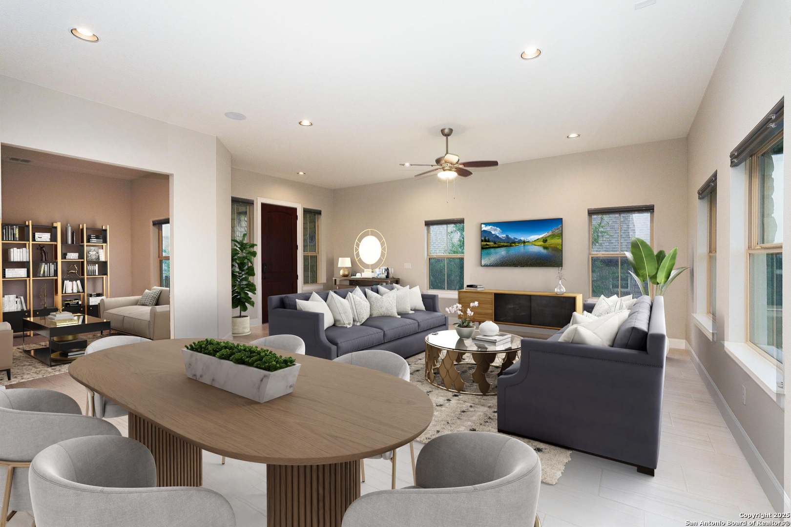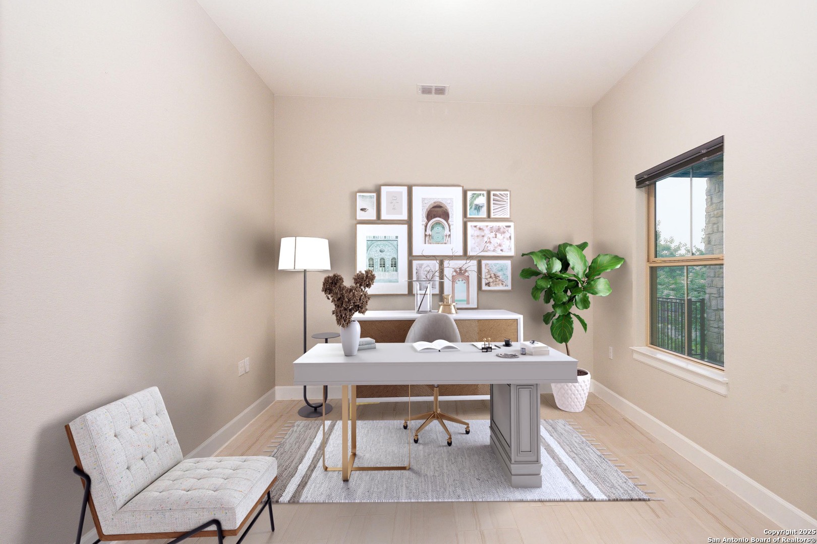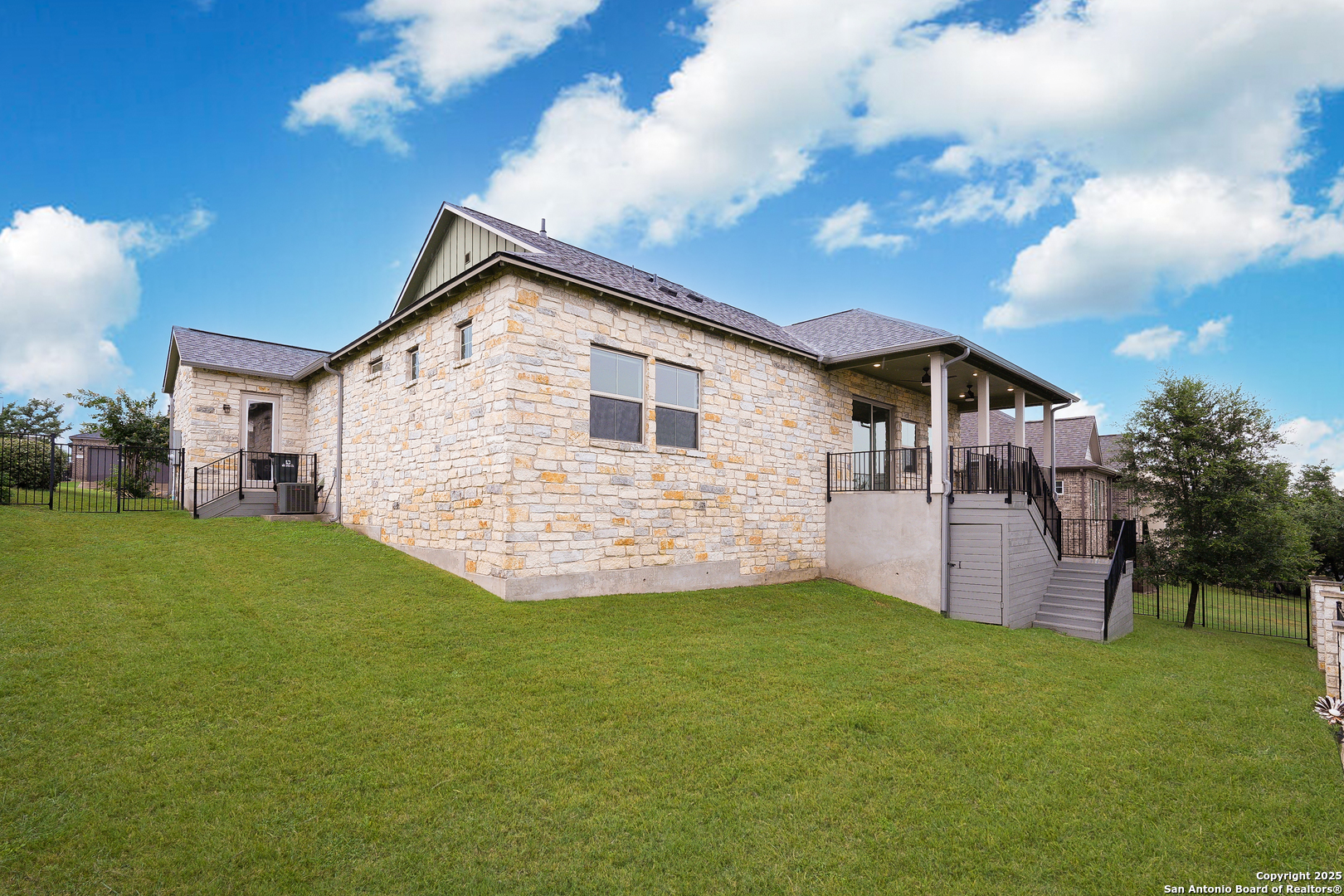 Active Lifestyle 55+ Community with all the amenities you could ever dream of! Golf, Fitness, Swimming, Pickle Ball, Tennis, Onsite Lifestyle Director, you will not run out of things to do. This stunning Texas Hill Country Design built in 2019, and has all the privacy you could imagine! Set on a culdesac lot, with only 1 neighbor to your left! Gorgeous sunset views off the oversized back patio. 2 spacious bedrooms and 2 full baths, 1 1/2 bath, and a flex room that could be a formal dining or office, whatever you need it to be. Courtyard style front porch for perfect for morning coffee. Gorgeous upgrades through out with hard tile through out, granite counters and stainless appliances. Gorgeous landscaping, custom fence already installed, full irrigation system, 2 car garage, golf cart garage. Easy to show!