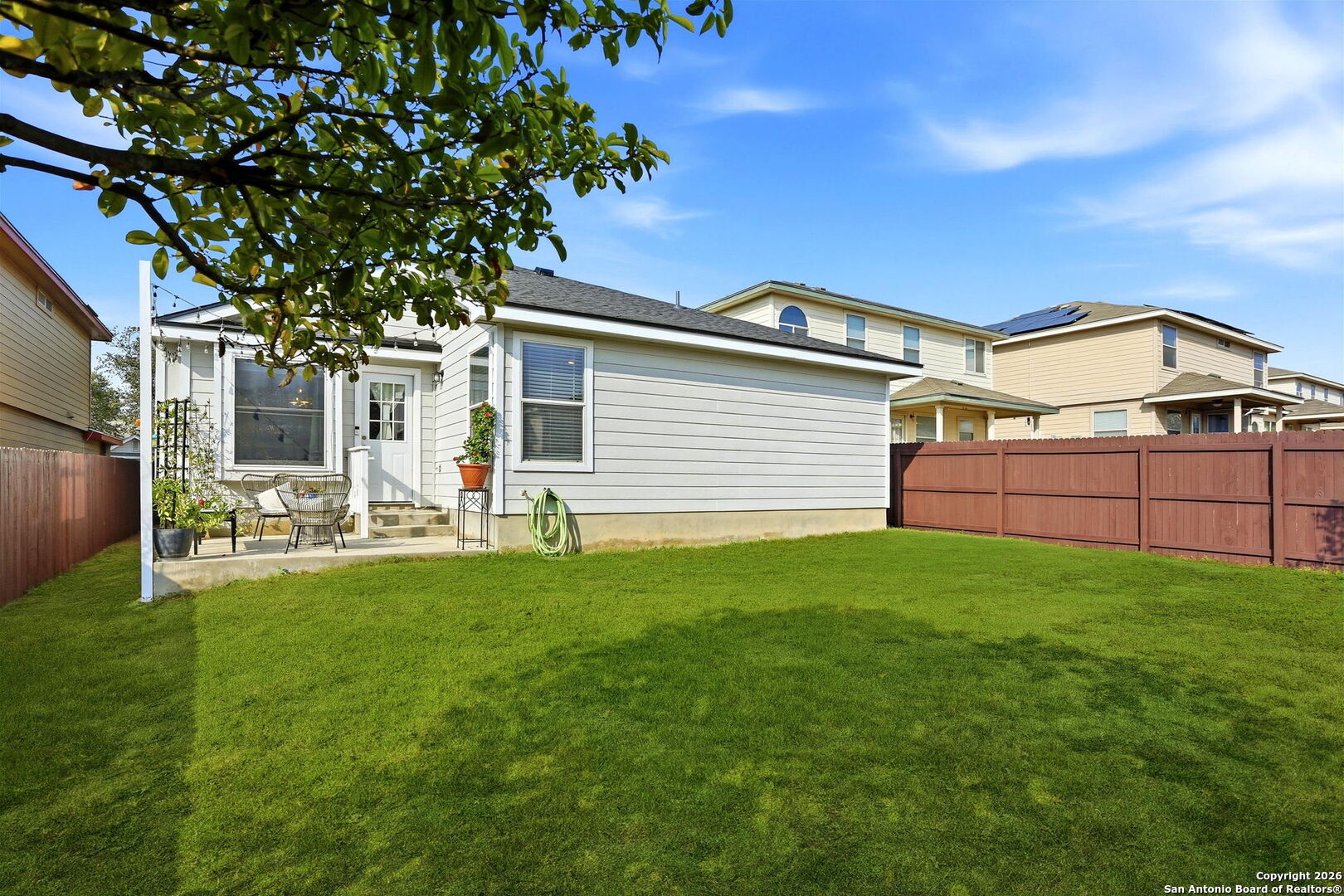 This charming single-story home has 3 bedrooms, 2 full baths with tub/shower combo, a spacious primary closet, and a two car garage. Bright open floor plan with an open concept kitchen, island, eat in dining area for everyday meals and family time. Spacious backyard, ideal for relaxing or entertaining. Features a brand new roof with a transferable 30 year warranty, providing added peace of mind for years to come. Conveniently located between Loop 1604 and Hwy 151, minutes from SeaWorld and Alamo Ranch shopping, dining, and schools. Affordable, functional and well located opportunity to step into homeownership with confidence.