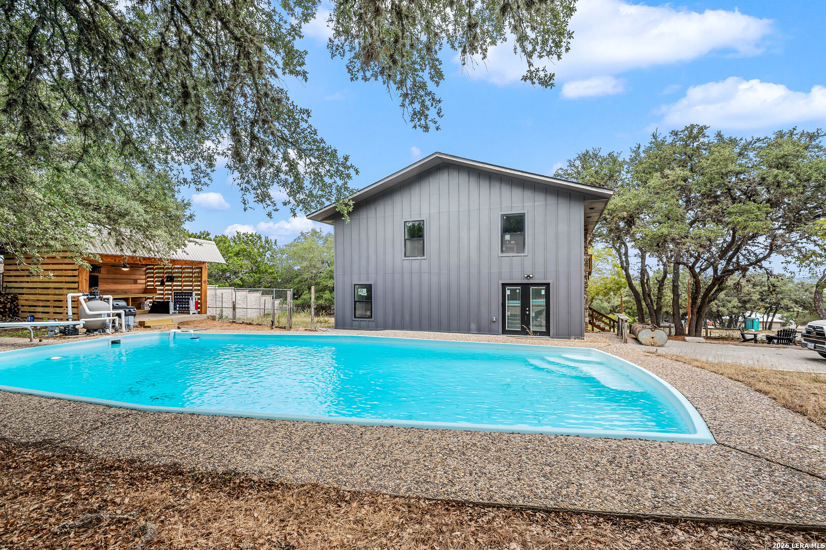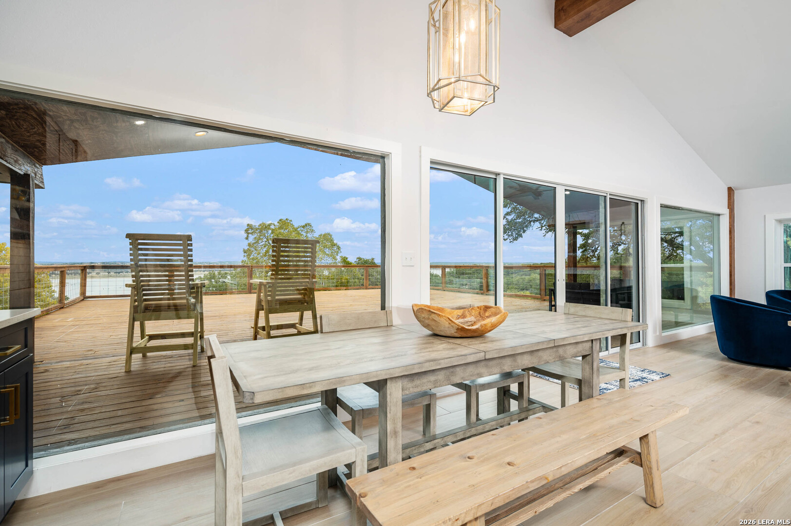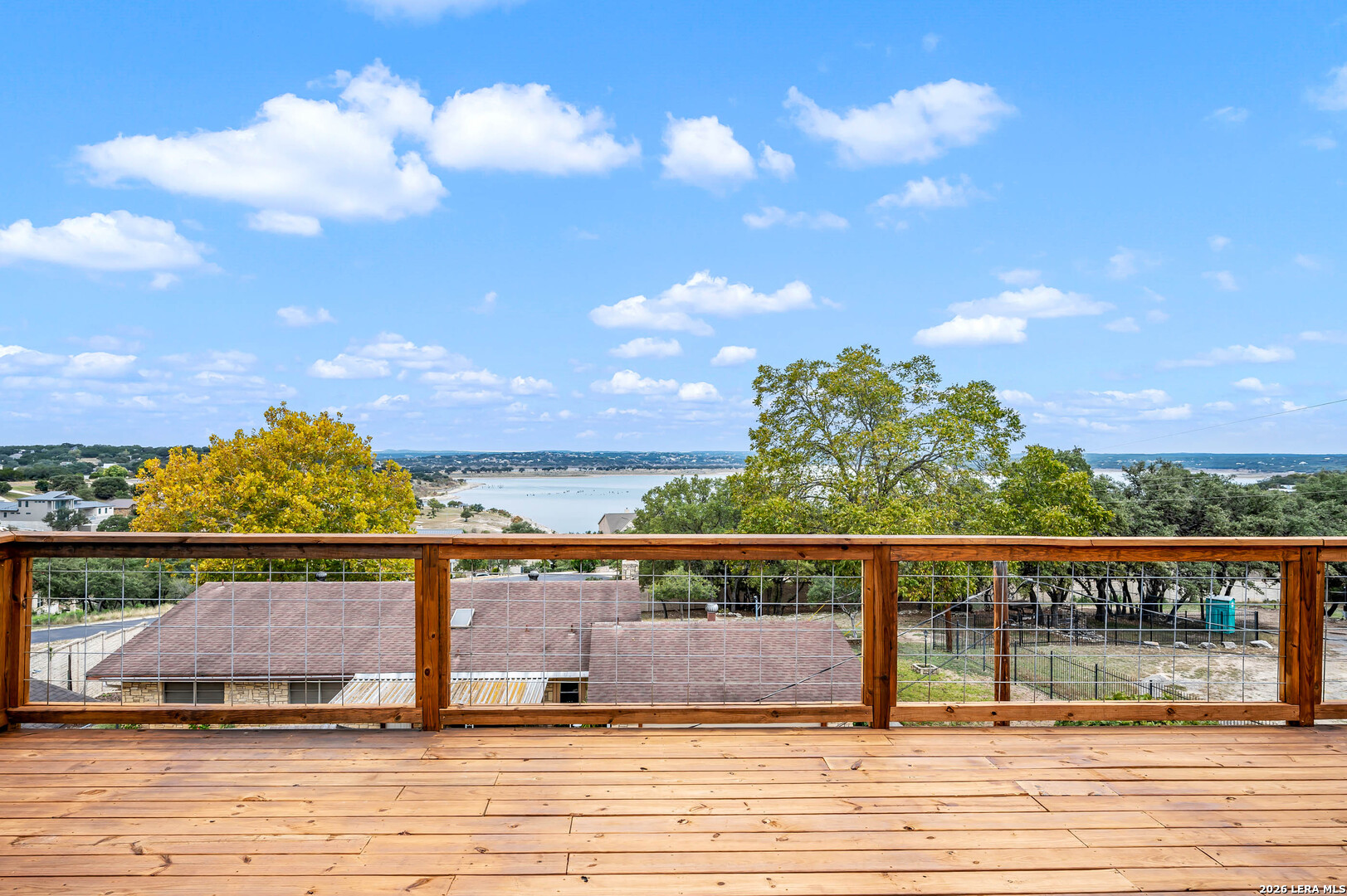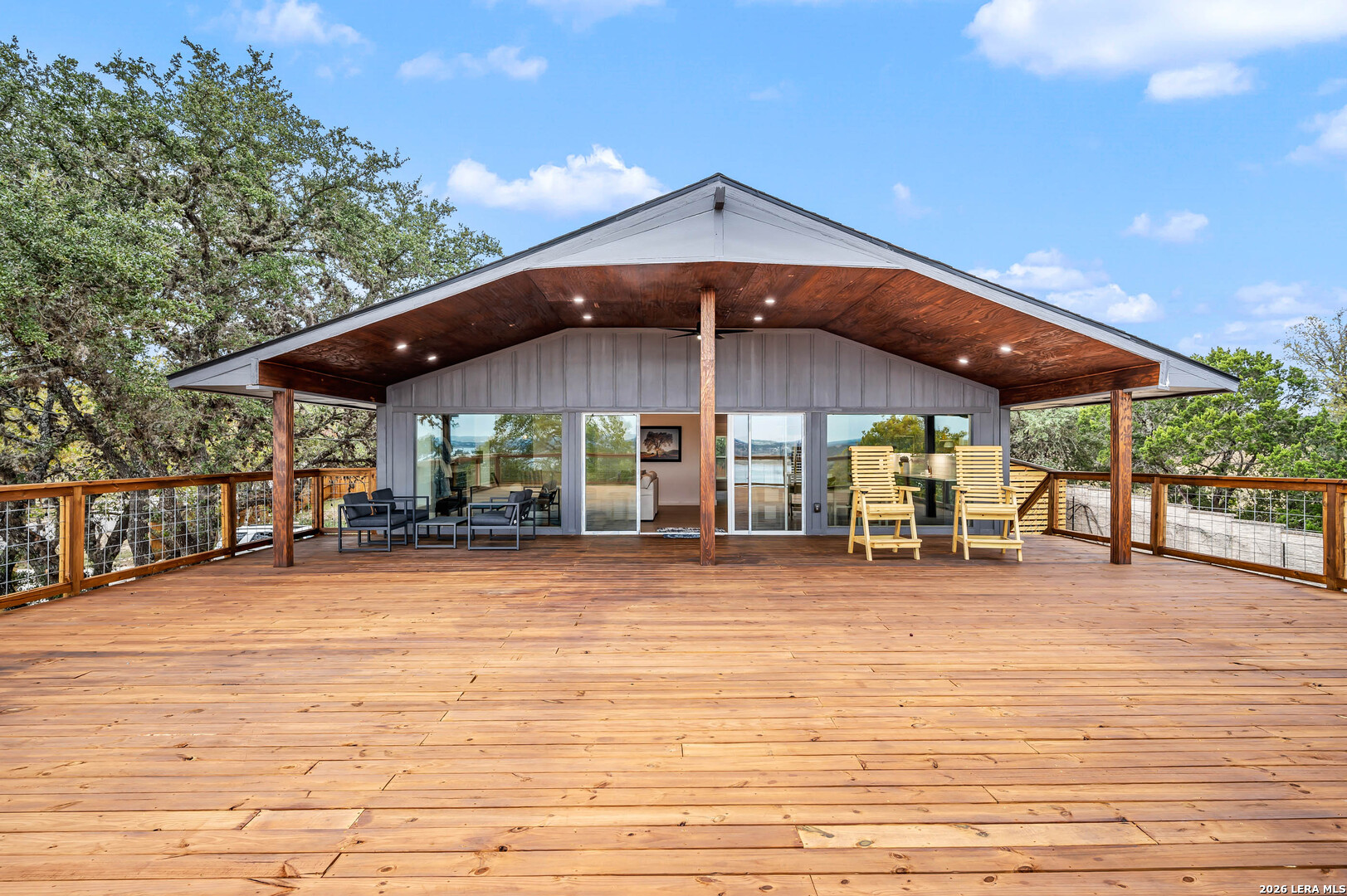 Experience the pinnacle of lakeside living in this modern masterpiece overlooking Canyon Lake. Offering an airy, open concept floor plan, this home seamlessly blends warm wood tones with contemporary design. The heart of the home is the upper-level Great Room, where a soaring wall of glass offers unparalleled, panoramic views of the water. The gourmet kitchen is a chef's dream, featuring a massive island with bar seating, double ovens, a pot filler, and premium stainless steel appliances. Retreat to the primary suite, a private sanctuary with pool views and a spa-like ensuite featuring a custom walk-in tiled shower and dual vanities. The lower level serves as a versatile secondary living space, perfect for an expansive media room or guest quarters, offering two large bedrooms and a custom bunk room. Outside, the property is an entertainer's paradise: relax on the massive covered deck with a custom swing, take a dip in the private pool, or host from the oversized outdoor bar. Located just minutes from multiple boat ramps, this is more than a home; it's a permanent vacation.