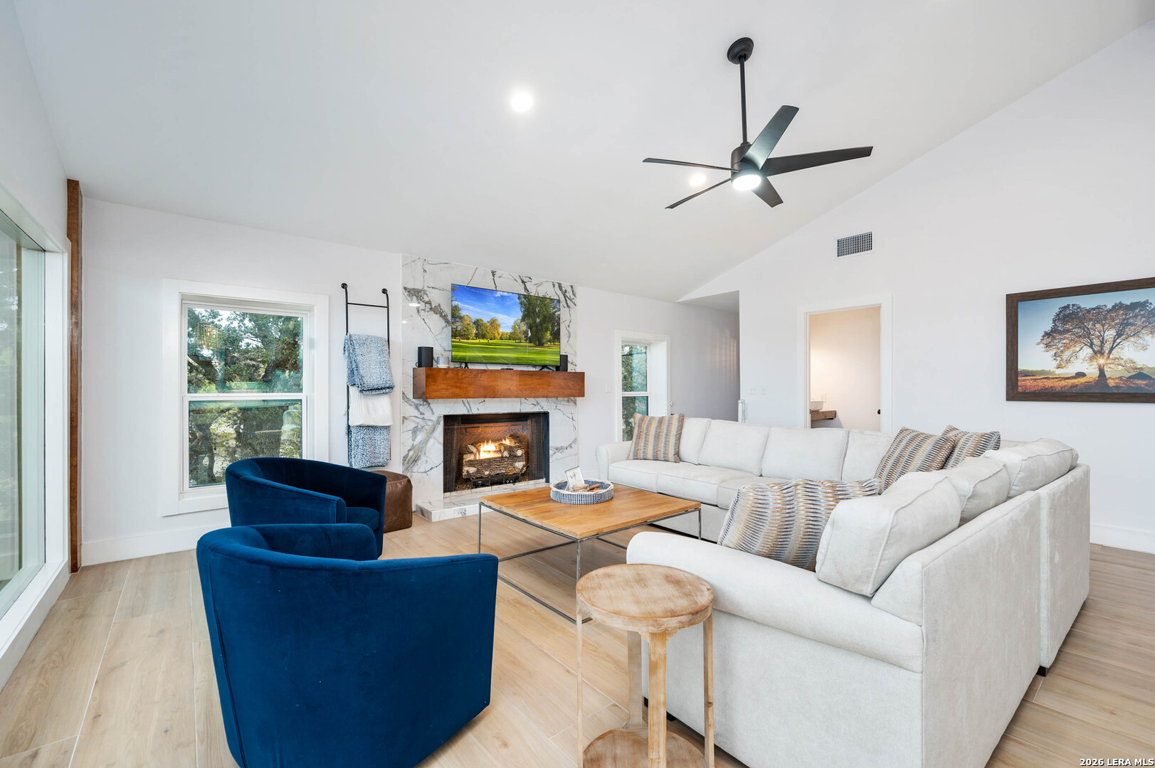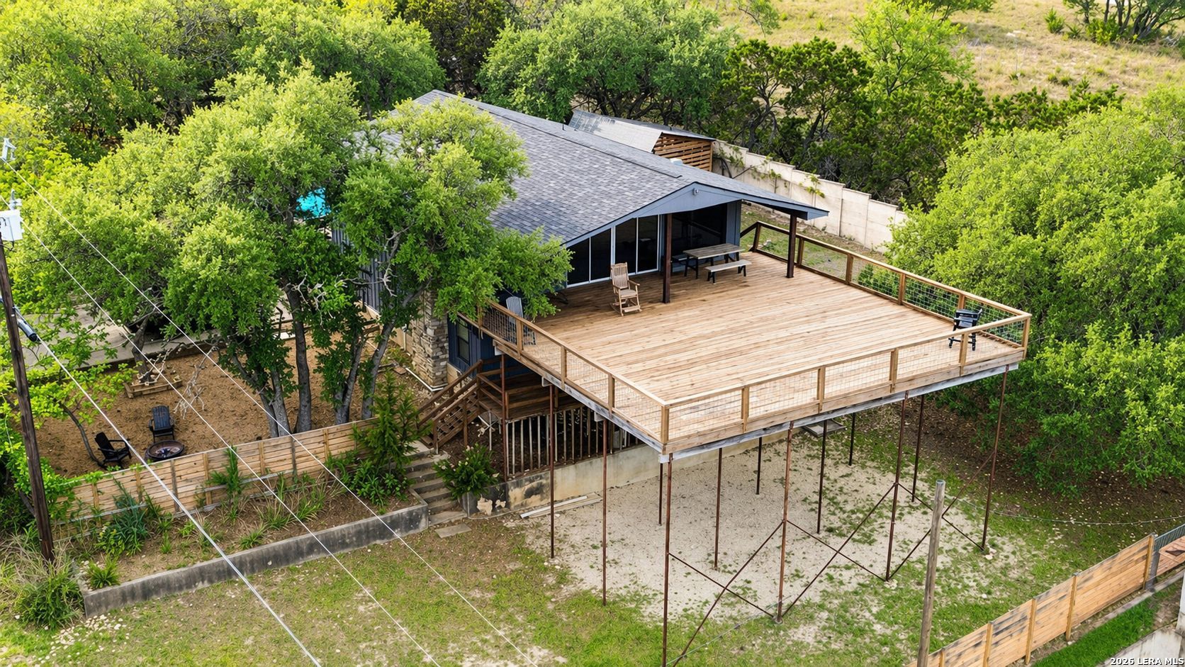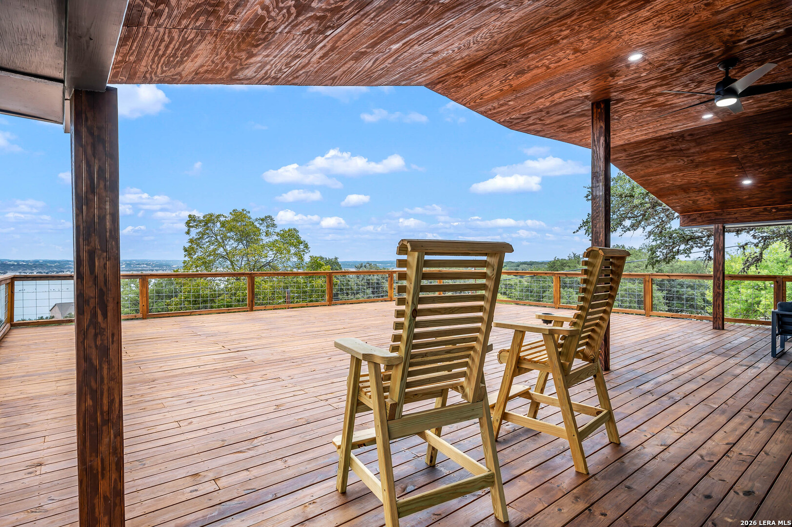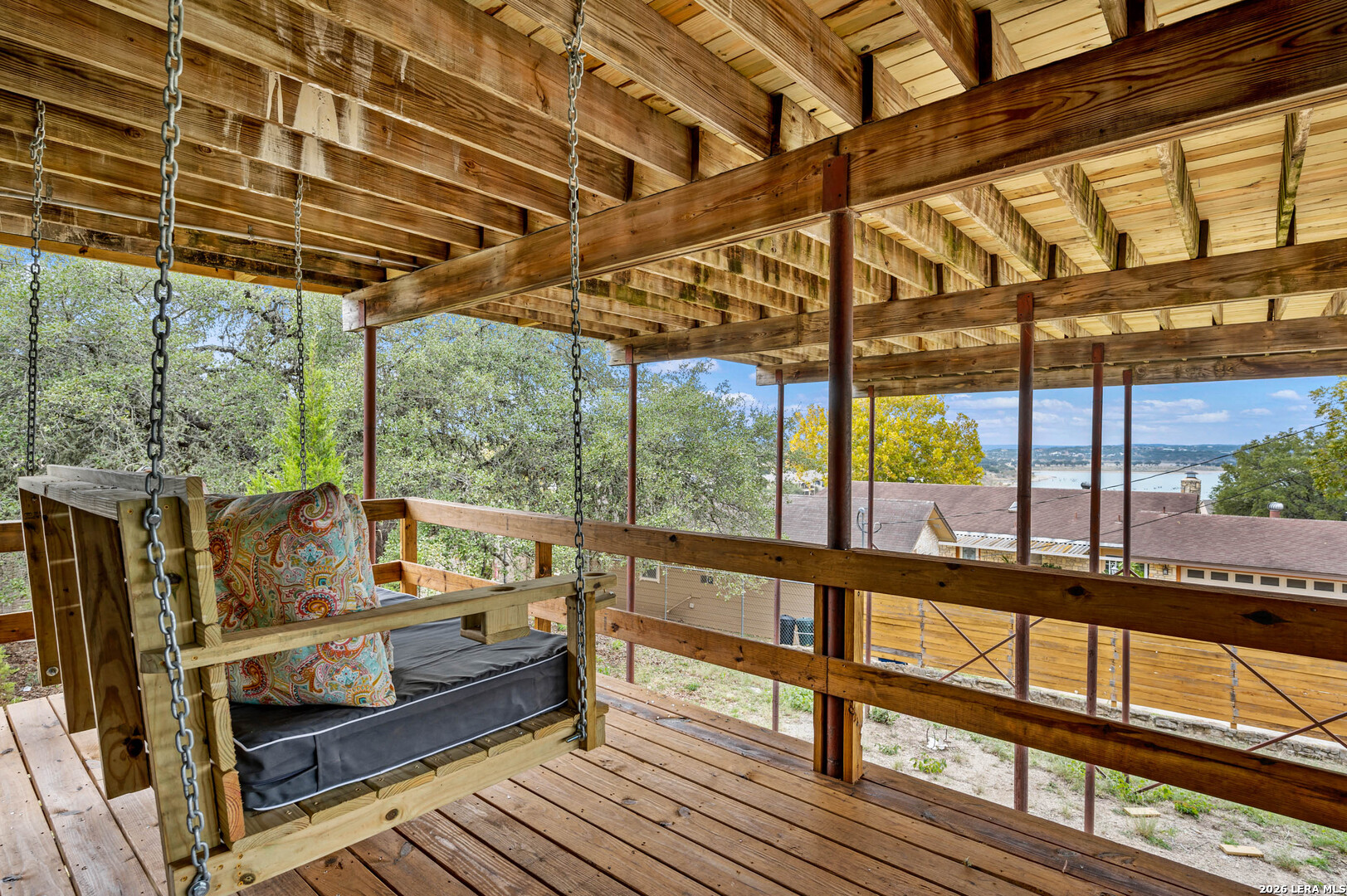 Experience the pinnacle of lakeside living in this modern masterpiece overlooking Canyon Lake. Offering an airy, open concept floor plan, this home seamlessly blends warm wood tones with contemporary design. The heart of the home is the upper-level Great Room, where a soaring wall of glass offers unparalleled, panoramic views of the water. The gourmet kitchen is a chef's dream, featuring a massive island with bar seating, double ovens, a pot filler, and premium stainless steel appliances. Retreat to the primary suite, a private sanctuary with pool views and a spa-like ensuite featuring a custom walk-in tiled shower and dual vanities. The lower level serves as a versatile secondary living space, perfect for an expansive media room or guest quarters, offering two large bedrooms and a custom bunk room. Outside, the property is an entertainer's paradise: relax on the massive covered deck with a custom swing, take a dip in the private pool, or host from the oversized outdoor bar. Located just minutes from multiple boat ramps, this is more than a home; it's a permanent vacation.