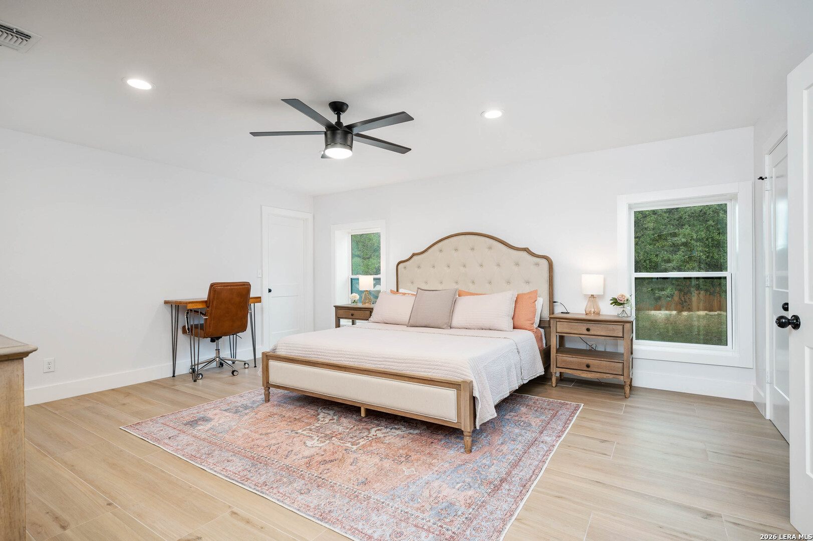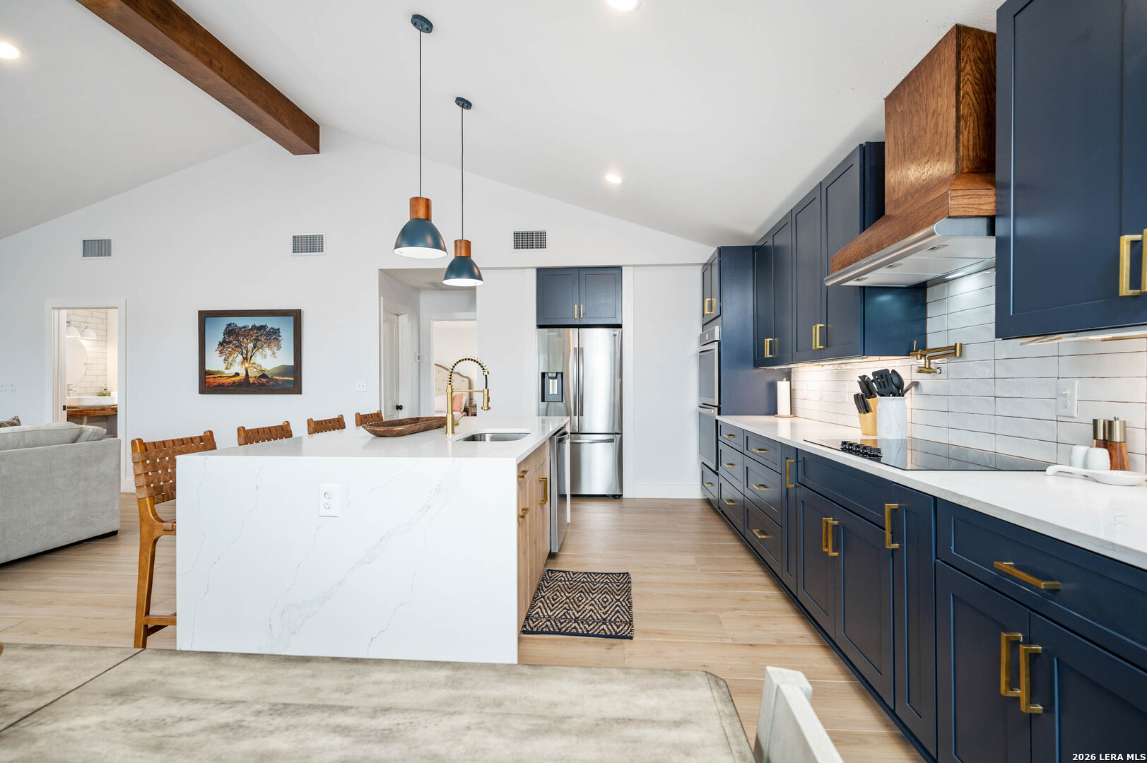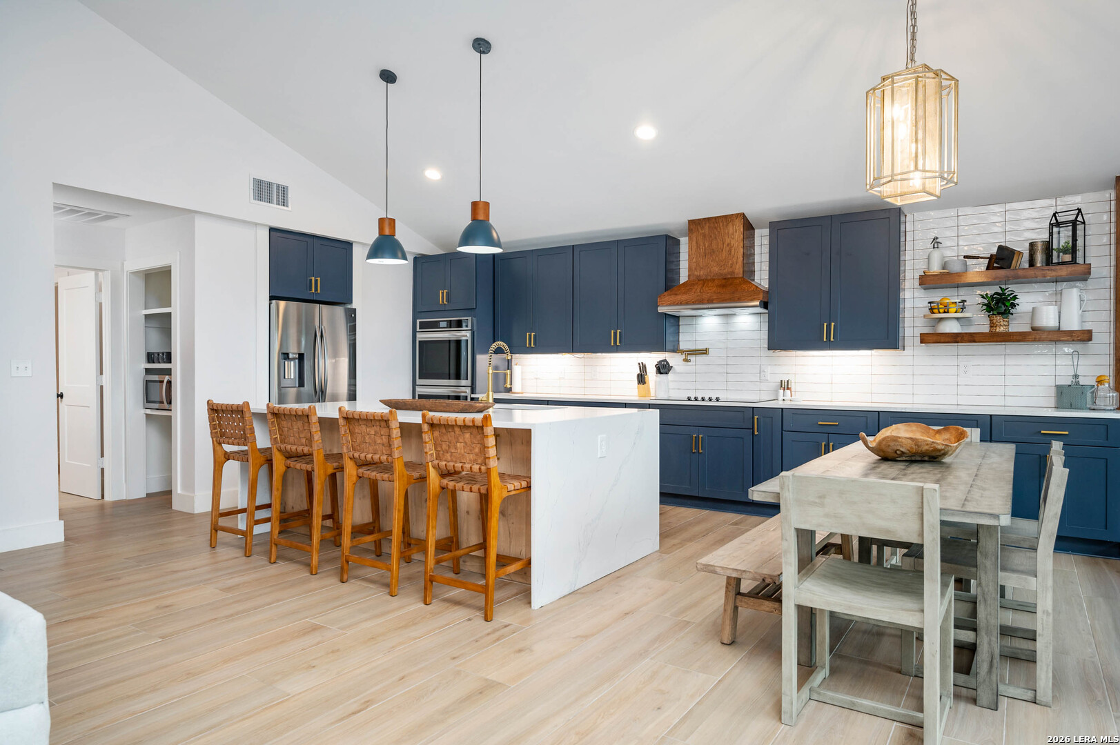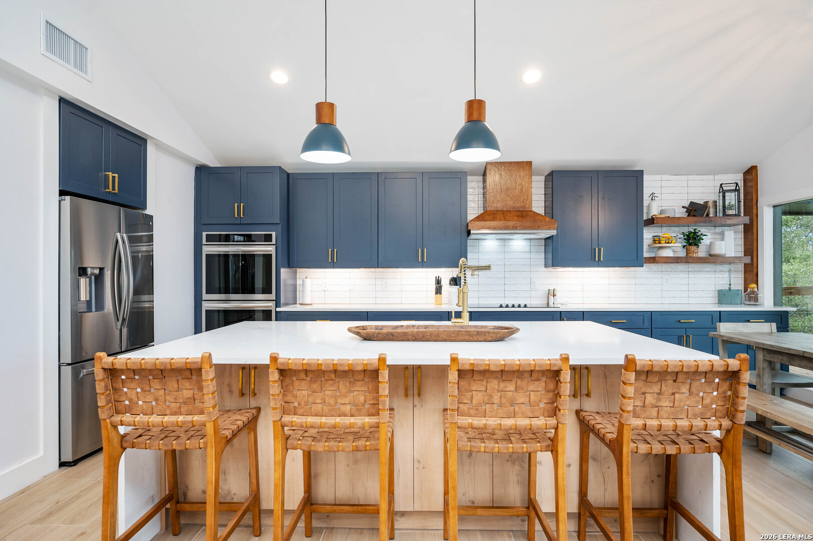 Experience the pinnacle of lakeside living in this modern masterpiece overlooking Canyon Lake. Offering an airy, open concept floor plan, this home seamlessly blends warm wood tones with contemporary design. The heart of the home is the upper-level Great Room, where a soaring wall of glass offers unparalleled, panoramic views of the water. The gourmet kitchen is a chef's dream, featuring a massive island with bar seating, double ovens, a pot filler, and premium stainless steel appliances. Retreat to the primary suite, a private sanctuary with pool views and a spa-like ensuite featuring a custom walk-in tiled shower and dual vanities. The lower level serves as a versatile secondary living space, perfect for an expansive media room or guest quarters, offering two large bedrooms and a custom bunk room. Outside, the property is an entertainer's paradise: relax on the massive covered deck with a custom swing, take a dip in the private pool, or host from the oversized outdoor bar. Located just minutes from multiple boat ramps, this is more than a home; it's a permanent vacation.