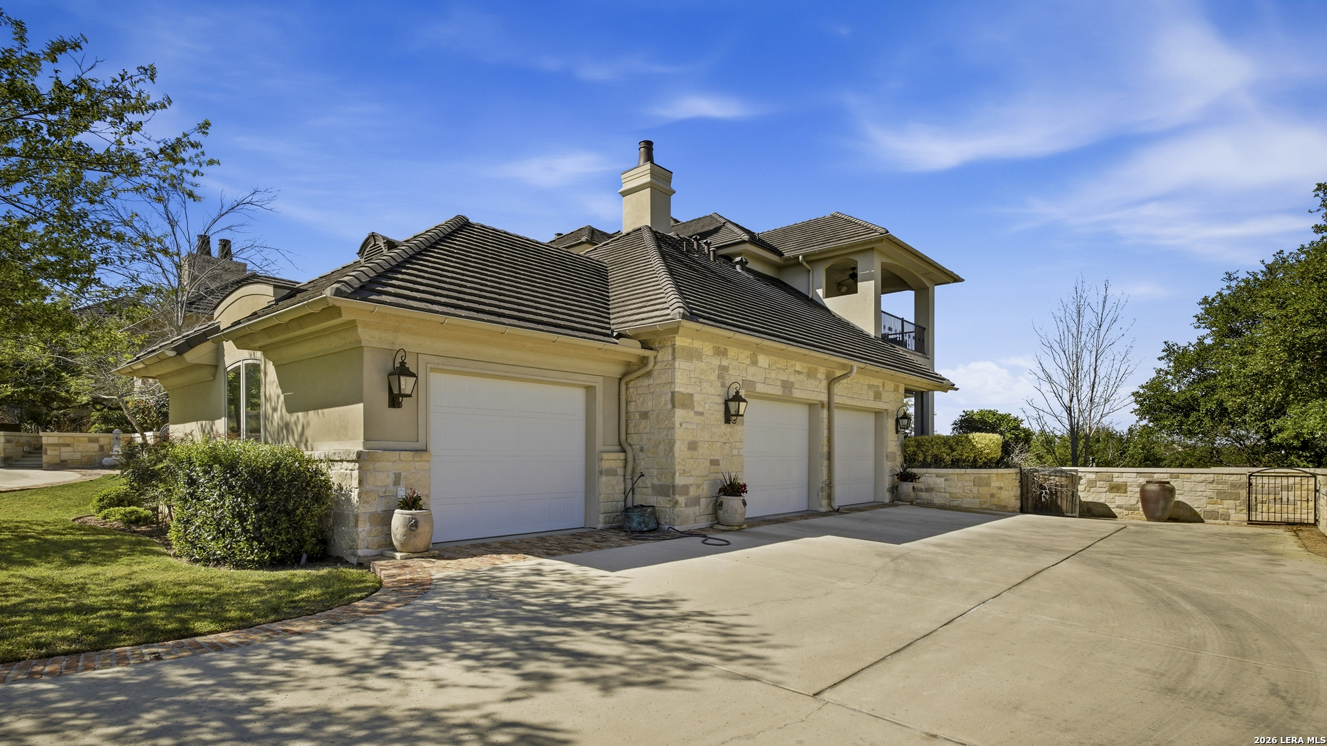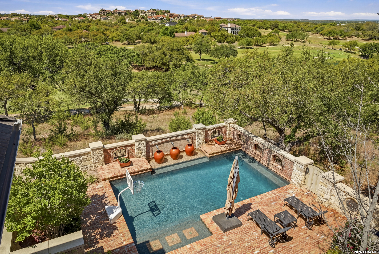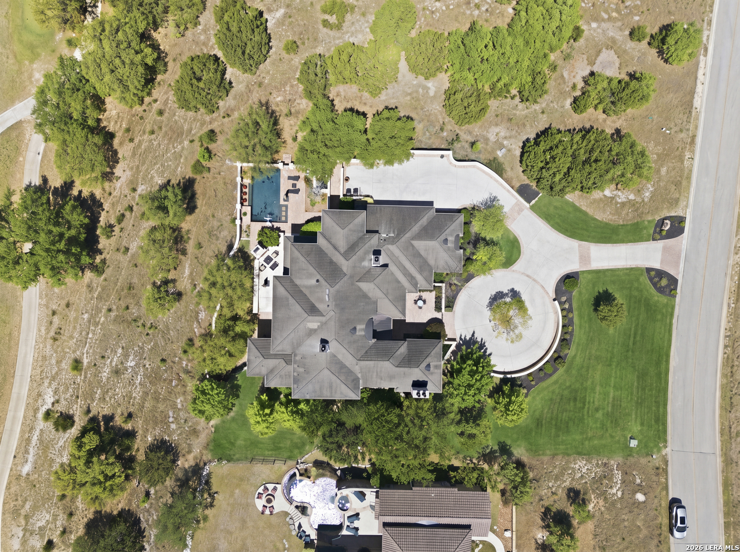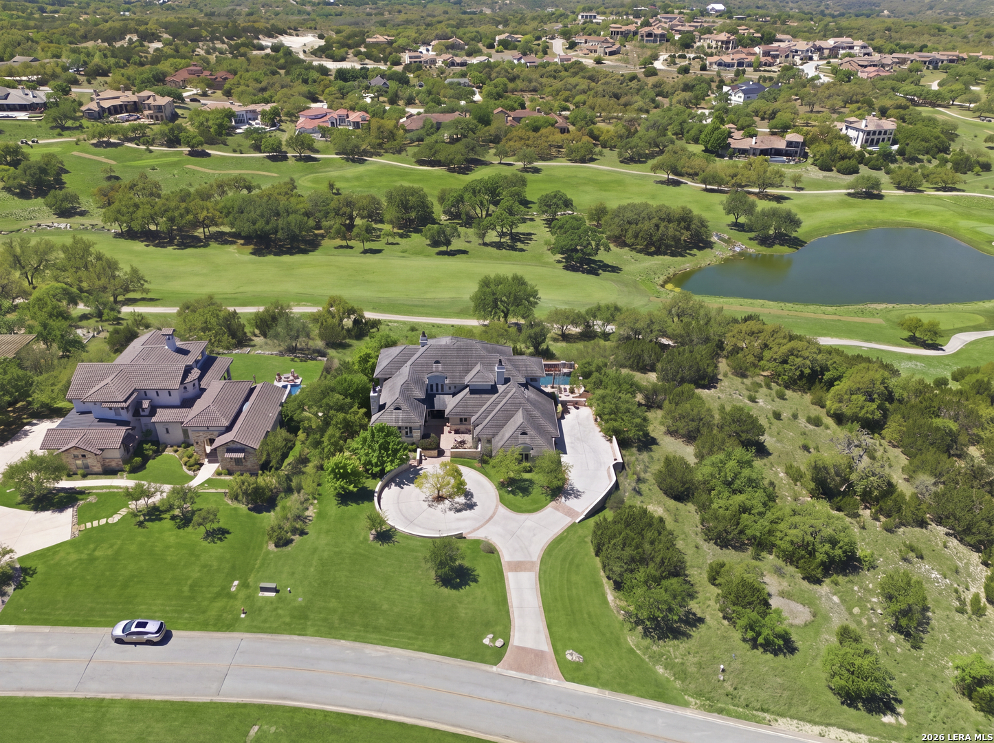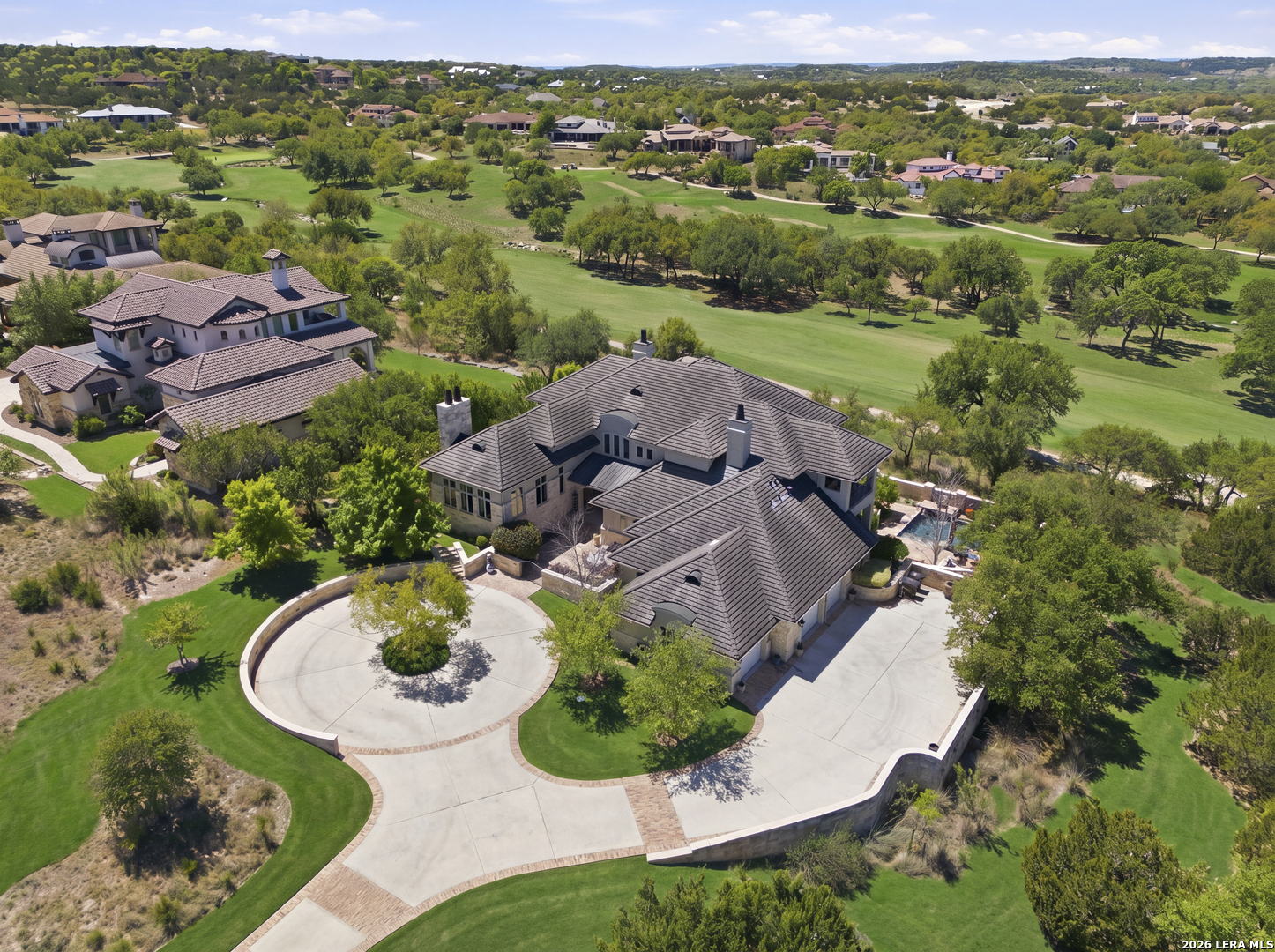 *This home has a FULL MASTER GOLF MEMBERSHIP AVAILABLE FOR PURCHASE* Exquisite European-style estate in Cordillera Ranch, perfectly positioned along holes 4-9 of the Jack Nicklaus Signature Golf Course with sweeping Hill Country views. This 6,700 sq. ft. residence blends timeless architecture with refined finishes and exceptional craftsmanship throughout. Property highlights include 4 spacious bedrooms, each with a private ensuite bath, offering comfort and privacy for family and guests, along with 3 well-appointed powder baths for added convenience. A temperature-controlled walkout basement provides ideal space for wine storage, hobbies, or additional living. European design is showcased through arched double front doors, walnut flooring, richly stained woodwork, bespoke cabinetry, and curated interior finishes. The chef's kitchen is equipped with premium appliances, including a steam oven, warming drawer, convection oven, and oversized Miele freezer and refrigeration columns. Multiple indoor and outdoor living and dining areas create seamless flow for entertaining. Outdoor living features a brick-accented pool deck, private courtyard ambiance, tranquil waterfall feature, and expansive sunset views over the rolling Hill Country landscape. Additional features include elevator access between main and upper levels, whole-home lighting control system, integrated AV sound, private study with custom millwork, dedicated safe room, and home gym or wellness space. An eco-conscious water catchment system is discreetly housed within the expansive basement. Equipped with Level 2 electric vehicle charger. A rare offering combining classic European elegance with modern luxury in one of the Hill Country's most sought-after communities.