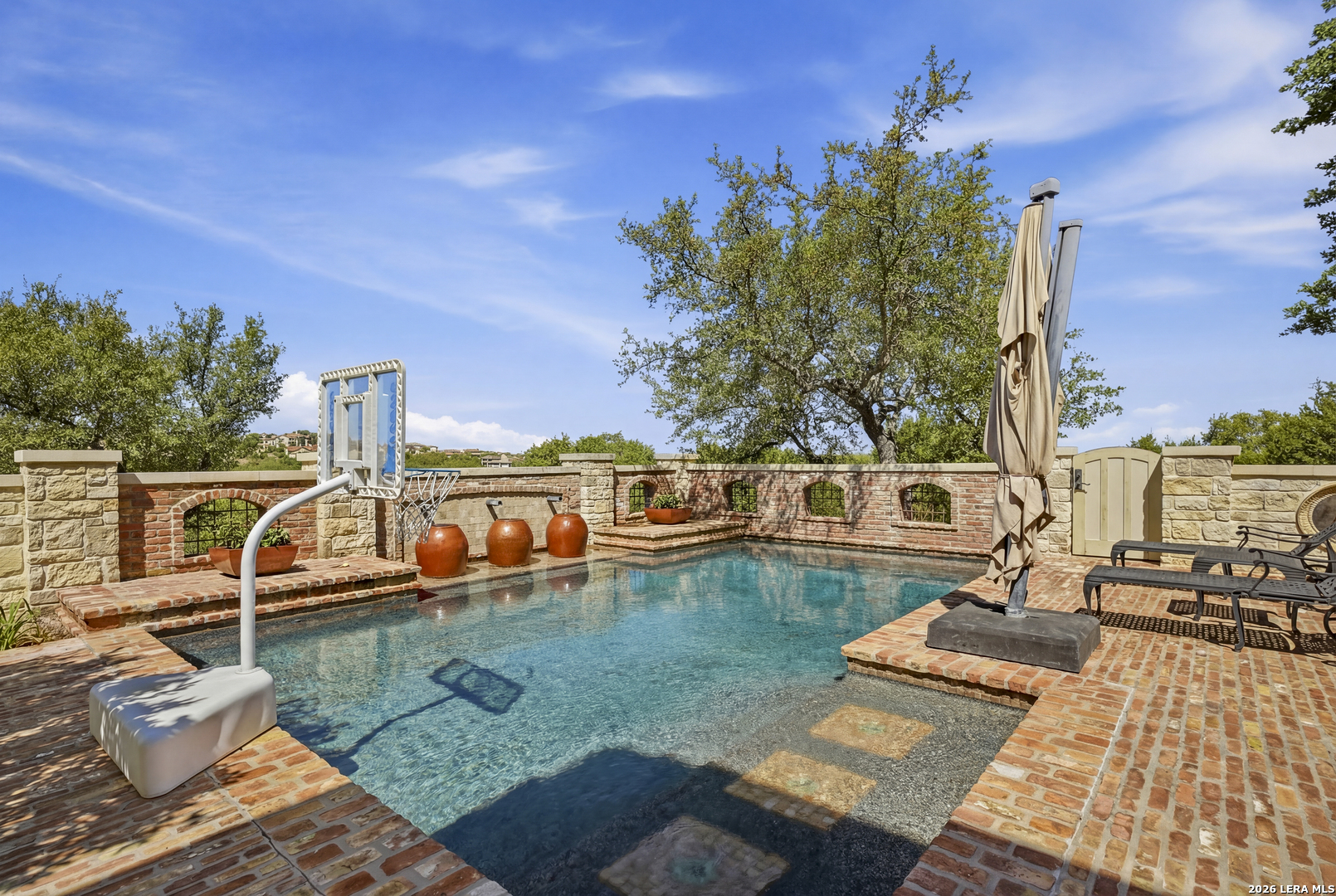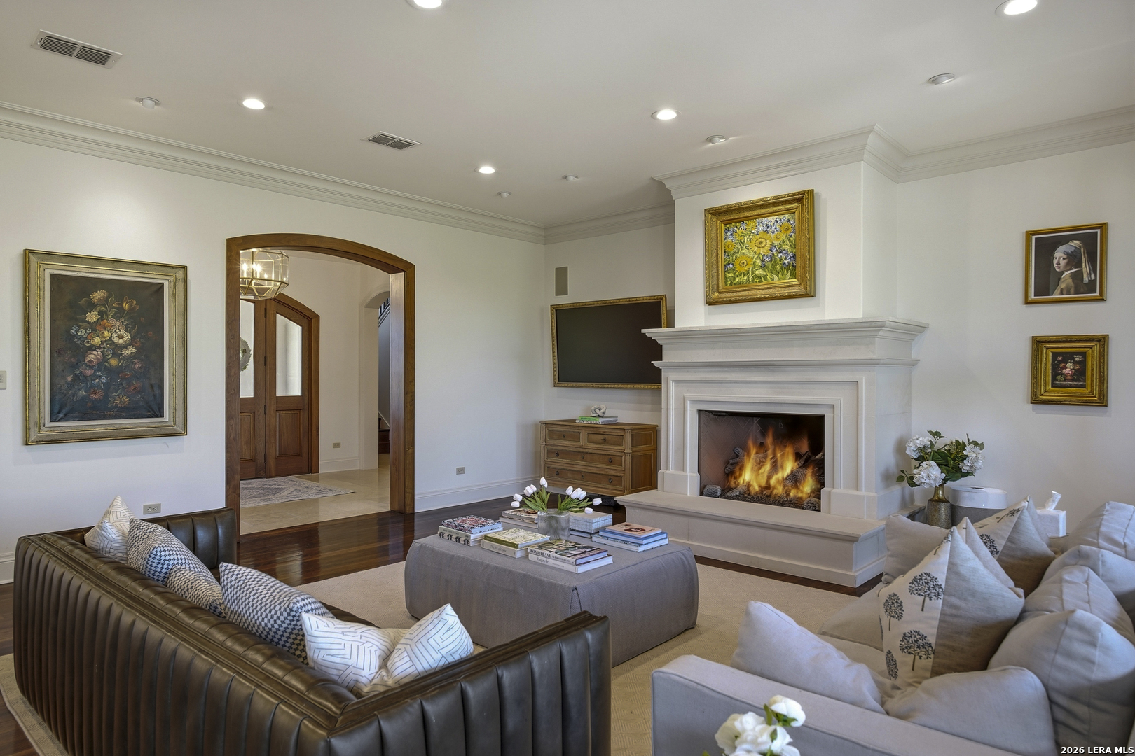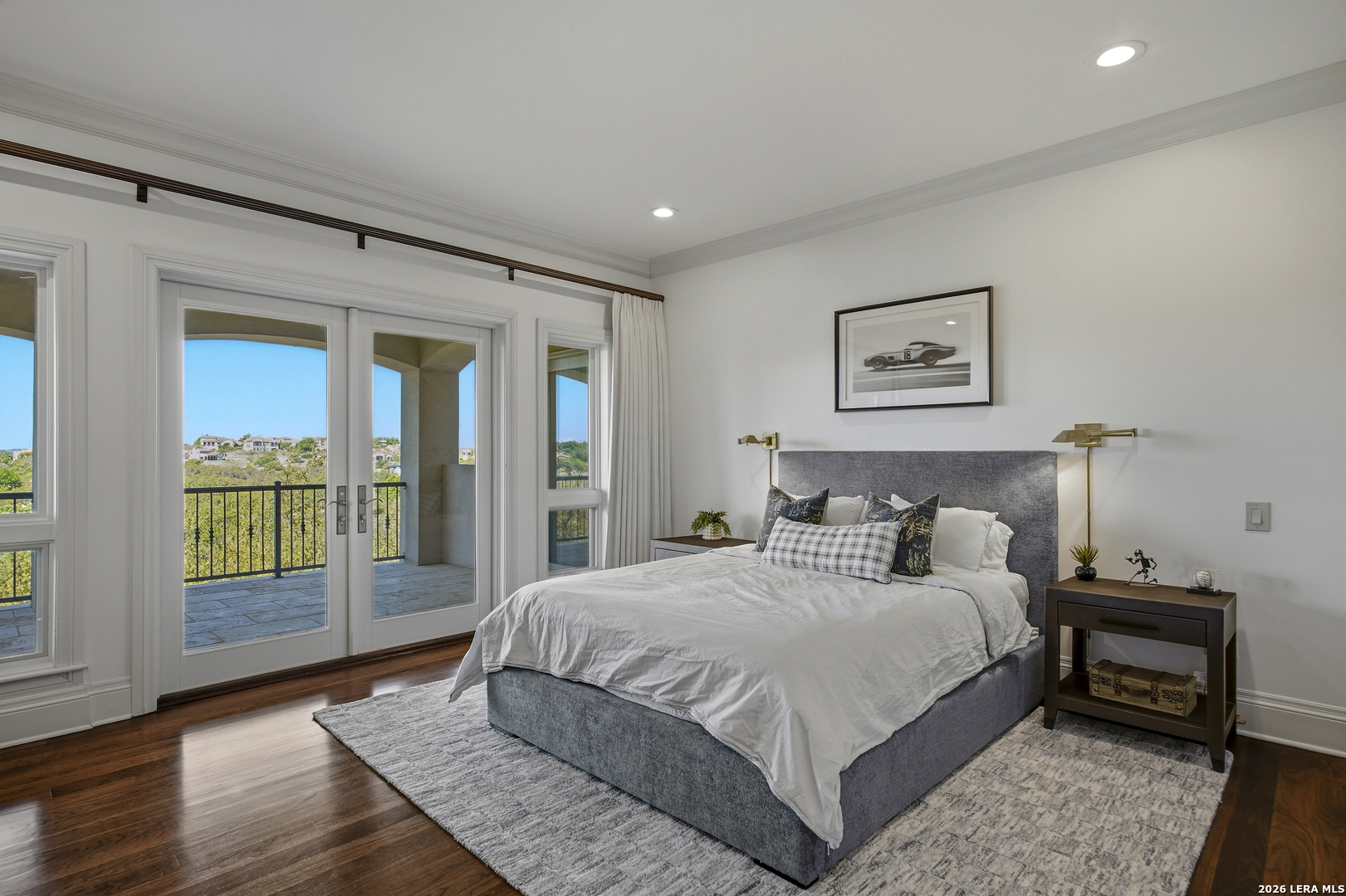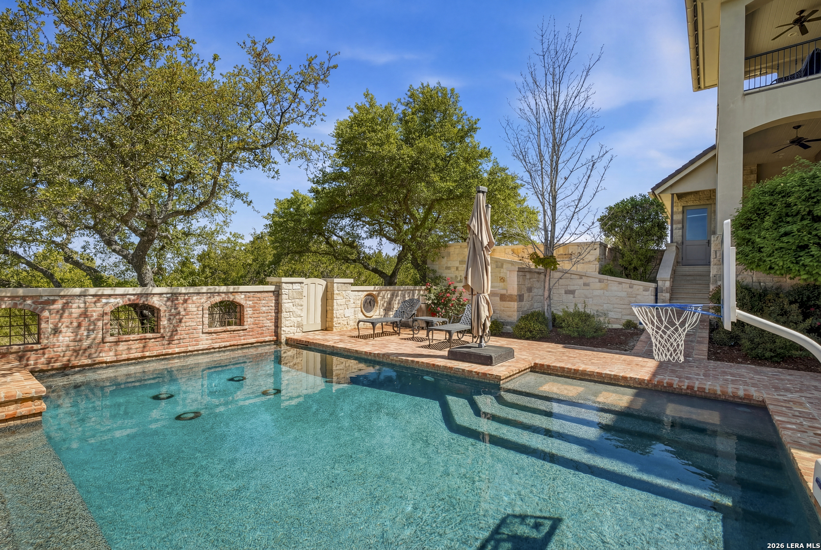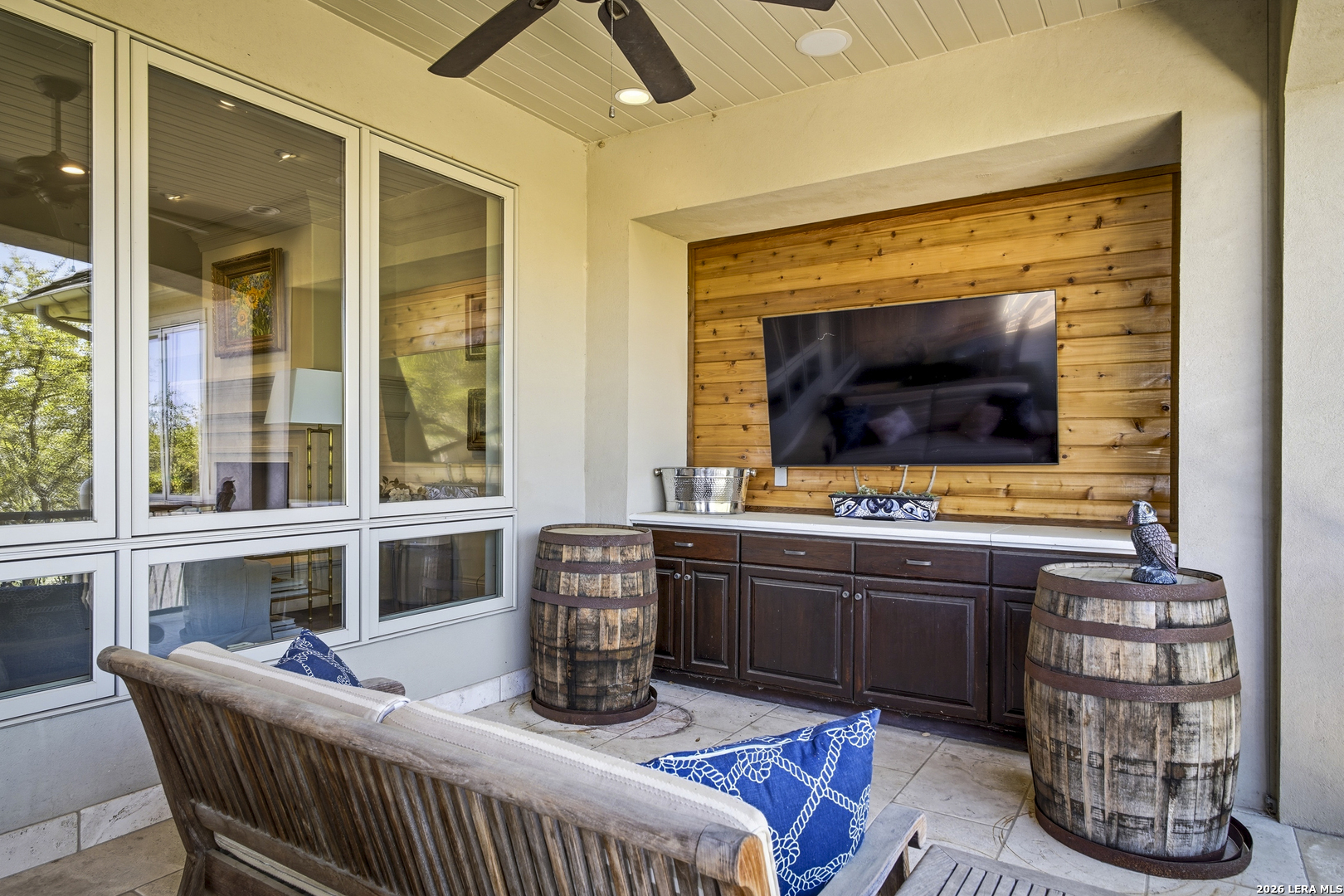*This home has a FULL MASTER GOLF MEMBERSHIP AVAILABLE FOR PURCHASE* Exquisite European-style estate in Cordillera Ranch, perfectly positioned along holes 4-9 of the Jack Nicklaus Signature Golf Course with sweeping Hill Country views. This 6,700 sq. ft. residence blends timeless architecture with refined finishes and exceptional craftsmanship throughout. Property highlights include 4 spacious bedrooms, each with a private ensuite bath, offering comfort and privacy for family and guests, along with 3 well-appointed powder baths for added convenience. A temperature-controlled walkout basement provides ideal space for wine storage, hobbies, or additional living. European design is showcased through arched double front doors, walnut flooring, richly stained woodwork, bespoke cabinetry, and curated interior finishes. The chef's kitchen is equipped with premium appliances, including a steam oven, warming drawer, convection oven, and oversized Miele freezer and refrigeration columns. Multiple indoor and outdoor living and dining areas create seamless flow for entertaining. Outdoor living features a brick-accented pool deck, private courtyard ambiance, tranquil waterfall feature, and expansive sunset views over the rolling Hill Country landscape. Additional features include elevator access between main and upper levels, whole-home lighting control system, integrated AV sound, private study with custom millwork, dedicated safe room, and home gym or wellness space. An eco-conscious water catchment system is discreetly housed within the expansive basement. Equipped with Level 2 electric vehicle charger. A rare offering combining classic European elegance with modern luxury in one of the Hill Country's most sought-after communities.