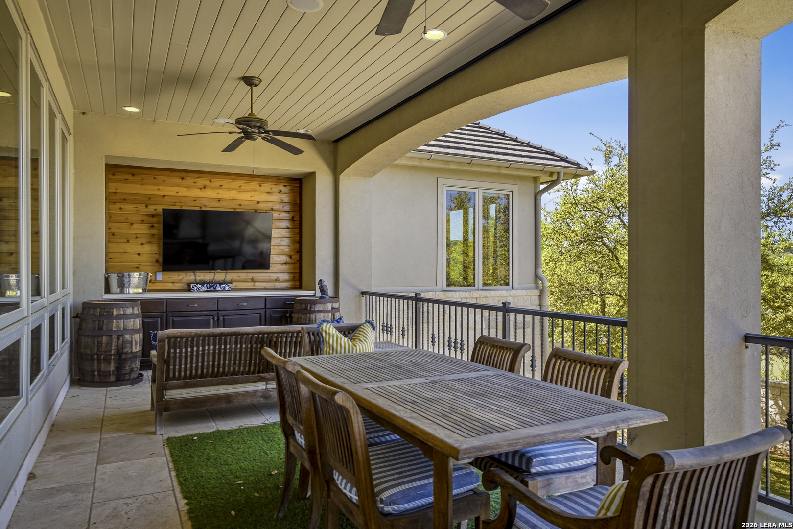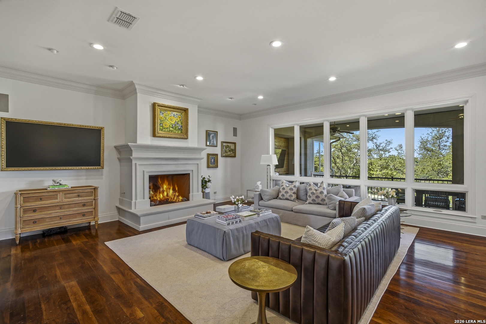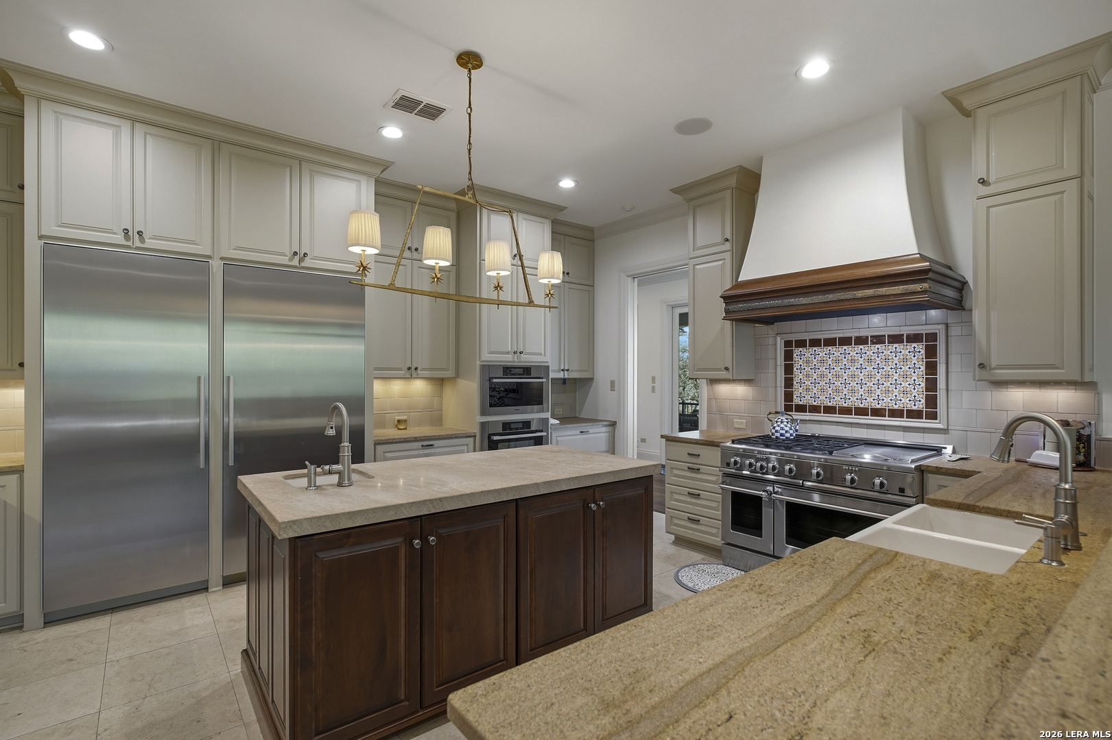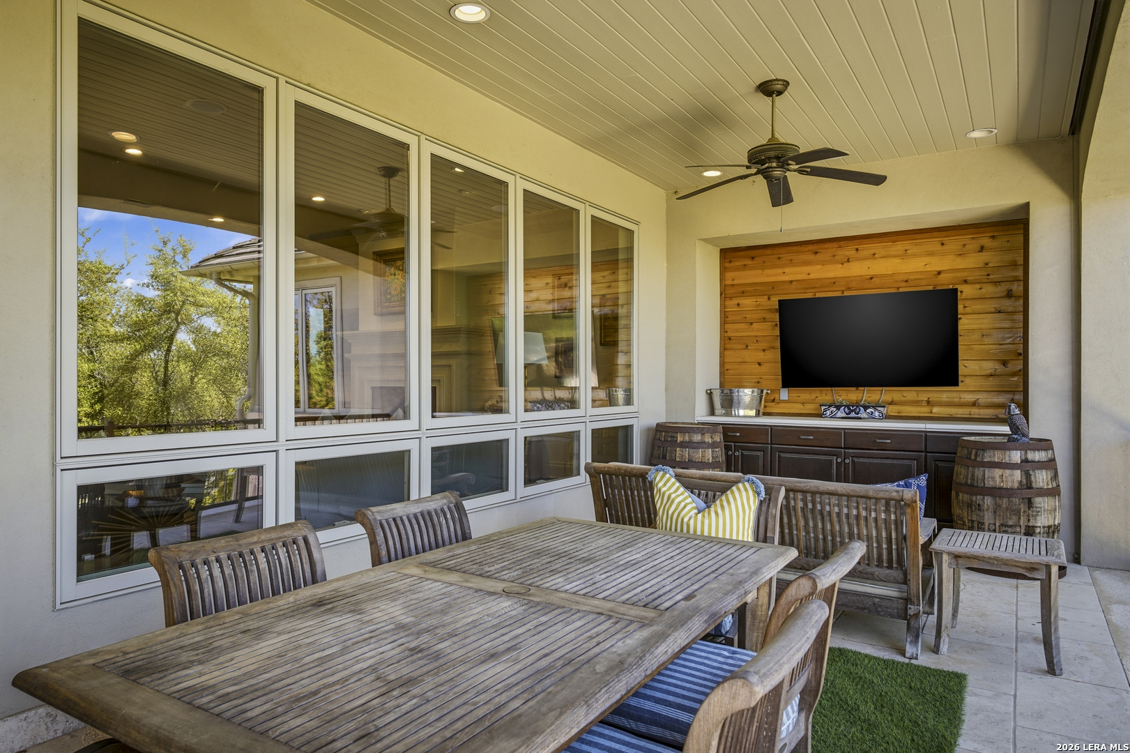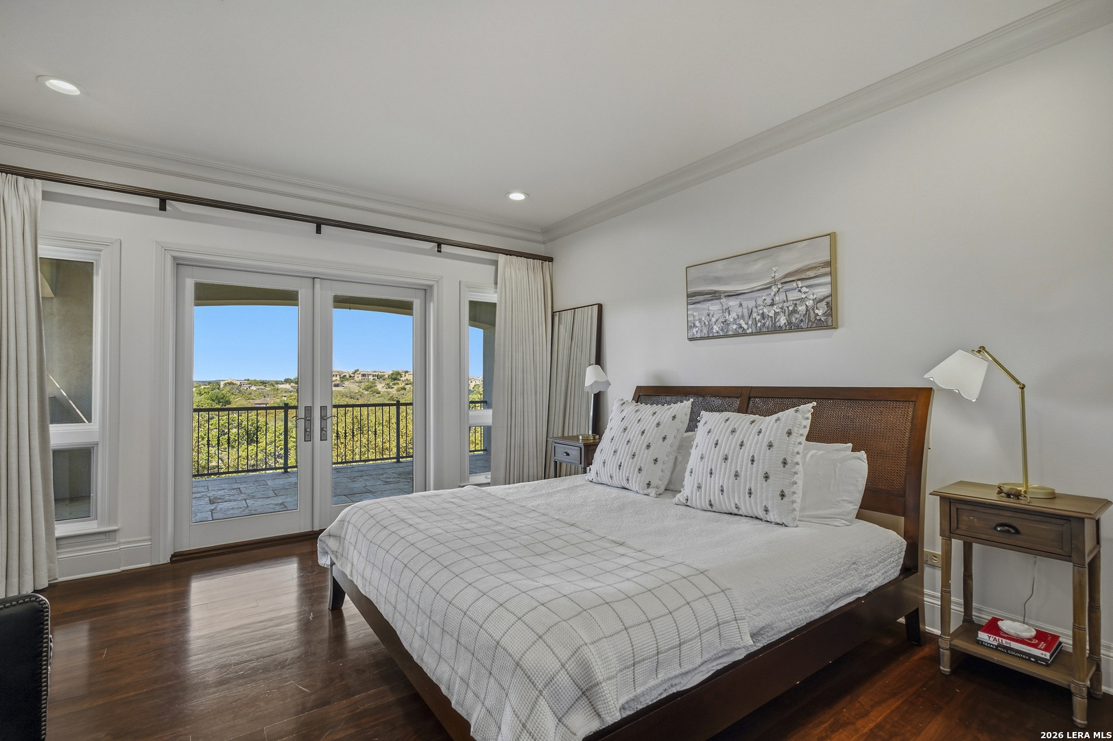 *This home has a FULL MASTER GOLF MEMBERSHIP AVAILABLE FOR PURCHASE* Exquisite European-style estate in Cordillera Ranch, perfectly positioned along holes 4-9 of the Jack Nicklaus Signature Golf Course with sweeping Hill Country views. This 6,700 sq. ft. residence blends timeless architecture with refined finishes and exceptional craftsmanship throughout. Property highlights include 4 spacious bedrooms, each with a private ensuite bath, offering comfort and privacy for family and guests, along with 3 well-appointed powder baths for added convenience. A temperature-controlled walkout basement provides ideal space for wine storage, hobbies, or additional living. European design is showcased through arched double front doors, walnut flooring, richly stained woodwork, bespoke cabinetry, and curated interior finishes. The chef's kitchen is equipped with premium appliances, including a steam oven, warming drawer, convection oven, and oversized Miele freezer and refrigeration columns. Multiple indoor and outdoor living and dining areas create seamless flow for entertaining. Outdoor living features a brick-accented pool deck, private courtyard ambiance, tranquil waterfall feature, and expansive sunset views over the rolling Hill Country landscape. Additional features include elevator access between main and upper levels, whole-home lighting control system, integrated AV sound, private study with custom millwork, dedicated safe room, and home gym or wellness space. An eco-conscious water catchment system is discreetly housed within the expansive basement. Equipped with Level 2 electric vehicle charger. A rare offering combining classic European elegance with modern luxury in one of the Hill Country's most sought-after communities.