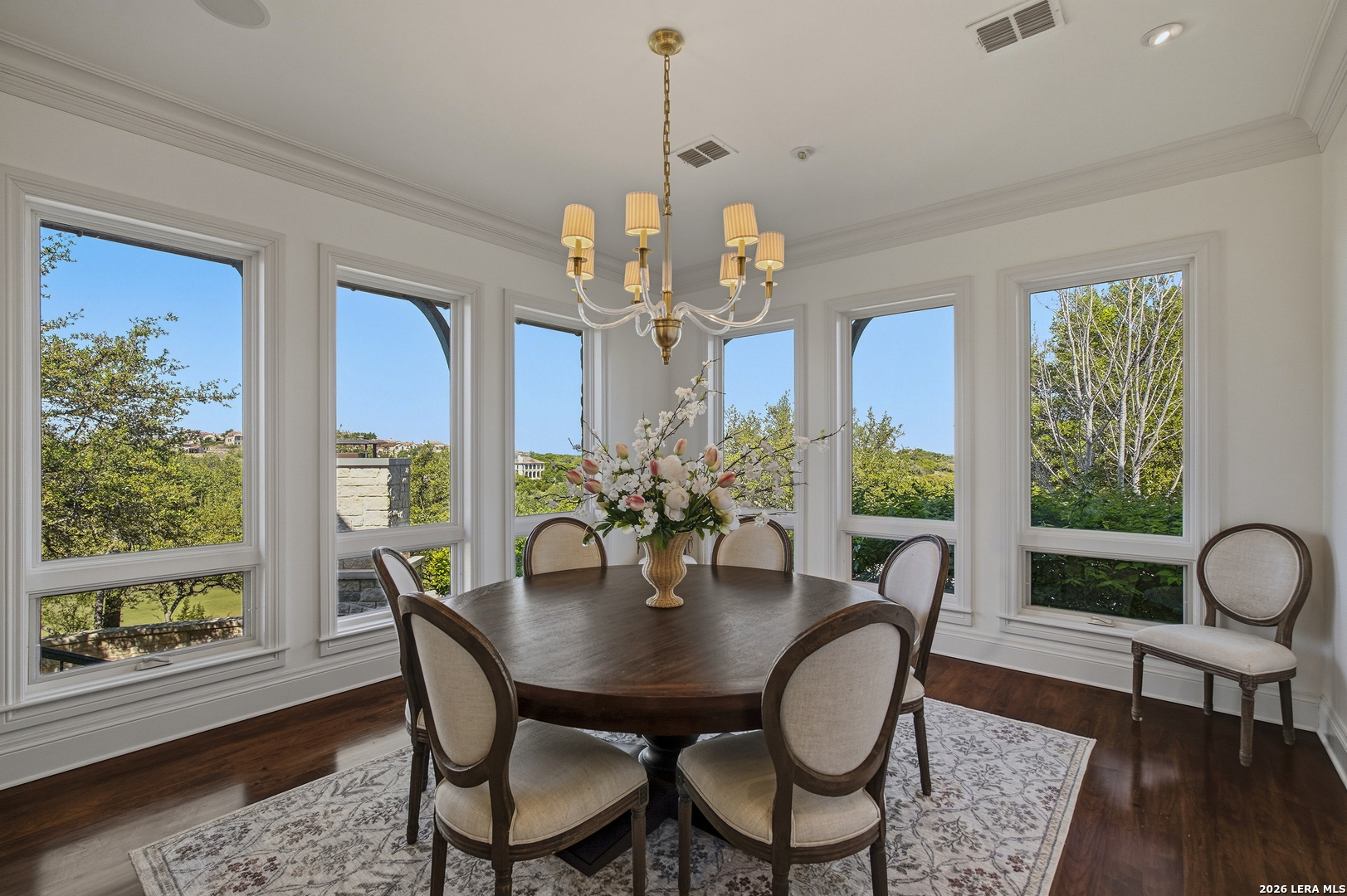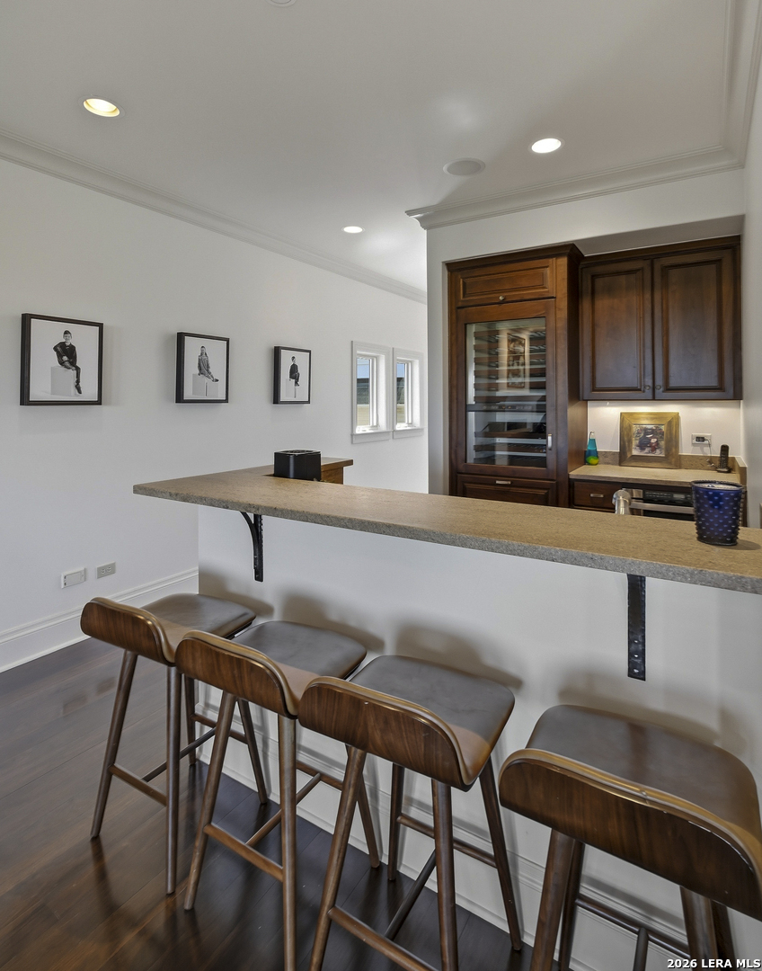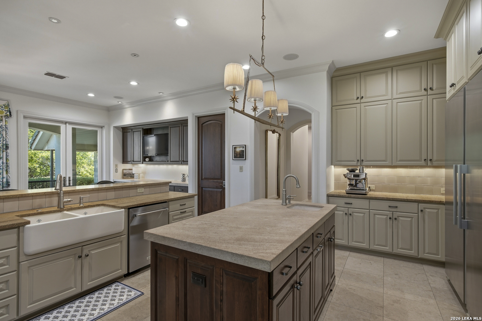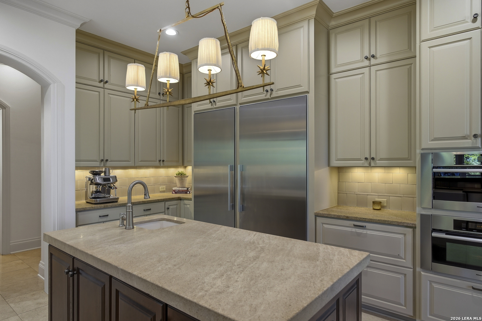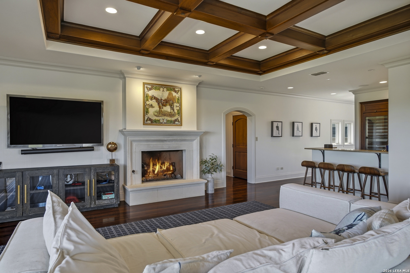 *This home has a FULL MASTER GOLF MEMBERSHIP AVAILABLE FOR PURCHASE* Exquisite European-style estate in Cordillera Ranch, perfectly positioned along holes 4-9 of the Jack Nicklaus Signature Golf Course with sweeping Hill Country views. This 6,700 sq. ft. residence blends timeless architecture with refined finishes and exceptional craftsmanship throughout. Property highlights include 4 spacious bedrooms, each with a private ensuite bath, offering comfort and privacy for family and guests, along with 3 well-appointed powder baths for added convenience. A temperature-controlled walkout basement provides ideal space for wine storage, hobbies, or additional living. European design is showcased through arched double front doors, walnut flooring, richly stained woodwork, bespoke cabinetry, and curated interior finishes. The chef's kitchen is equipped with premium appliances, including a steam oven, warming drawer, convection oven, and oversized Miele freezer and refrigeration columns. Multiple indoor and outdoor living and dining areas create seamless flow for entertaining. Outdoor living features a brick-accented pool deck, private courtyard ambiance, tranquil waterfall feature, and expansive sunset views over the rolling Hill Country landscape. Additional features include elevator access between main and upper levels, whole-home lighting control system, integrated AV sound, private study with custom millwork, dedicated safe room, and home gym or wellness space. An eco-conscious water catchment system is discreetly housed within the expansive basement. Equipped with Level 2 electric vehicle charger. A rare offering combining classic European elegance with modern luxury in one of the Hill Country's most sought-after communities.