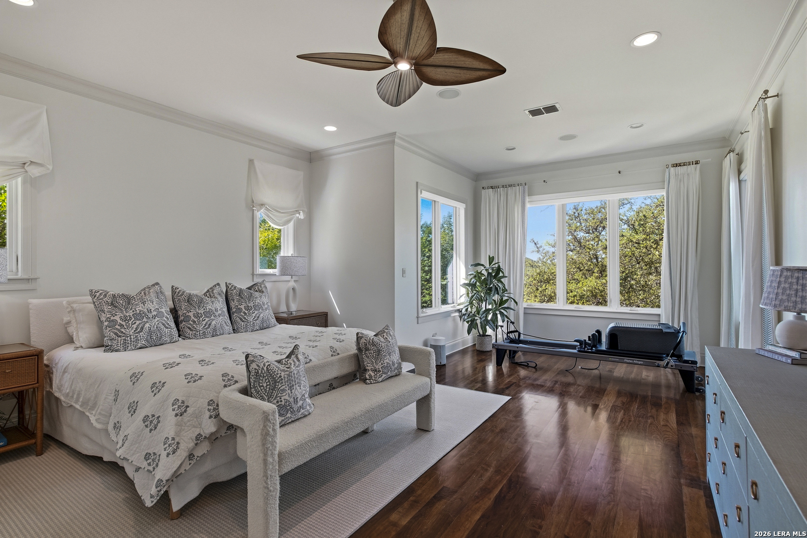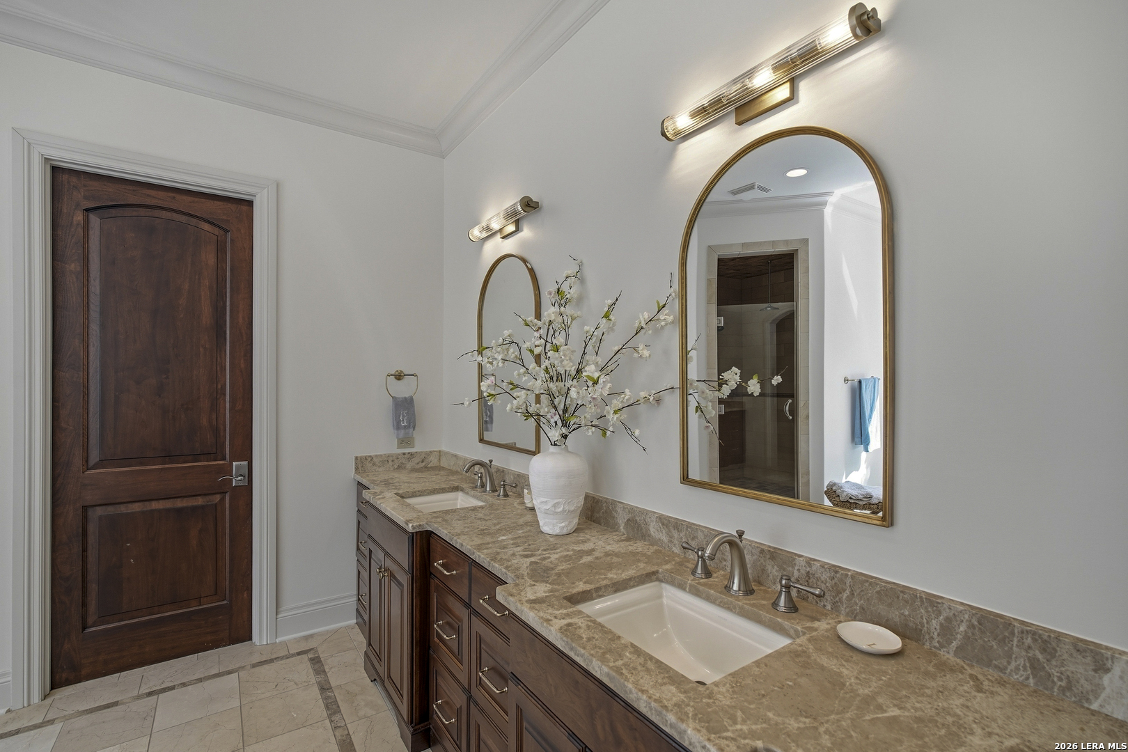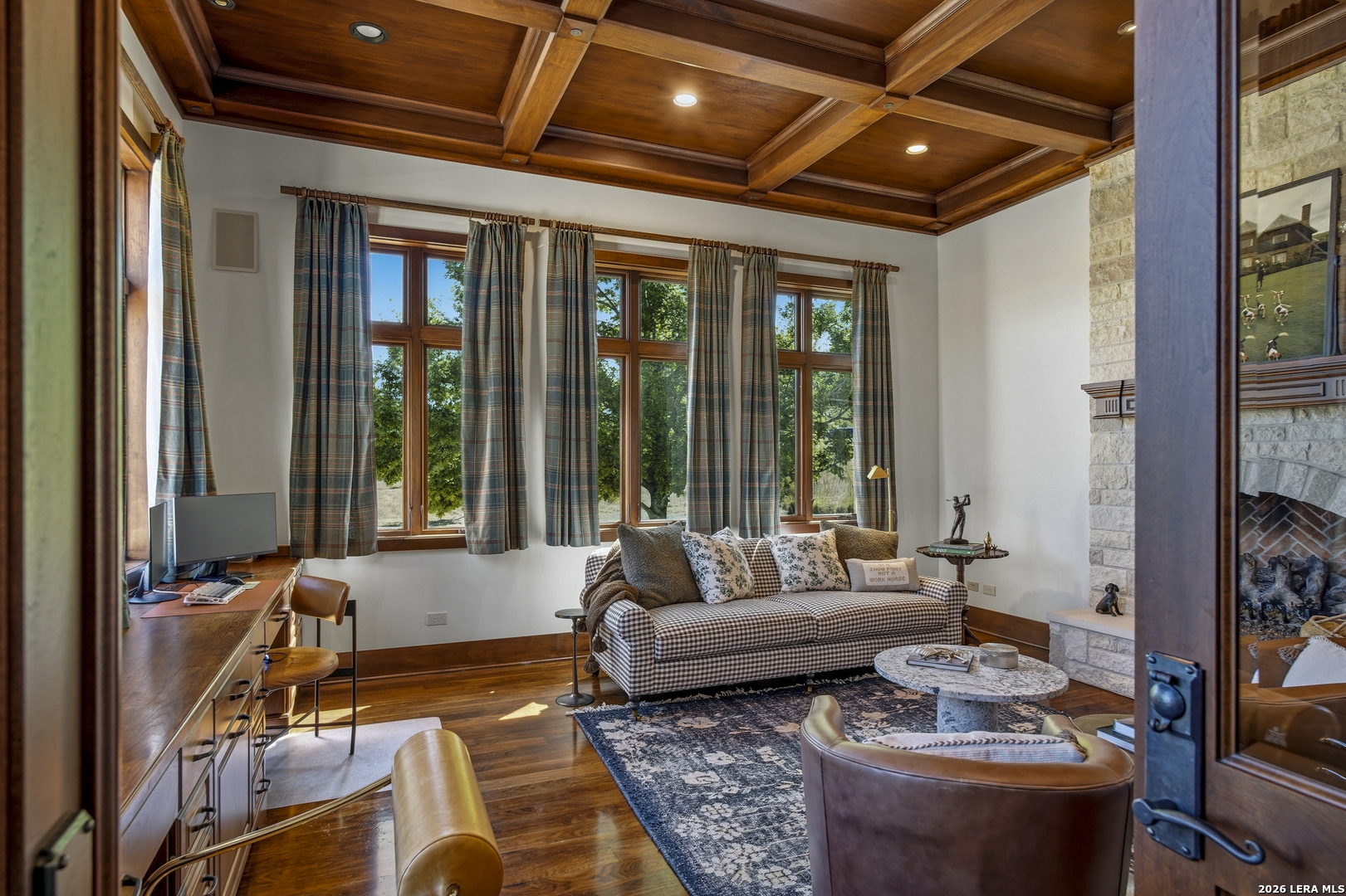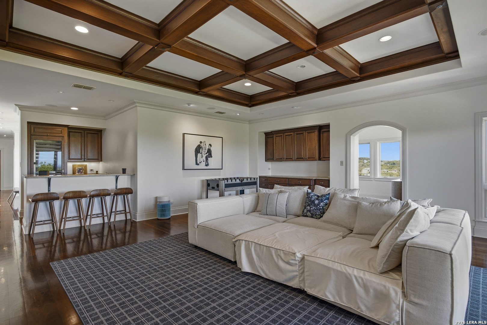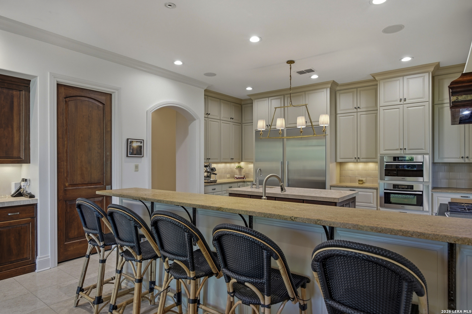 *This home has a FULL MASTER GOLF MEMBERSHIP AVAILABLE FOR PURCHASE* Exquisite European-style estate in Cordillera Ranch, perfectly positioned along holes 4-9 of the Jack Nicklaus Signature Golf Course with sweeping Hill Country views. This 6,700 sq. ft. residence blends timeless architecture with refined finishes and exceptional craftsmanship throughout. Property highlights include 4 spacious bedrooms, each with a private ensuite bath, offering comfort and privacy for family and guests, along with 3 well-appointed powder baths for added convenience. A temperature-controlled walkout basement provides ideal space for wine storage, hobbies, or additional living. European design is showcased through arched double front doors, walnut flooring, richly stained woodwork, bespoke cabinetry, and curated interior finishes. The chef's kitchen is equipped with premium appliances, including a steam oven, warming drawer, convection oven, and oversized Miele freezer and refrigeration columns. Multiple indoor and outdoor living and dining areas create seamless flow for entertaining. Outdoor living features a brick-accented pool deck, private courtyard ambiance, tranquil waterfall feature, and expansive sunset views over the rolling Hill Country landscape. Additional features include elevator access between main and upper levels, whole-home lighting control system, integrated AV sound, private study with custom millwork, dedicated safe room, and home gym or wellness space. An eco-conscious water catchment system is discreetly housed within the expansive basement. Equipped with Level 2 electric vehicle charger. A rare offering combining classic European elegance with modern luxury in one of the Hill Country's most sought-after communities.