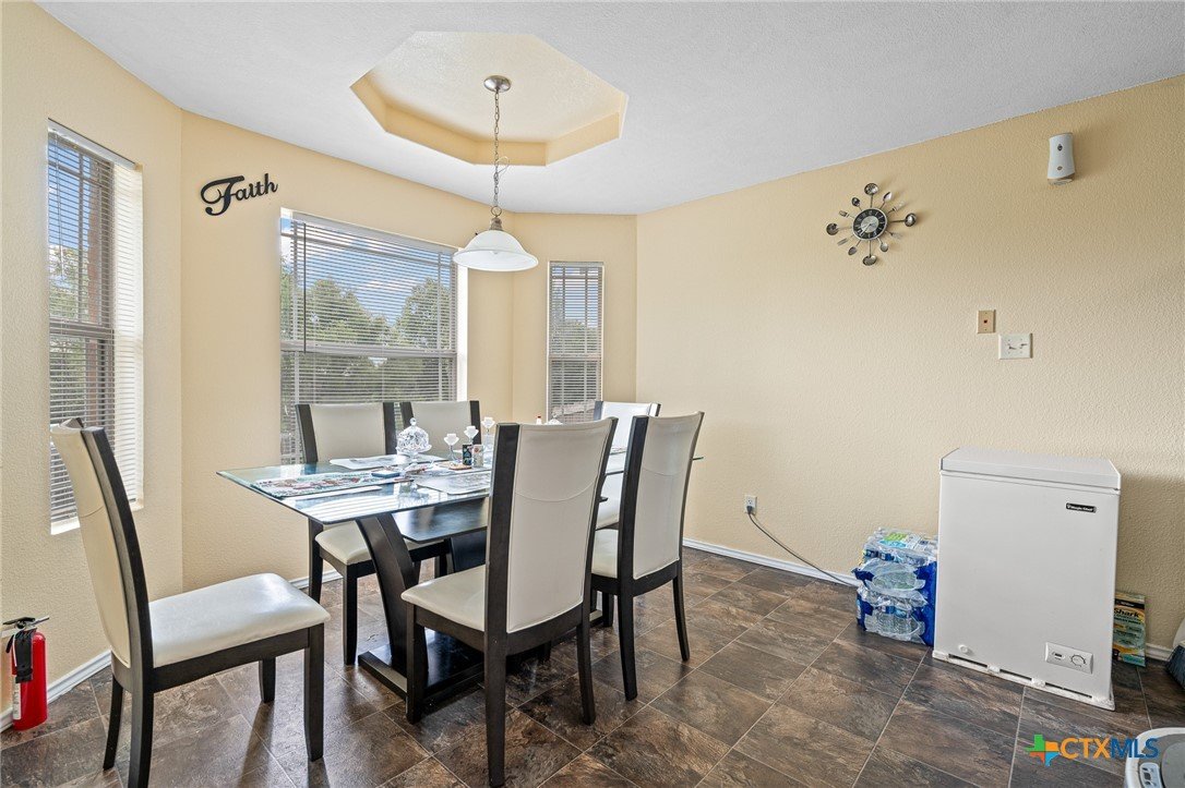 This beautiful single-family home is located near Reeces Creek Elementary School, Roy J Middle School and plenty of food options! Upon entry to the house, you are welcomed to a lovely living room with a lighted ceiling fan and two large windows for natural lighting. It has vinyl flooring and open to dining area. The kitchen has a breakfast bar with custom low light fixture. It also has lots of counter space and ample cabinet space. Brand new roof and updated bathroom space. Looking at the master bedroom, you see a lighted ceiling fan and new flooring. This well-kept bedroom has its personal ensuite. The ensuite has a double vanity, with a stand-alone shower and garden tub. It also has plenty of storage space with two closets. The best part about the back yard is you have no neighbors behind you! Do not miss out on this great home, so schedule your private tour today!