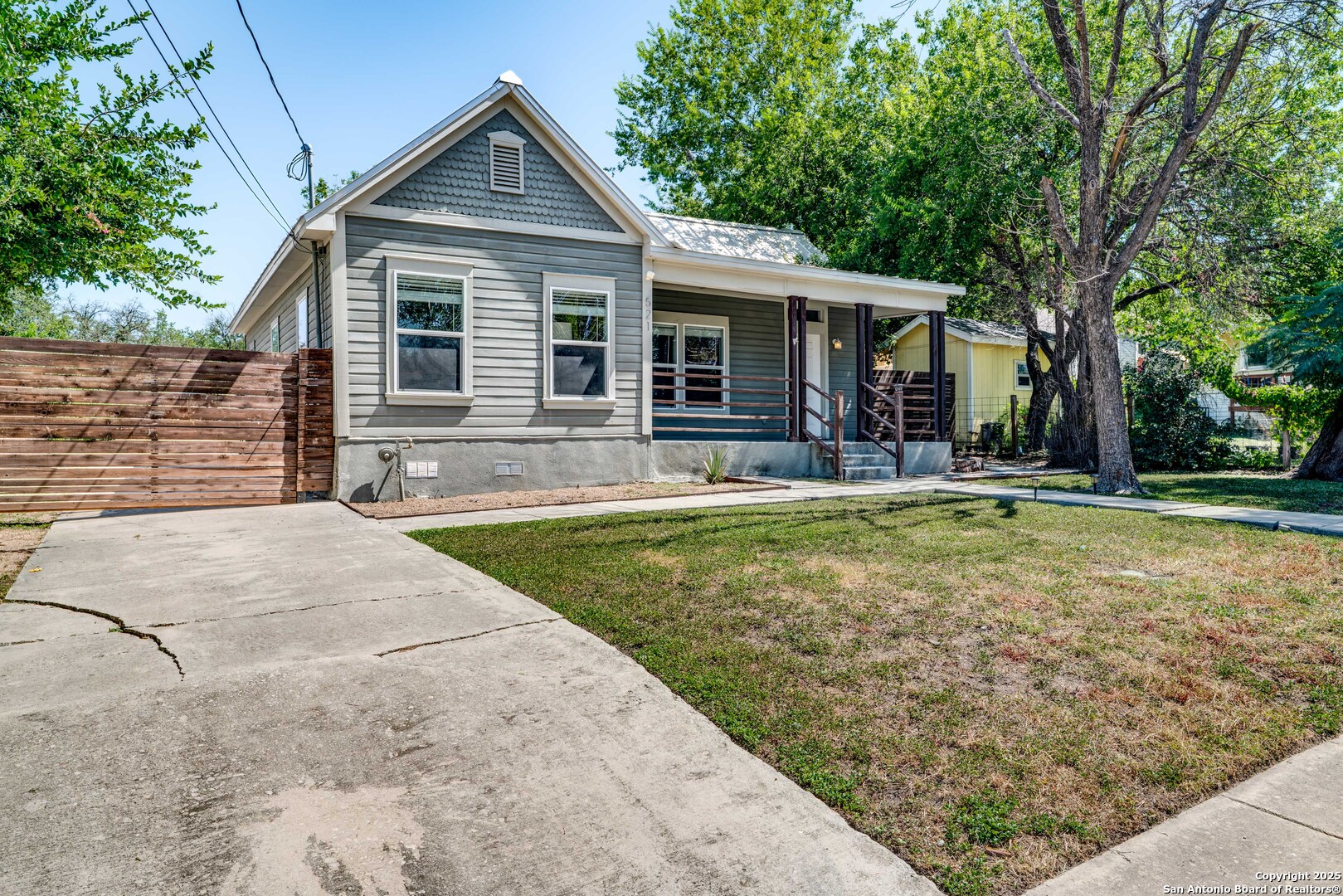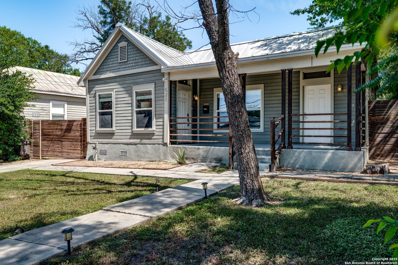 JOIN US AT OUR OPEN HOUSE THIS SATURDAY 09/06/2025 from 2:30 PM to 4:30 Wonderful location in Dignowity Hill, just a short 0.3 mile stroll to the iconic Hay's Street Bridge and within walking distance of vibrant restaurants, shops, and entertainment venues. Opportunity to expand on this Oversized ~.26 acre lot! Build a casita, large swimming pool, or both. Tastefully updated, with high ceilings and open-concept living, dining and kitchen layout. Updated with ceramic tile and wood flooring, a classical color palette, and tastefully selected fixtures add to the ambience. The well-appointed kitchen boasts ample cabinet space and a large island with room for seating-ideal for casual dining or entertaining. The bedrooms each have their own hallways, offering privacy and each has a nice-sized closet for great utility. The primary bathroom is artfully updated with a great shower and double vanity. The secondary bathroom offers a tub-shower combination. The standing seam metal roof offers durability and a sleek modern look to the exterior. Relax and enjoy views of downtown San Antonio from its spectacular front porch. Out back, besides the huge fenced in back yard, a large shed provides ample storage for gardening tools or other hobbies. The property also includes a large car-sized gate with a parking pad, for those who prefer to park inside. 521 Dawson is more than just a house-it's a lifestyle. A blend of historical charm, modern conveniences, and an unbeatable location. Make this gem your new San Antonio sanctuary. This home is also available as a fully furnished, turn-key package. Furniture pricing upon request.