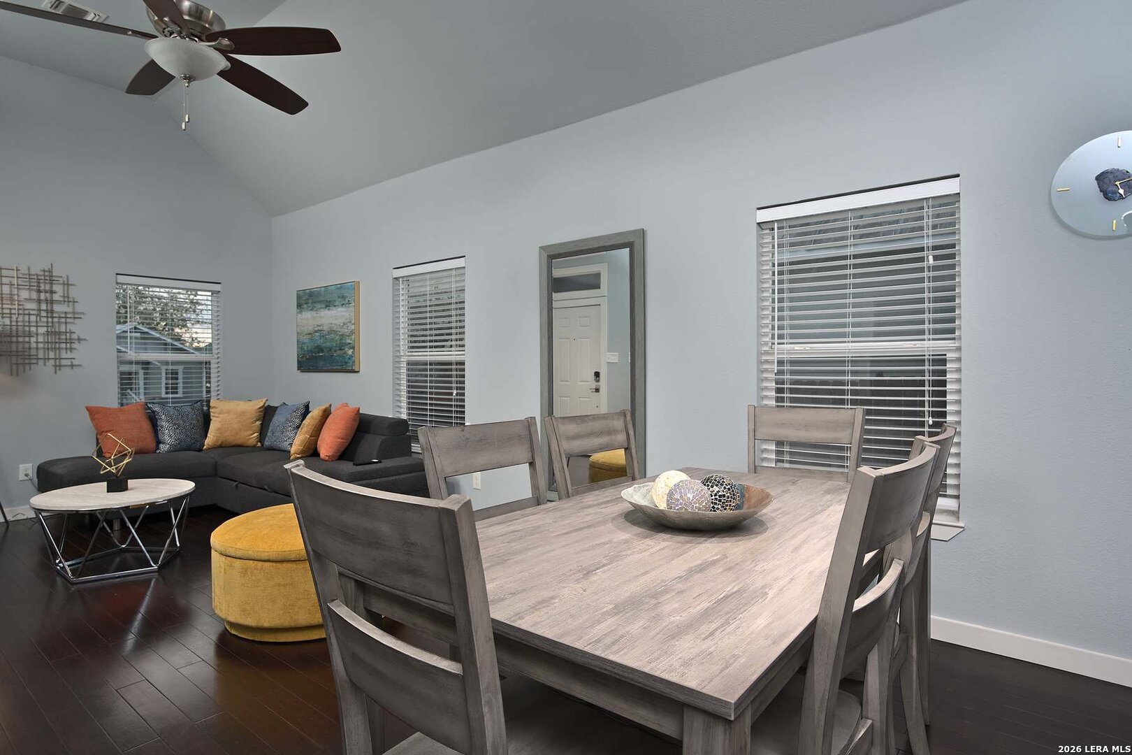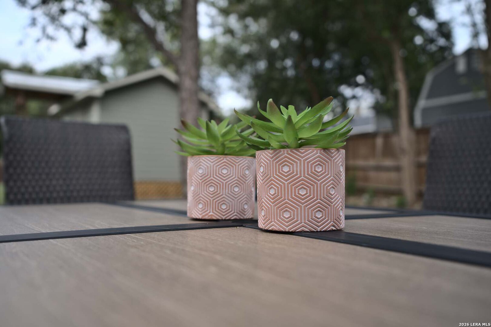 Located in sought-after Dignowity Hill, just 0.3 miles from the iconic Hays Street Bridge, this home offers walkable access to top dining, shops, and entertainment. Set on an oversized 0.26-acre lot, there's room to expand, you can add a casita, pool, or both! Inside, enjoy high ceilings and an open-concept layout with ceramic tile and wood flooring, a clean, timeless palette, and thoughtfully selected finishes. The kitchen features ample cabinetry and a large island, perfect for everyday living or entertaining. Bedrooms are privately positioned, each with generous closet space. The primary bath includes a double vanity and upgraded shower, while the secondary offers a tub-shower combo. A standing seam metal roof adds durability and modern curb appeal. Relax on the front porch with downtown San Antonio views, or take advantage of the expansive backyard, storage shed, and gated parking pad. 521 Dawson delivers historic charm, modern updates, and exceptional location-offered fully furnished as a turnkey option!