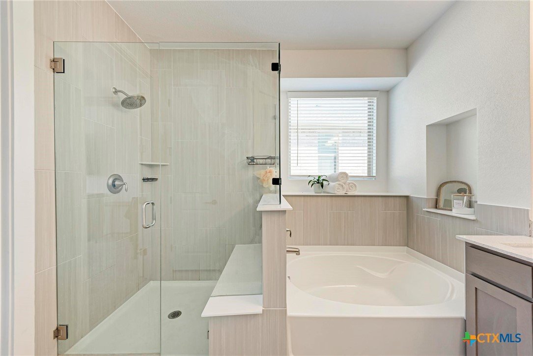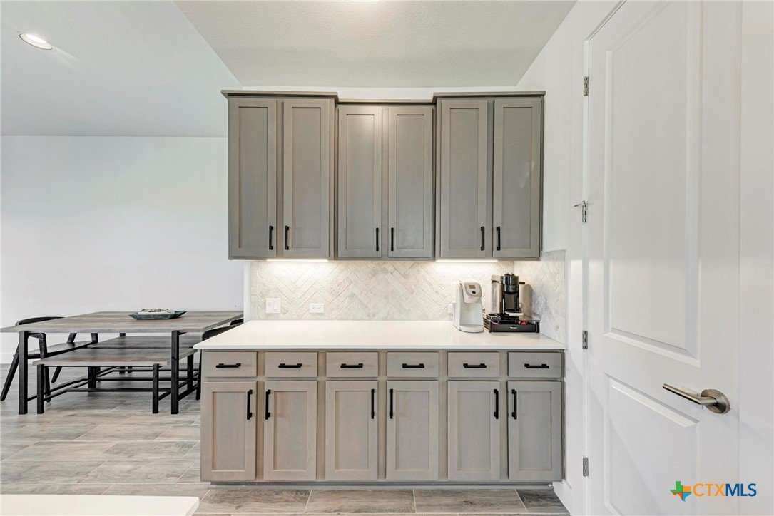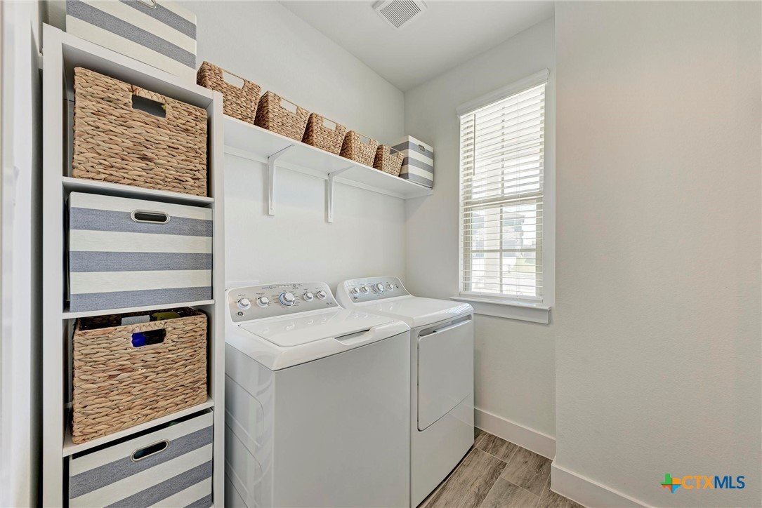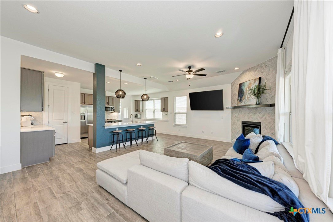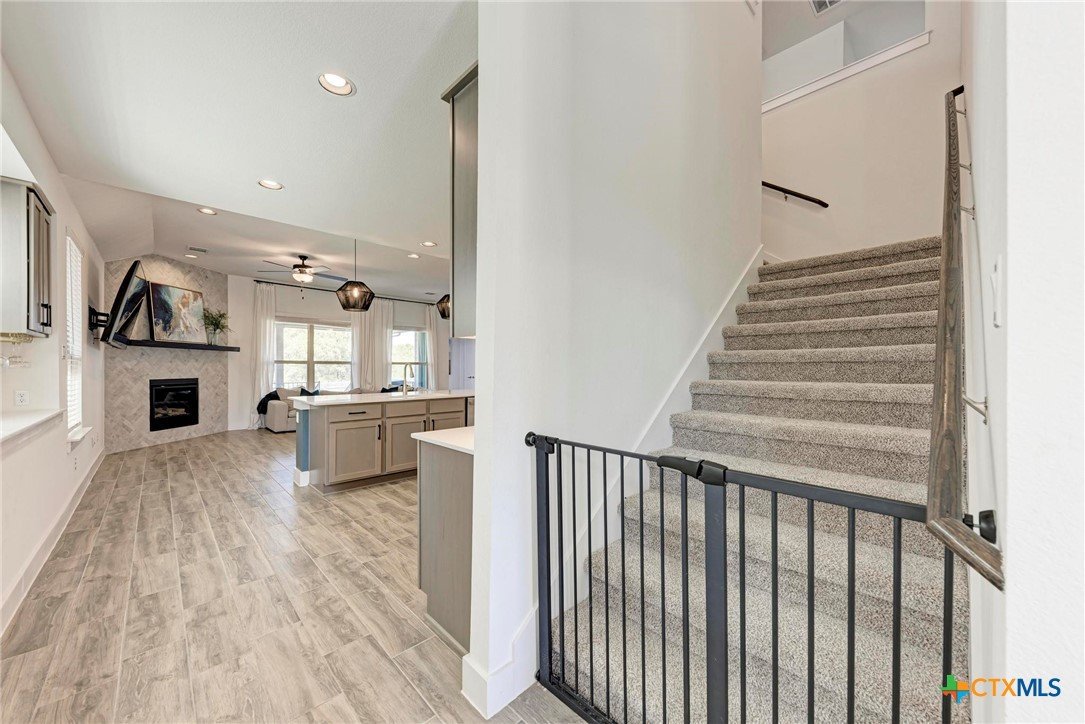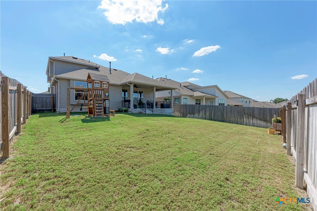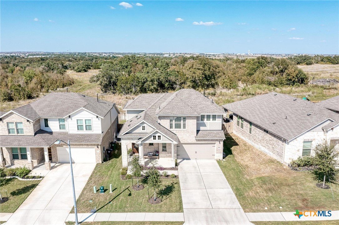 Welcome home to this beautifully updated 2-story gem in the acclaimed Star Ranch community! Offering 2,327 sq ft, this 4-bedroom, 2.5-bath home features a thoughtfully designed layout with the primary suite on the main level and a spacious game room upstairs—perfect for entertaining or relaxing. Inside, you’ll love the modern updates throughout, including wood-look tile flooring, gray cabinetry, white quartz countertops, and stainless steel appliances. The open kitchen boasts a breakfast bar that flows seamlessly into the living area, highlighted by a cozy fireplace—ideal for everyday living and hosting guests. The private primary retreat includes a luxurious en suite bath with a frameless walk-in shower, separate soaking tub, double vanity, separate water closet, and a large walk-in closet. Upstairs bedrooms are generously sized, offering flexibility for family, guests, or home office needs. Step outside to a spacious backyard with a large covered patio, overlooking non-developed property—providing privacy and peaceful views. Unbeatable location with quick access to everything you need: just 2 minutes to HEB, 10 minutes to Stone Hill Town Center, 15 minutes to the new Samsung, and only 2 minutes to the 130 Toll Road for fast commutes to Austin, the airport, and major tech employers. This home checks all the boxes—style, space, privacy, and an unbeatable location. Don’t miss it!