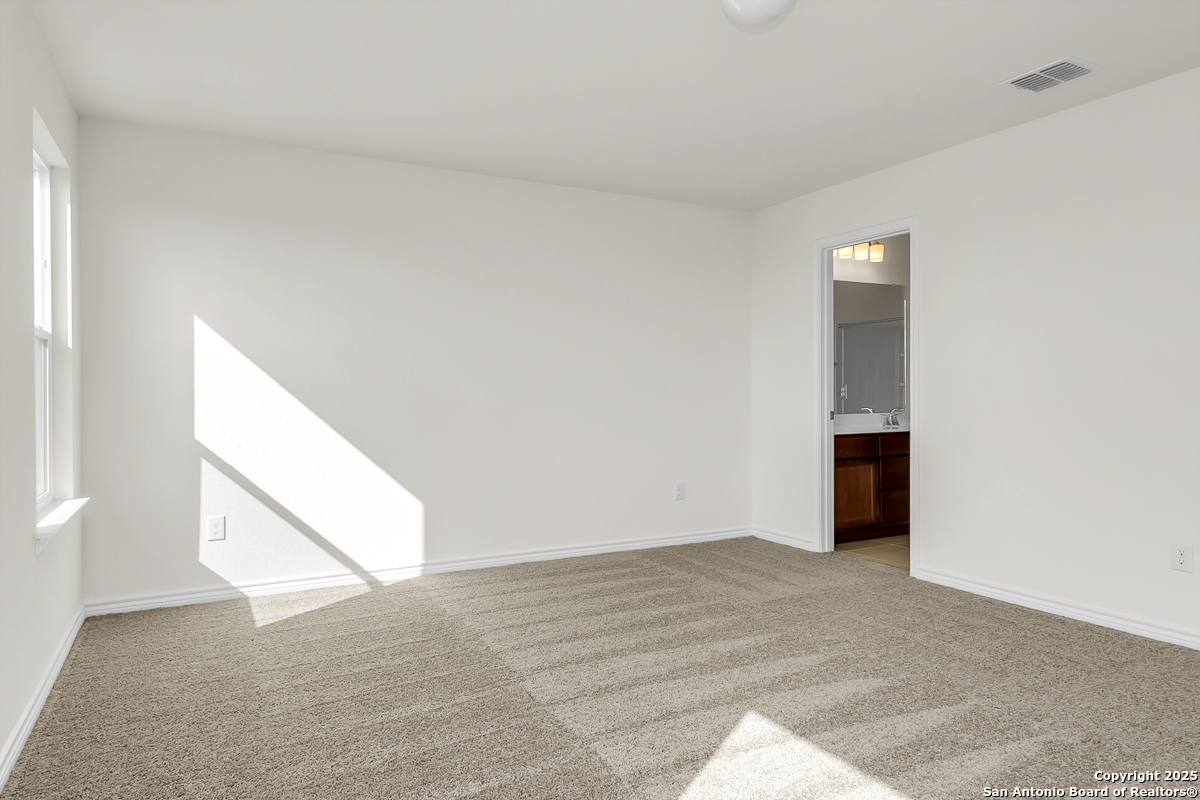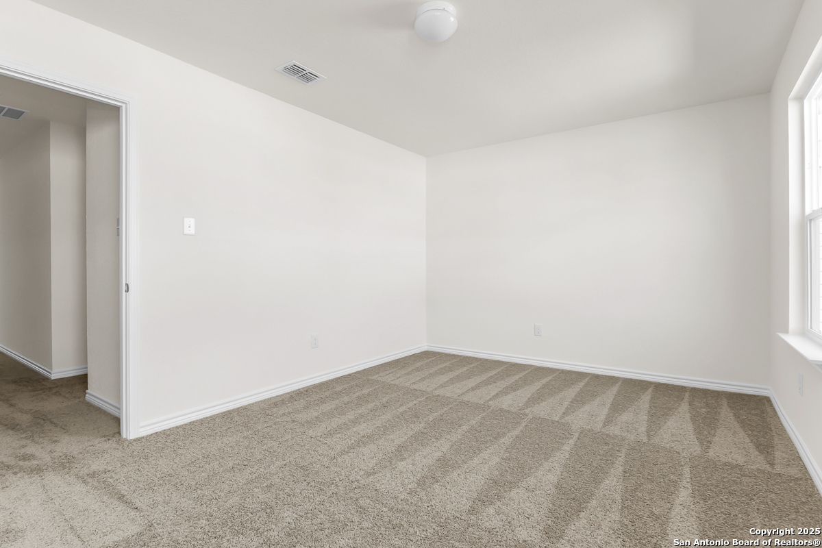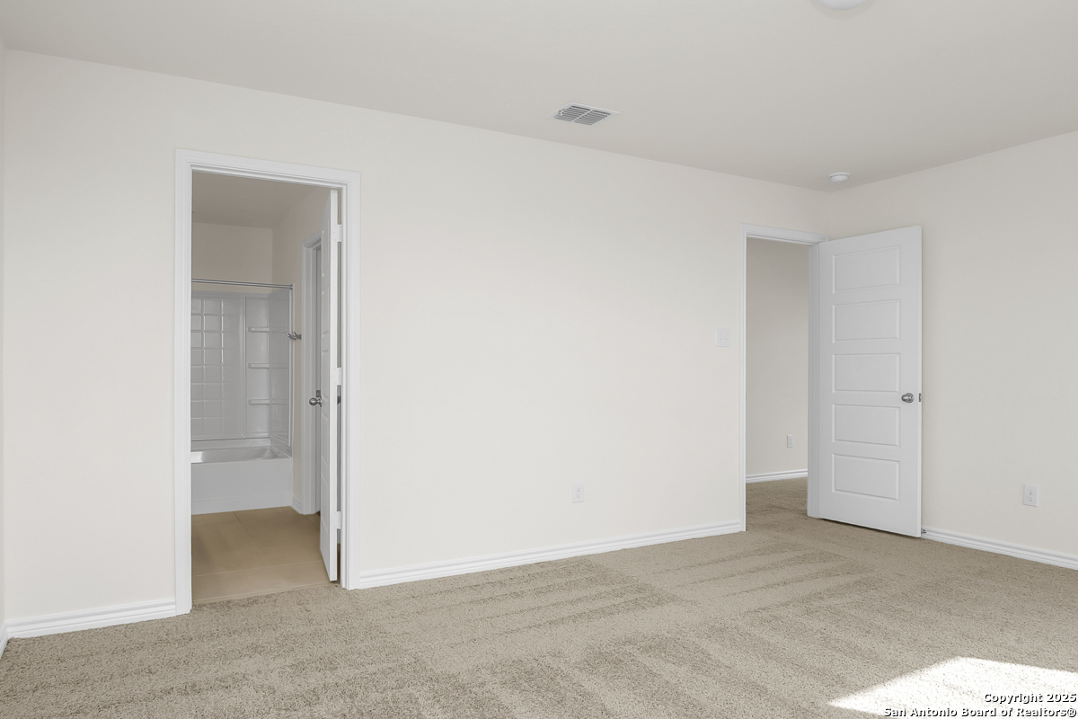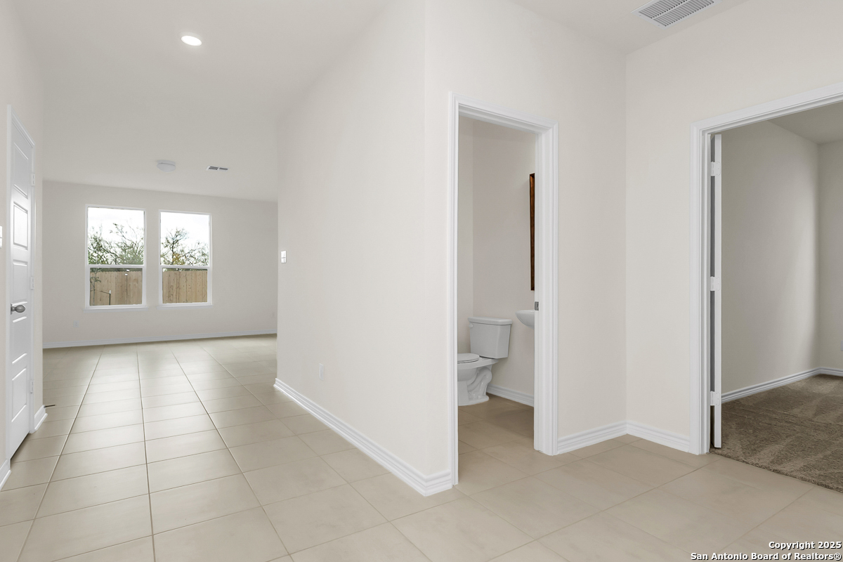 Step into comfort with this thoughtfully designed home featuring 9-ft. first floor ceilings that create a bright, open feel. The kitchen boasts Whirlpool stainless steel appliances, Woodmont Cody 42-in. upper cabinets, an extended breakfast bar, and a sleek Moen faucet. The primary bath offers upgraded cabinets and a 42-in. garden tub/shower with elegant Daltile tile surround. Stylish details include a Carrara-style entry door, Kwikset Polo knob interior hardware, and Stella Vista ceramic tile flooring throughout the bathrooms, kitchen, and great room. Enjoy added peace of mind with a wireless security system. Outside, an automatic sprinkler system and fully sodded yard complete the package.