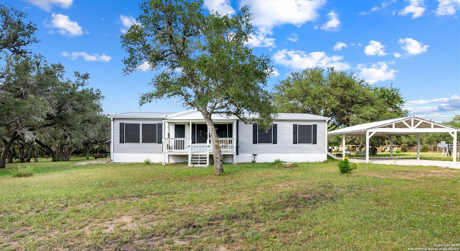Step into comfort and convenience at 5218 N Business 181 in Beeville, TX. Built in 2022, this beautifully maintained manufactured home blends modern features with the charm of country living. Offering 3 spacious bedrooms and 2 full bathrooms across 1,680 sq. ft., the open-concept layout is perfect for easy living and entertaining. At the heart of the home is a stylish kitchen featuring a large center island that serves as both prep space and casual dining. Stainless steel appliances, laminate flooring, and a walk-in pantry with a rustic barn-style sliding door add thoughtful touches. The primary suite is a private retreat with a soaking tub, separate shower, and generous storage. A large utility room enhances everyday function with ample counter space and cabinetry. Step outside to 3.6 scenic acres with mature live oak trees and room to roam. The property is partially fenced and includes a cross-fenced area, ideal for animals. Relax on the covered back patio and enjoy peaceful views and visiting deer. A 24x24 detached garage/workshop with a new metal roof offers space for storage or projects, while a 25x25 metal-roofed carport with gutters provides additional covered parking. Other highlights include: *Gated entry with caliche driveway *20x8 Conex container for extra storage *Water softener system in well house *Leaf Filter guttering on the home *Solar Window Screens to beat the Texas heat This home qualifies for FHA and VA financing and is conveniently located just off N Business 181 -close to Beeville's schools, shopping, and dining. Don't miss this opportunity to enjoy peaceful, spacious living with modern comforts.