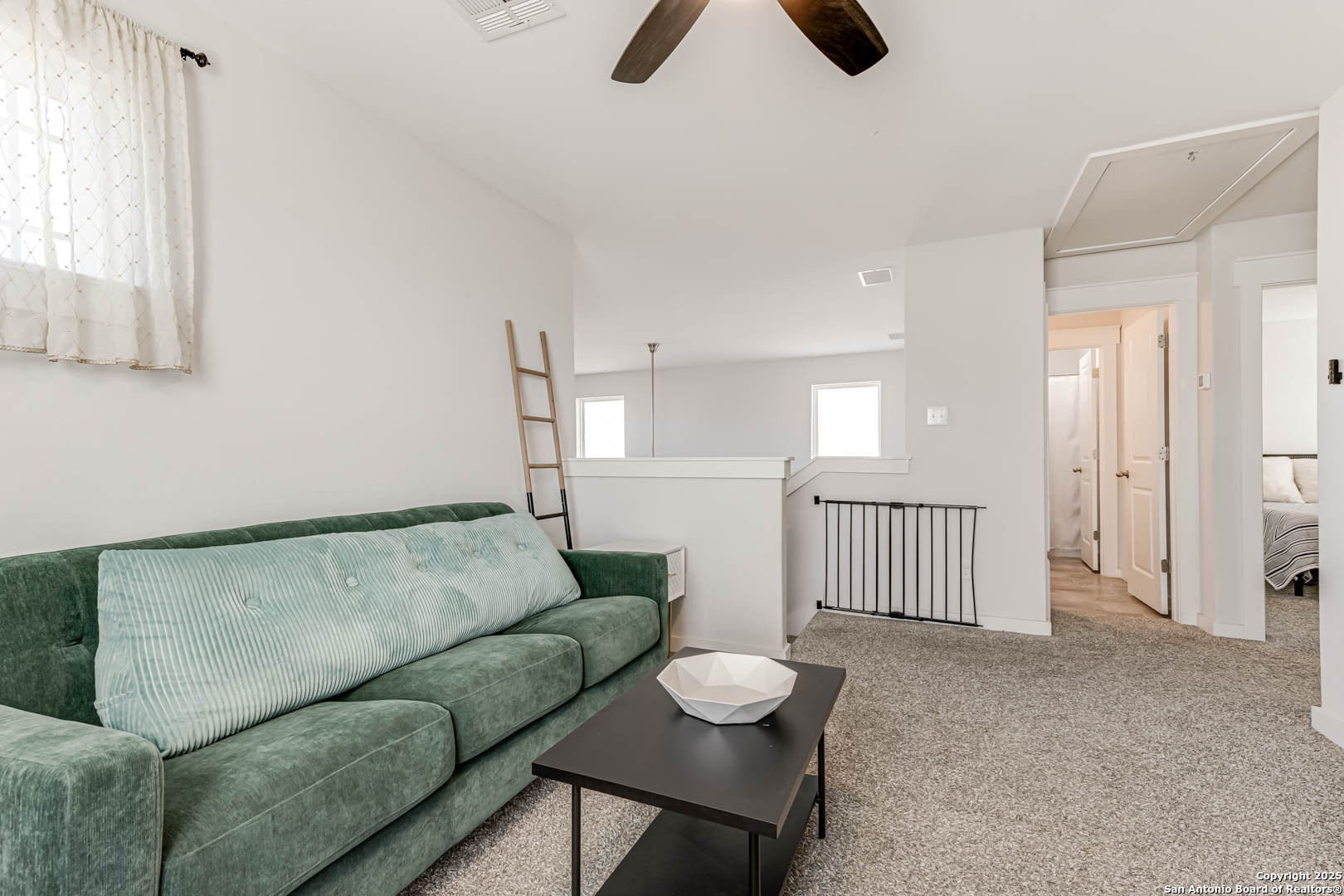 Welcome home to this cute-as-a-button gem that perfectly blends style, space, and location! This 3-bedroom, 2.5-bath home features an open floorplan with soaring 18-foot ceilings in the living room, creating a bright and airy feel the moment you walk in. Durable yet stylish wood-look tile flooring flows through the main living areas, making everyday living both beautiful and low-maintenance. The downstairs primary suite offers privacy and comfort and includes a sitting window, creating a cozy space to relax or unwind, while two additional bedrooms upstairs are complemented by a versatile loft-ideal for a game room, home office, arts & crafts room, or play area. The kitchen is designed for gathering, complete with a center island and easy connection to the living and dining spaces. Step outside to a covered back patio and a perfectly sized backyard made for entertaining, featuring string lights that add the perfect touch of evening ambiance. Located in a quiet neighborhood with a city park right within the community, this home also offers unbeatable convenience with easy access to I-35, just 15 minutes from Schlitterbahn, 23 minutes to Randolph AFB, and close to restaurants, shopping, and entertainment. This home checks all the boxes-comfort, charm, and a fantastic location.