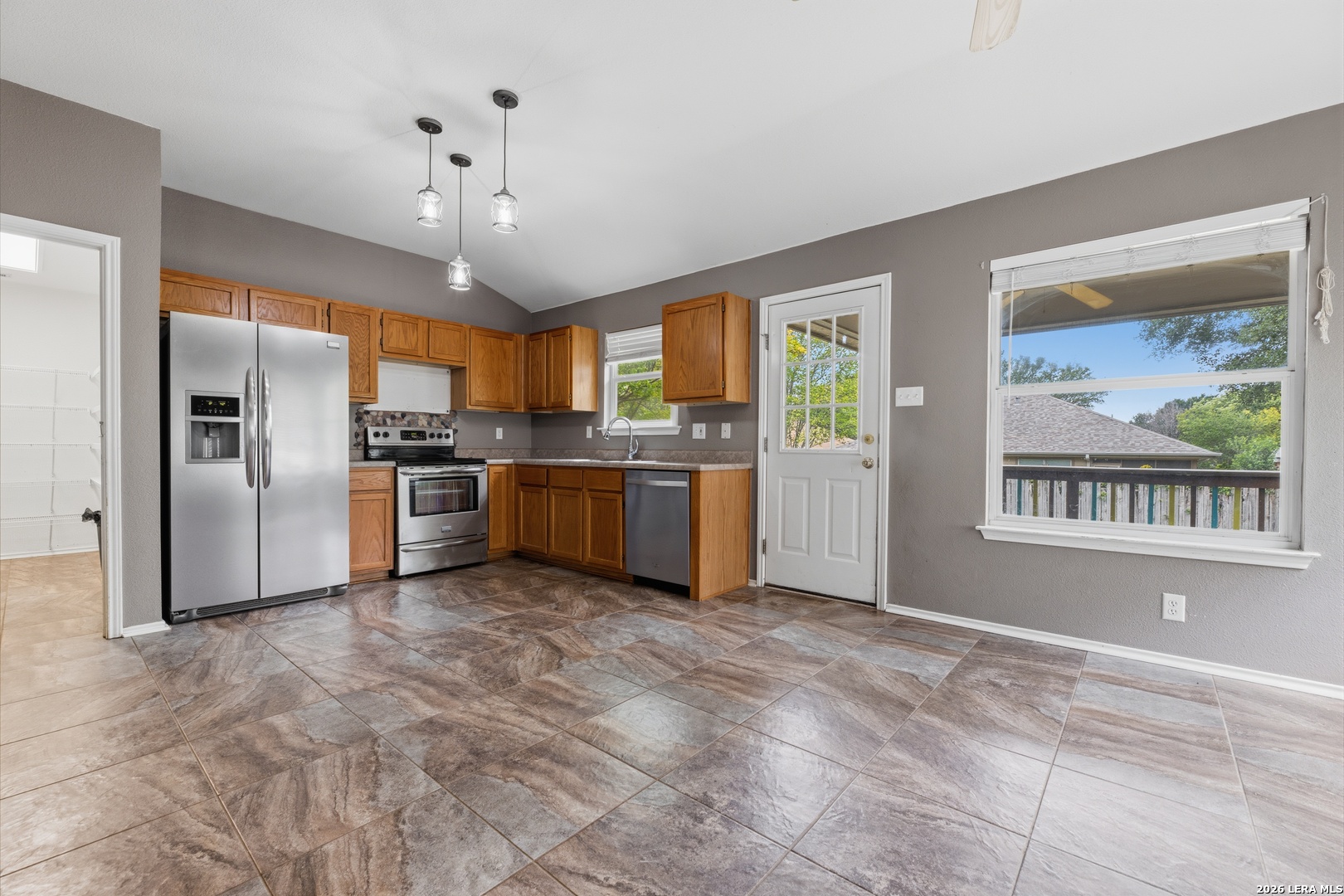Located in the established Pheasant Ridge subdivision, this well-maintained 3-bedroom, 2-bath home offers a comfortable layout with thoughtful updates and everyday convenience. The kitchen sits at the heart of the home and features a tile backsplash, smooth cooktop, and generous prep space, making it ideal for both daily cooking and casual entertaining. No carpet throughout creates a clean, modern feel while keeping maintenance simple. The primary suite provides a private retreat with a walk-in closet and ensuite bath featuring dual vanities. Secondary bedrooms are well-sized and offer flexibility for guests, a home office, or additional living space. Major system updates provide added peace of mind, including HVAC (2016), toilets (2018), roof (2022), water heater (2025), and garage door and opener (2025). Conveniently located within NEISD and just minutes from Loop 1604, I-35, shopping, dining, and everyday amenities, this home offers both accessibility and neighborhood charm. Walking distance to Stahl Elementary and Madison High School adds even more convenience for daily routines. Move-in ready with key updates already completed-this is one you'll want to see in person.