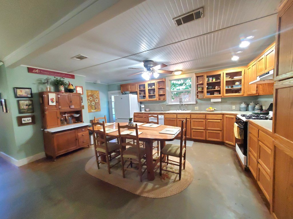 Historic charm meets modern updates! This 4 bedroom, 2 full bath is just a few blocks from the Mason square! Original 1920's Victorian cottage house welcomes you home with front inset covered porch, original wood floors in front 3 bedrooms and high beaded-board ceilings. Original front foyer has built-in antique wardrobe and laundry room utilizes original kitchen cabinets. Modern addition features stained concrete floors, open concept (Living/dining/kitchen), tall ceilings, and split floor plan has primary bedroom and full bathroom on Northside of house. Kitchen french door exits to back, private covered deck- perfect for morning coffee! New gravel driveway curves to detached 2-car carport. Front yard gardens separated with pipe-fencing and garden gates- great for separation of pets, landscaping and gardens. Come see this one quick!