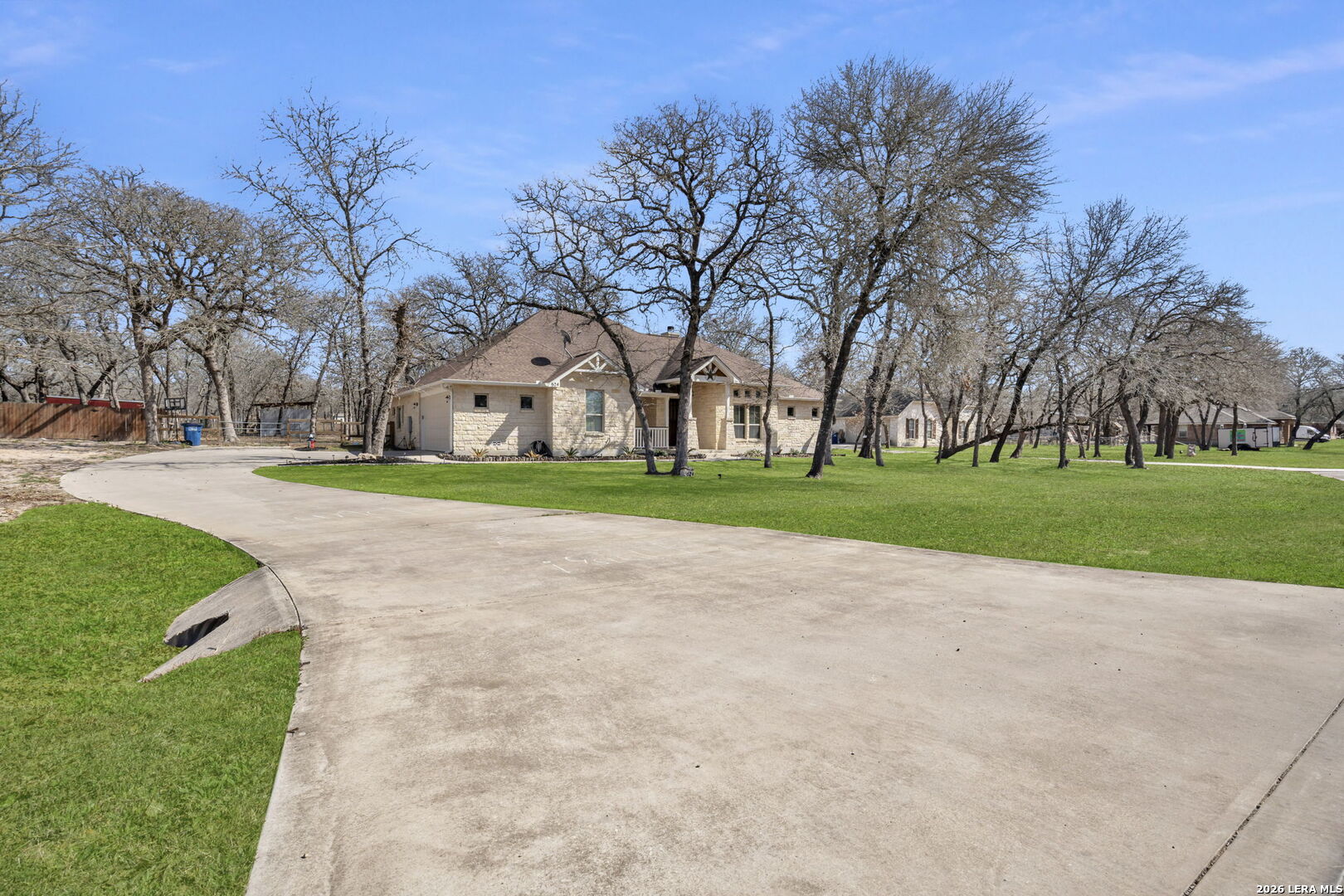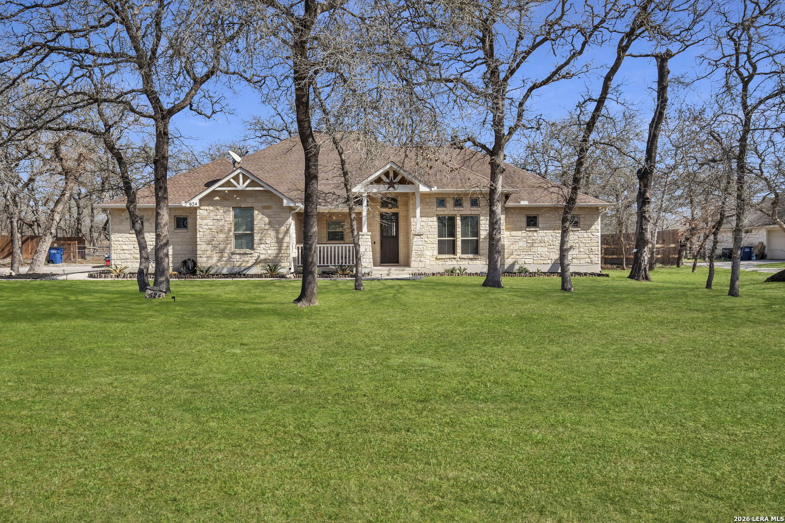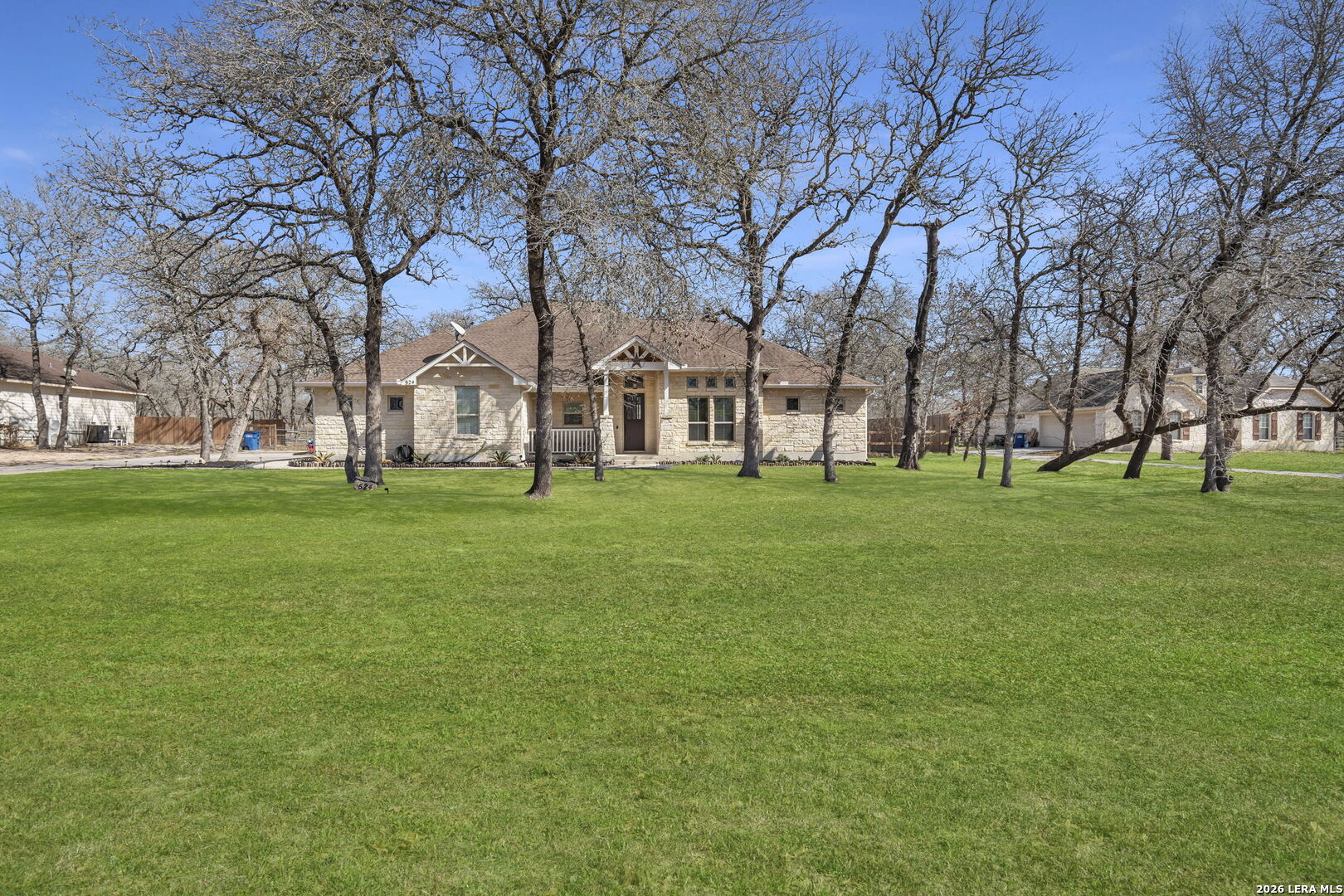 A true gem in Jacobs Acres, where space, serenity, and modern comfort come together effortlessly. Nestled on a serene 1-acre wooded lot in the highly desirable Jacobs Acres subdivision of La Vernia, this exceptional 2012 ranch-style residence offers the perfect blend of refined comfort and peaceful country living. With 4 spacious bedrooms, 2 and a haf baths, and 2,211 square feet of thoughtfully designed living space, this home invites you to slow down, breathe deeper, and truly enjoy where you live. From the moment you arrive, the beautiful stone exterior and inviting curb appeal set the tone. Inside, an open-concept layout creates seamless flow between the living, dining, and kitchen spaces, ideal for both everyday living and hosting unforgettable gatherings. The chef-inspired kitchen is the heart of the home, showcasing gleaming granite countertops, stainless steel appliances, rich cabinetry, and generous counter space that makes entertaining effortless. The spacious living area is anchored by a cozy wood-burning fireplace, creating a warm and welcoming ambiance perfect for quiet evenings or lively celebrations. Large windows frame peaceful views of the surrounding greenery, bringing the outdoors in and filling the home with natural light. Retreat to the private primary suite, designed for rest and relaxation, while the additional bedrooms offer flexibility for family, guests, or a home office. Every detail reflects comfort, functionality, and timeless style. Step outside to your own backyard sanctuary. The covered patio provides the perfect setting for morning coffee, evening sunsets, or weekend barbecues. The fully fenced yard offers privacy and space to roam, complete with raised garden beds for those who love to grow their own fresh herbs and vegetables, plus a convenient storage shed for tools and toys. This property offers the rare opportunity to enjoy a tranquil, country-like lifestyle while still being just minutes from La Vernia's schools, dining, and conveniences. Peaceful. Private. Practical. And absolutely beautiful.