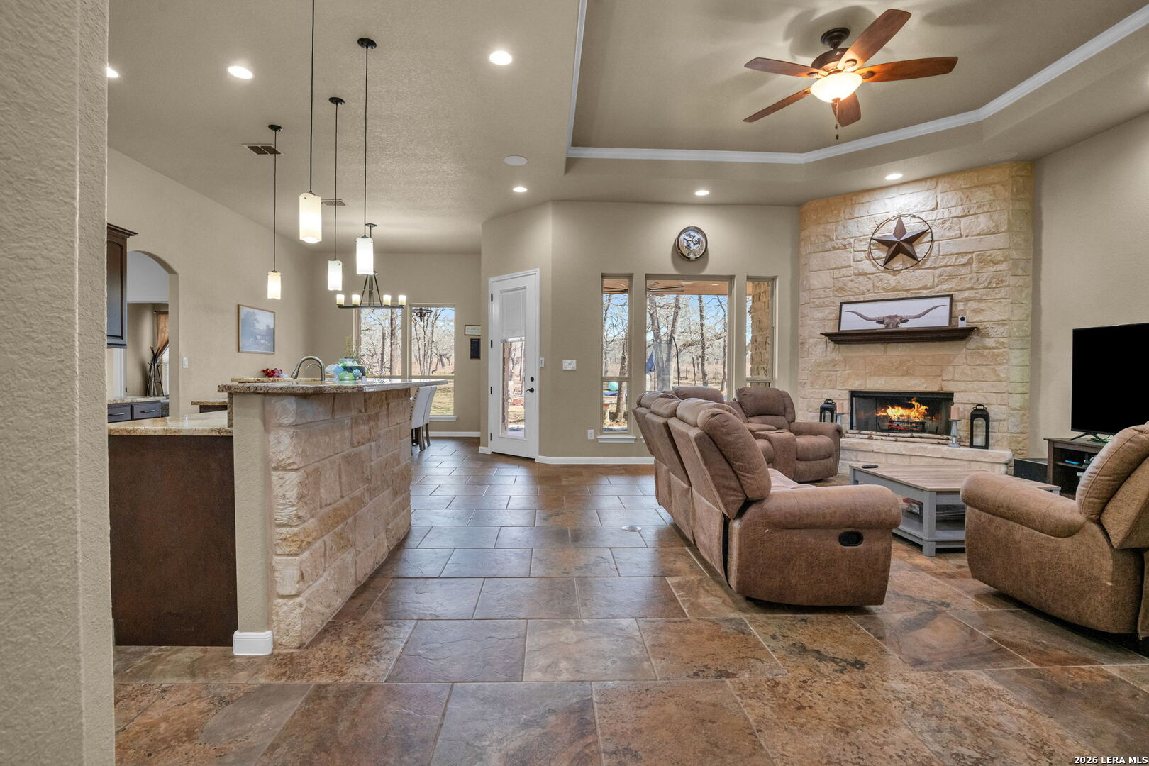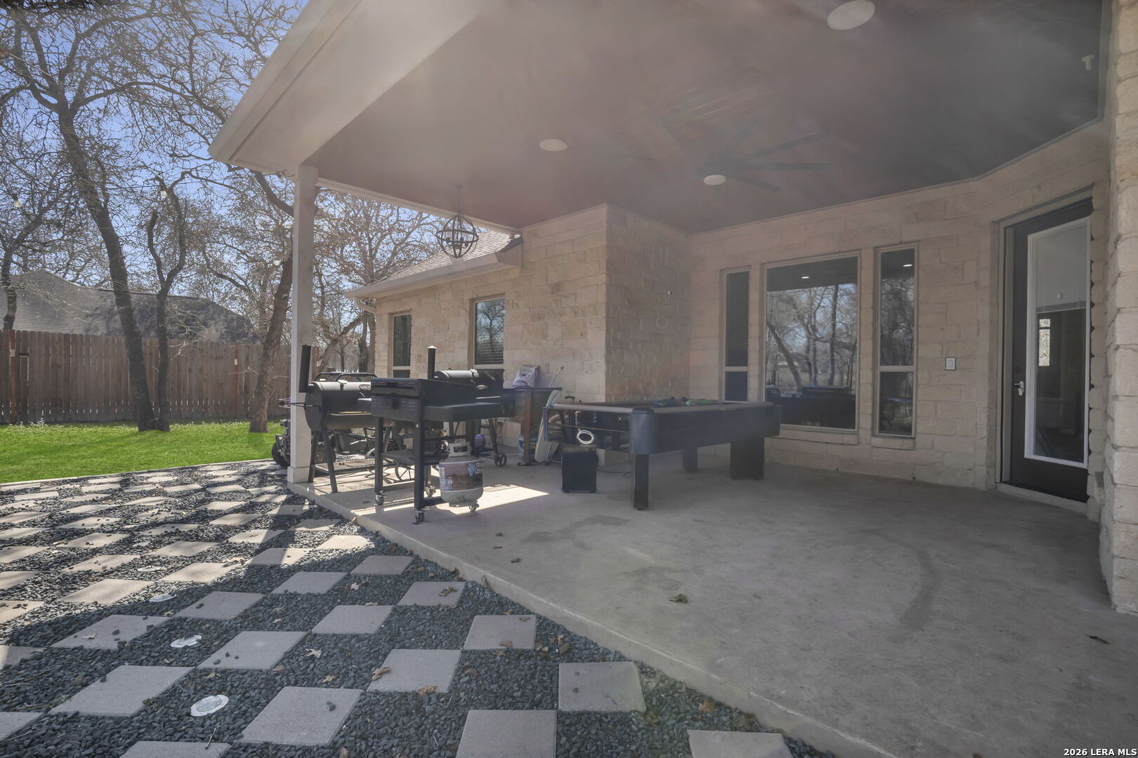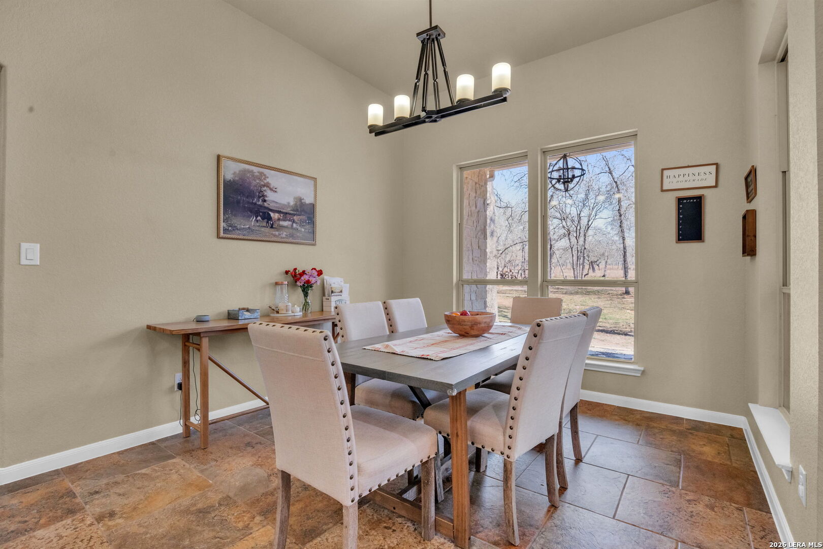A true gem in Jacobs Acres, where space, serenity, and modern comfort come together effortlessly. Nestled on a serene 1-acre wooded lot in the highly desirable Jacobs Acres subdivision of La Vernia, this exceptional 2012 ranch-style residence offers the perfect blend of refined comfort and peaceful country living. With 4 spacious bedrooms, 2 and a haf baths, and 2,211 square feet of thoughtfully designed living space, this home invites you to slow down, breathe deeper, and truly enjoy where you live. From the moment you arrive, the beautiful stone exterior and inviting curb appeal set the tone. Inside, an open-concept layout creates seamless flow between the living, dining, and kitchen spaces, ideal for both everyday living and hosting unforgettable gatherings. The chef-inspired kitchen is the heart of the home, showcasing gleaming granite countertops, stainless steel appliances, rich cabinetry, and generous counter space that makes entertaining effortless. The spacious living area is anchored by a cozy wood-burning fireplace, creating a warm and welcoming ambiance perfect for quiet evenings or lively celebrations. Large windows frame peaceful views of the surrounding greenery, bringing the outdoors in and filling the home with natural light. Retreat to the private primary suite, designed for rest and relaxation, while the additional bedrooms offer flexibility for family, guests, or a home office. Every detail reflects comfort, functionality, and timeless style. Step outside to your own backyard sanctuary. The covered patio provides the perfect setting for morning coffee, evening sunsets, or weekend barbecues. The fully fenced yard offers privacy and space to roam, complete with raised garden beds for those who love to grow their own fresh herbs and vegetables, plus a convenient storage shed for tools and toys. This property offers the rare opportunity to enjoy a tranquil, country-like lifestyle while still being just minutes from La Vernia's schools, dining, and conveniences. Peaceful. Private. Practical. And absolutely beautiful.