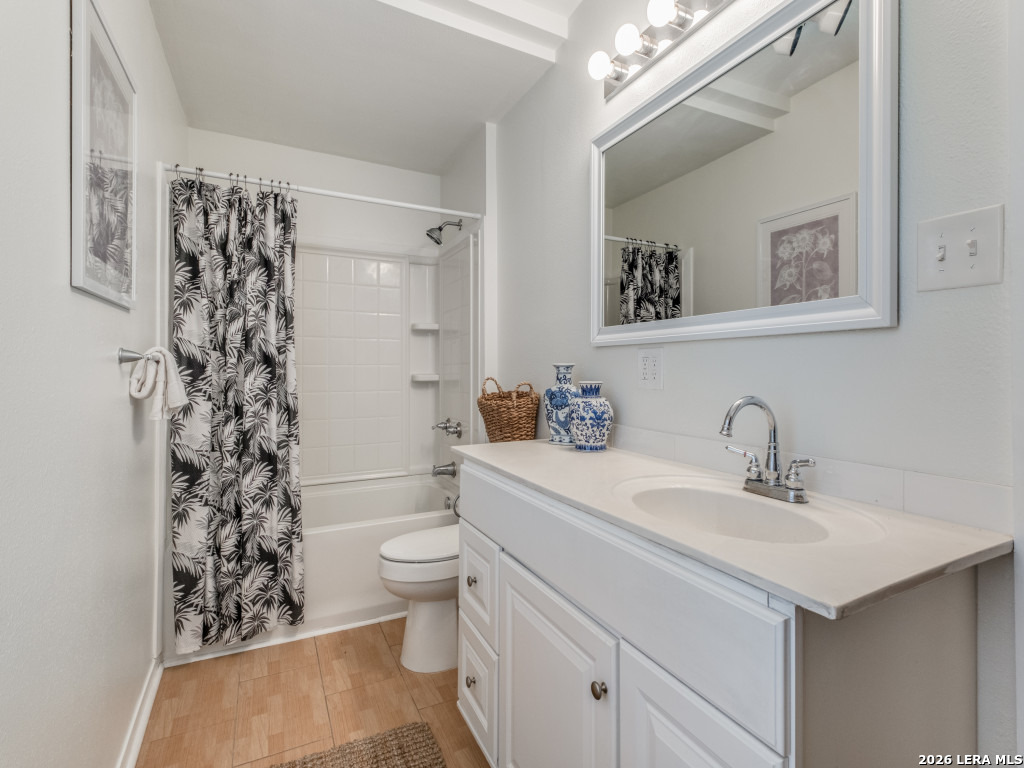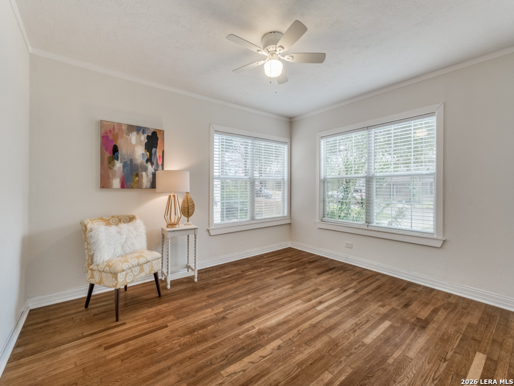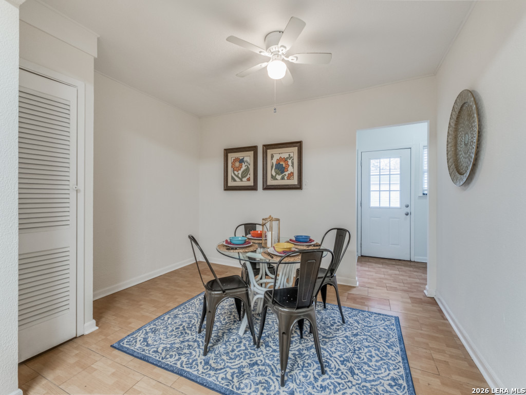 Ideally located, this charming single-story cottage offers approximately 1,500 square feet of well-designed living space. An expansive front deck sets a welcoming tone-perfect for relaxing outdoors and connecting with neighbors. Inside, the home features a comfortable living area, a dedicated dining space, and a spacious eat-in kitchen complete with gas cooking, ample countertop space, two pantries, and a sunny breakfast area. A conveniently located laundry room sits just off the kitchen. The primary suite is generously sized and includes an en-suite bath with an oversized walk-in shower. Two additional bedrooms are well proportioned and share a nicely appointed secondary bath. Outdoors, enjoy a private fenced backyard, along with a detached two-car garage offering excellent storage and an additional parking pad accommodating two more vehicles. 525 Abiso provides easy access to the Alamo Heights community pool, parks, shopping, and is zoned to the highly sought-after Alamo Heights ISD, including Cambridge Elementary.