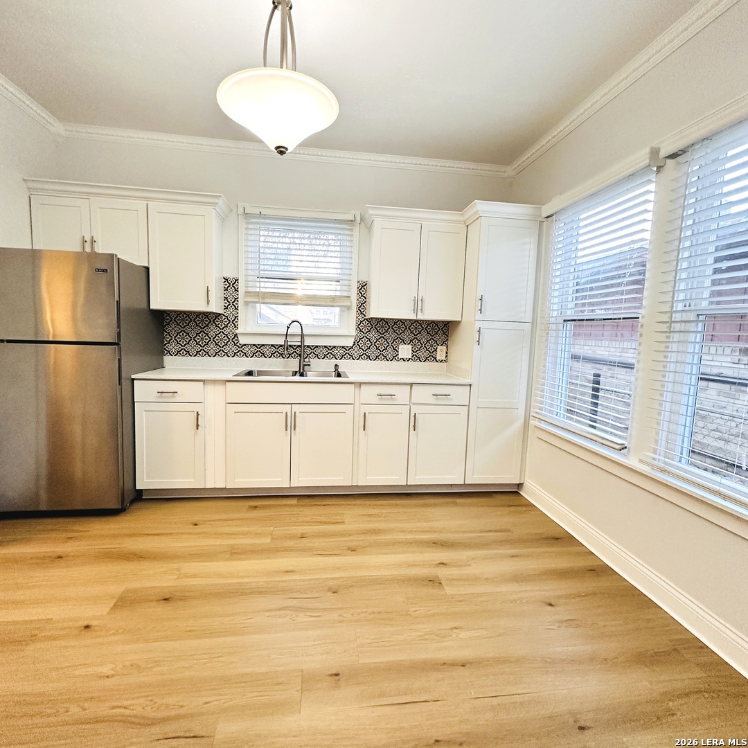 Nestled in the charming and historic King William Historic District, this beautifully renovated apartment offers both character and convenience. Enjoy a short stroll to the iconic San Antonio River Walk, or cross the nearby bridge to the vibrant Blue Star Arts Complex. Outdoor enthusiasts will love the proximity to King William Park and the scenic trails near Roosevelt Park. Located just minutes from the dining and entertainment along South Alamo Street, and a short drive to the USTA National Campus Southwest, this home is perfectly situated for both leisure and accessibility. The apartment has been thoughtfully renovated, featuring original hardwood floors, high ceilings, granite countertops, and stainless steel appliances. Additional perks include a complimentary in-unit washer and dryer, no water bill, and free covered parking. Set in a quiet, family-friendly neighborhood, this property offers the perfect blend of historic charm and modern comfort.