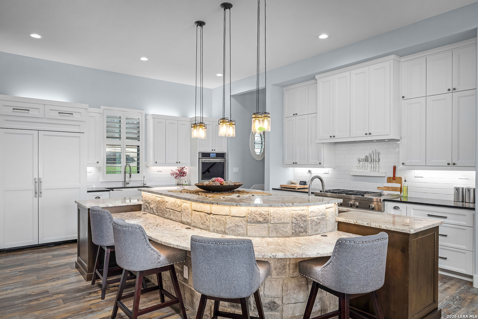 Custom Keith Wing family home with well planned layout and unmatched panoramic views. This home features 5 bedrooms, 4.5 baths and a spacious kitchen with Jenn-Air appliances open to the relaxing family room. Luxurious primary retreat with a whirlpool tub, walk in steam shower and advanced Helo sauna. Entertain in style with a private bar, home theater boasting a 130" screen and Vivitek 4-D projector., an outdoor patio with large rock fireplace, TV, full kitchen, heated pool and hot tub. Also includes private office, utility/craft room, pet quarters, and a flexible play room. Control4 Home Automation manages all home devices. Additionally, there is a spacious detached garage with great storage. This home offers unparalleled privacy and ample space for the whole family. Too many features to list, don't miss out on this great home.