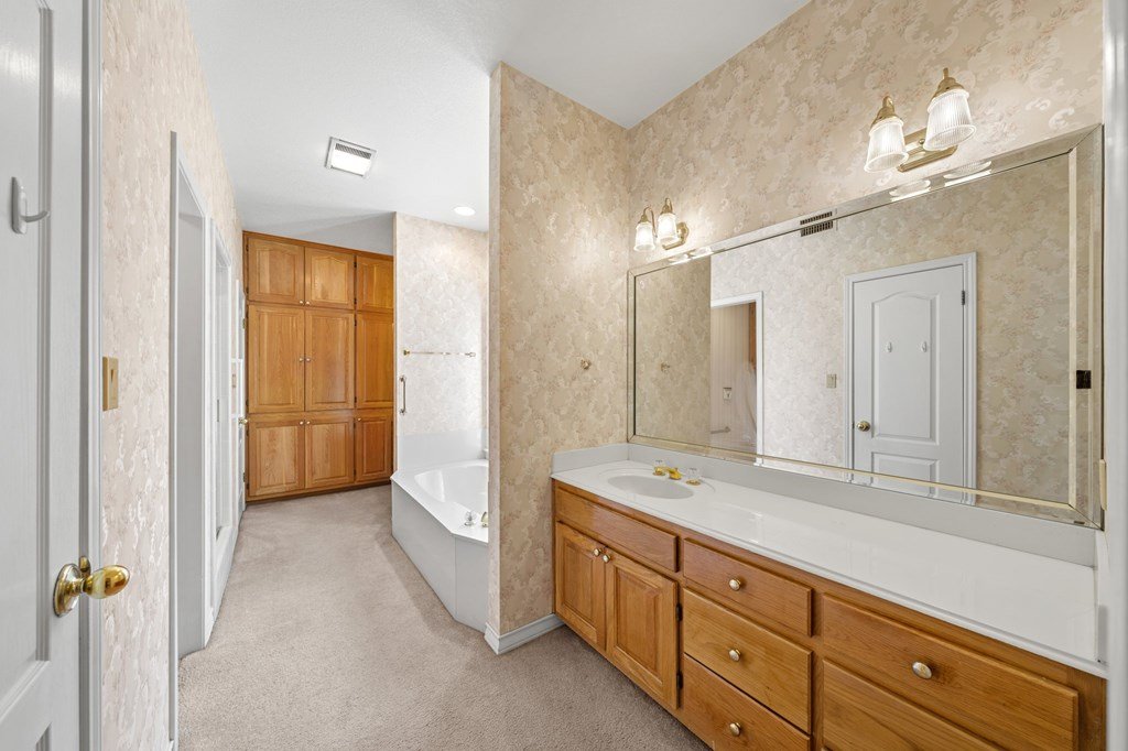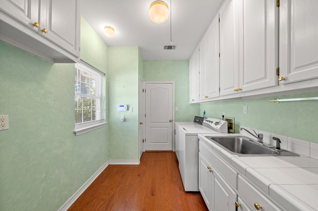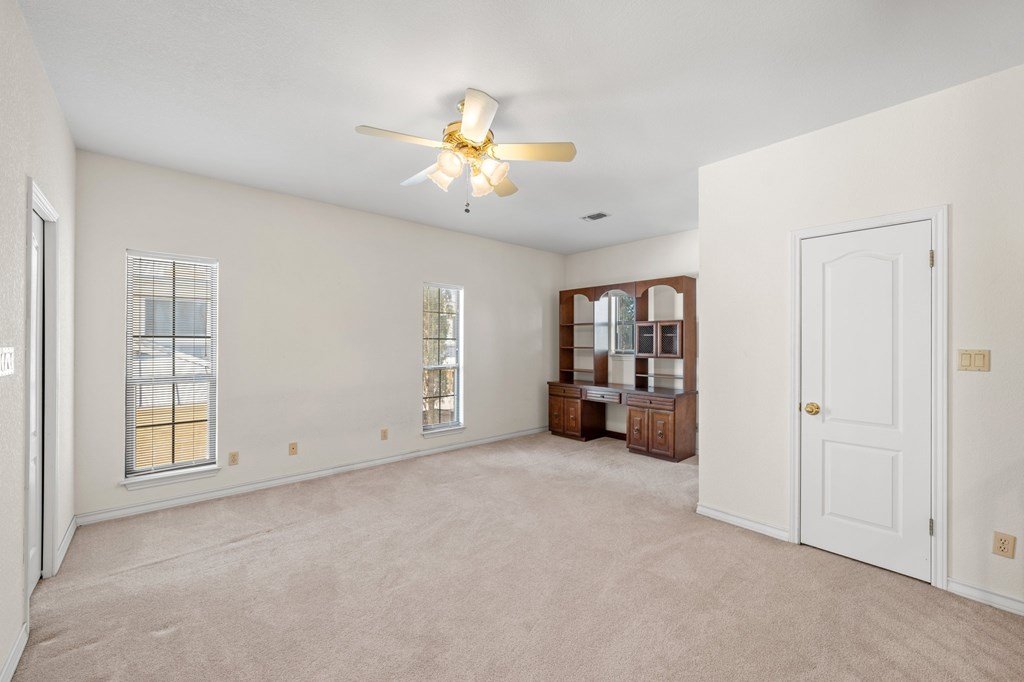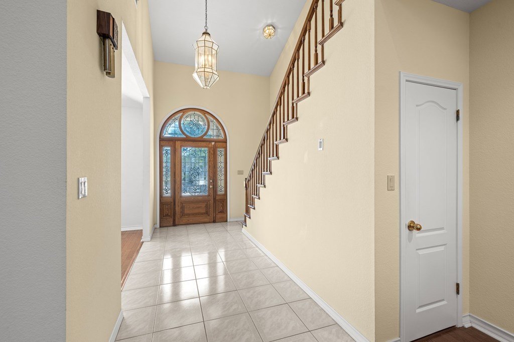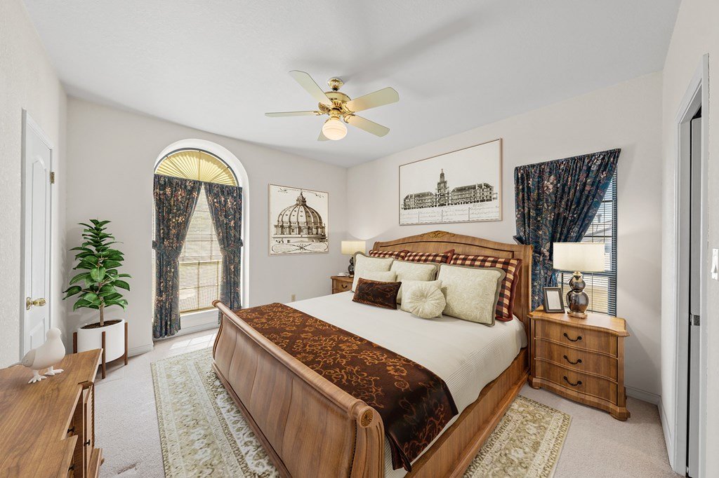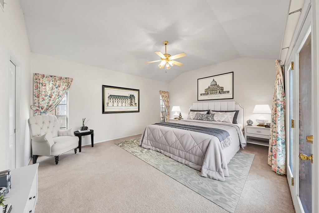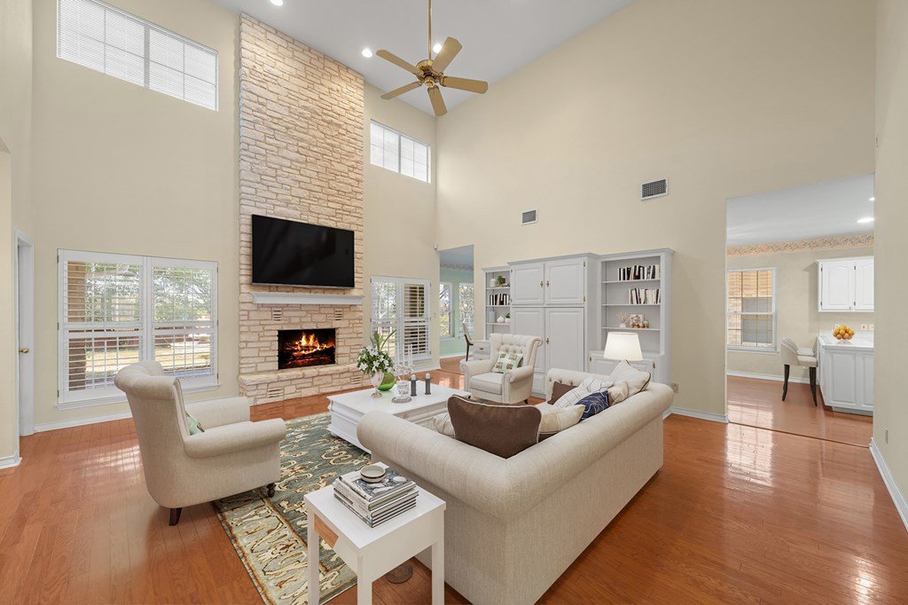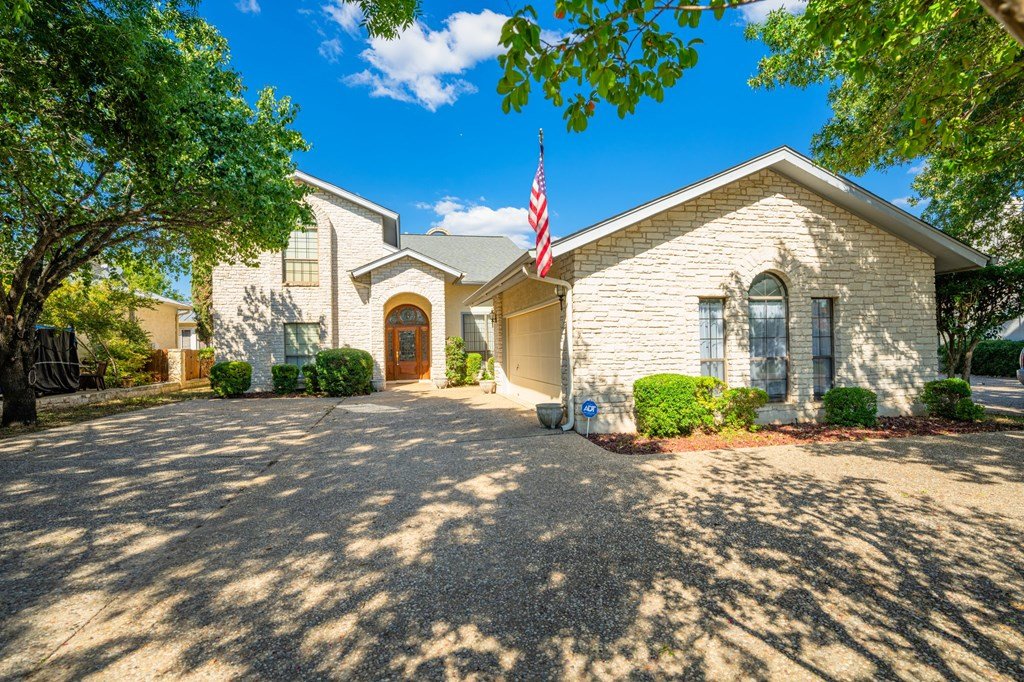 Move-In Ready & Priced to Sell Fast! This beautiful stately two-story home offers 3 spacious bedrooms, 3.5 bathrooms, and a freshly painted kitchen. Step into a bright, open foyer that leads to soaring cathedral ceilings in the great room, complete with a stunning stone fireplace. The open-concept layout flows seamlessly through breakfast and dining areas into the gourmet kitchen, which features a large island, custom cabinetry, tile countertops, and all appliances included. The luxurious master suite includes an oversized bath with a large garden tub, separate shower, and two generous walk-in closets. Sitting on a fully fenced -acre lot, the backyard offers a serene retreat with a covered patio and beautiful water fountain feature—perfect for relaxing or entertaining. The oversized side-entry garage even has room for your golf cart. Tucked away on a quiet, low-traffic street with easy access to Riverhill Country Club, this home combines privacy, comfort, and convenience. Don't miss out—this one is ready to go!