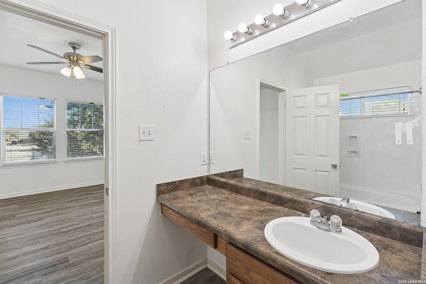 Welcome to this light-filled and inviting two-story home nestled in the desirable Whisperwind Subdivision! With 1,618 square feet of thoughtfully designed living space, this 3-bedroom, 2.5-bath home offers comfort, functionality, and a layout perfect for everyday living. The main floor features an open living area filled with natural light, along with a convenient half bath for guests. The kitchen and dining area flow seamlessly together, creating a welcoming space for gatherings, meal prep, and entertaining. Upstairs, you'll find all three bedrooms, including a spacious primary suite complete with its own private ensuite bath. Two additional bedrooms and a full bath provide flexibility for family, guests, or a home office setup. Step outside and enjoy one of this home's standout features - a beautifully covered patio complete with two ceiling fans, creating the perfect shaded retreat for relaxing evenings, entertaining guests, or enjoying your morning coffee. The patio connects conveniently to the detached converted garage, offering both functionality and a unique courtyard-style feel to the backyard space. Located just minutes from shopping, dining, schools, and quick access to I-35, this home offers the perfect blend of neighborhood charm and everyday convenience. Don't miss your opportunity to own in the heart of New Braunfels!