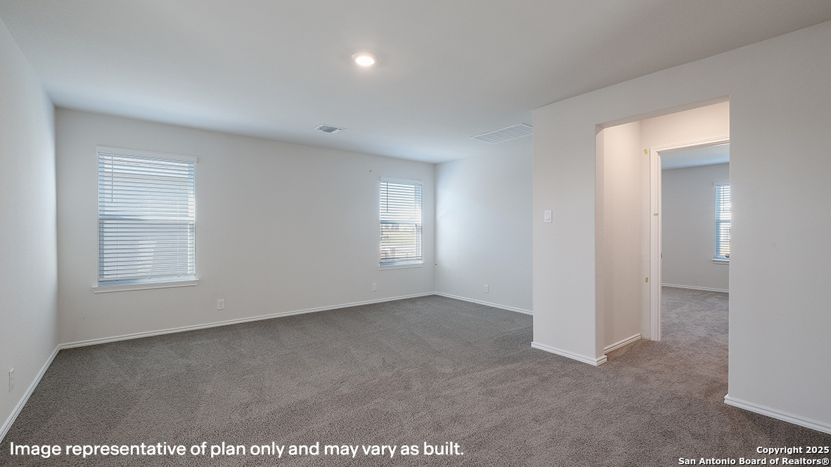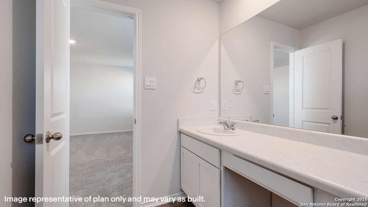 Welcome to The Wolters, a stunning two-story home featured in our Riverstone at Westpointe community in San Antonio, TX. This floor plan offers 3 classic front exteriors, a 1-car garage, and a full yard landscaping and irrigation package, ensuring your home looks its best every single day. Inside this 4 bedroom, 3 bathroom home, you'll find 2530 square feet of open-concept living. A inviting from porch and foyer leads to a blended living room, kitchen and dining area, perfect for entertaining and every day living. Your kitchen includes quartz counter tops, stainless steel appliances and shaker style cabinetry. The corner pantry is spacious and includes plenty of built-in shelving. A laundry room is also conveniently located off the kitchen and connect to the garage. With a secondary bedroom and full bath located off the front foyer, this home offers private space for out-of-town guests. Head up the wide staircase to find a versatile loft with storage space, the private main bedroom suite, two secluded secondary bedrooms with carpet flooring and walk-in closets and a third full bath. The private main bedroom is an oasis, featuring an attractive ensuite bathroom and oversized walk-in closet. Enjoy quality quartz vanity tops, a combined bath tub and shower and plenty of counter space. Additional features include sheet vinyl flooring in entry, living room, and all wet areas, quartz bathroom counter tops, and our HOME IS CONNECTED base package. Using one central hub that talks to all the devices in your home, you can control the lights, thermostat and locks, all from your cellular device.
