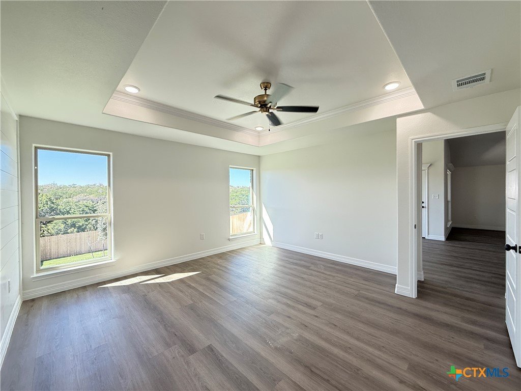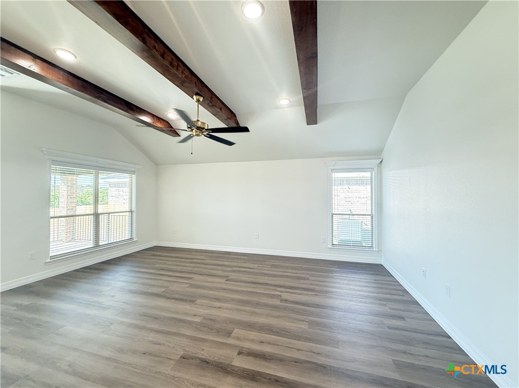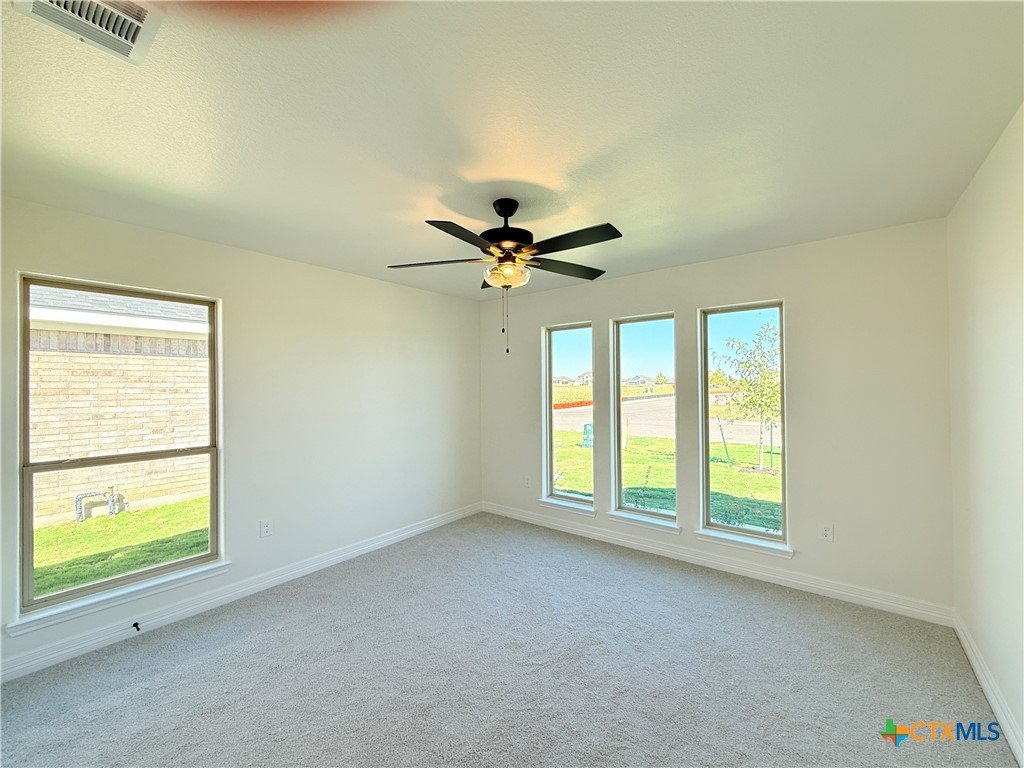 Discover refined living in this stunning Tippit built home situated in sought-after Three Creeks subdivision located close to Stillhouse Hollow Lake Dam, equidistant to the Temple/Belton or the Harker Heights/Killeen/Fort Hood areas. This 3 bedrooms, 2 baths home, on a cul-de-sac lot bordering on an eye-pleasing greenspace, presents 1,885 square feet of open-concept living. As you enter through the inviting entryway you are greeted by an expansive living area with raised, beam enhanced ceiling, flowing seamlessly into the chef-inspired kitchen featuring a central island with bar seating for casual meals, a walk-in pantry, and an adjacent dining space overlooking the verdant backyard and treetops beyond. Additional highlights include a split floorplan with a private primary suite, complete with a nicely appointed bath, tucked away at the back of the home, and secondary bedrooms and a full bath near the front of the home. A welcomed mud room links from the 2 car garage to the primary bedroom closet as well as the entry hallway. Outdoors, unwind on the covered patio enjoying the view of the greenery. Community amenities include bike and/or walking trails galore with plenty of benches for rest and relaxation, and/or enjoyment of the beautiful views, &and a community pavilion perfect for family and/or community get- togethers. Another welcomed perk: this area is part of the Belton Independent School District!