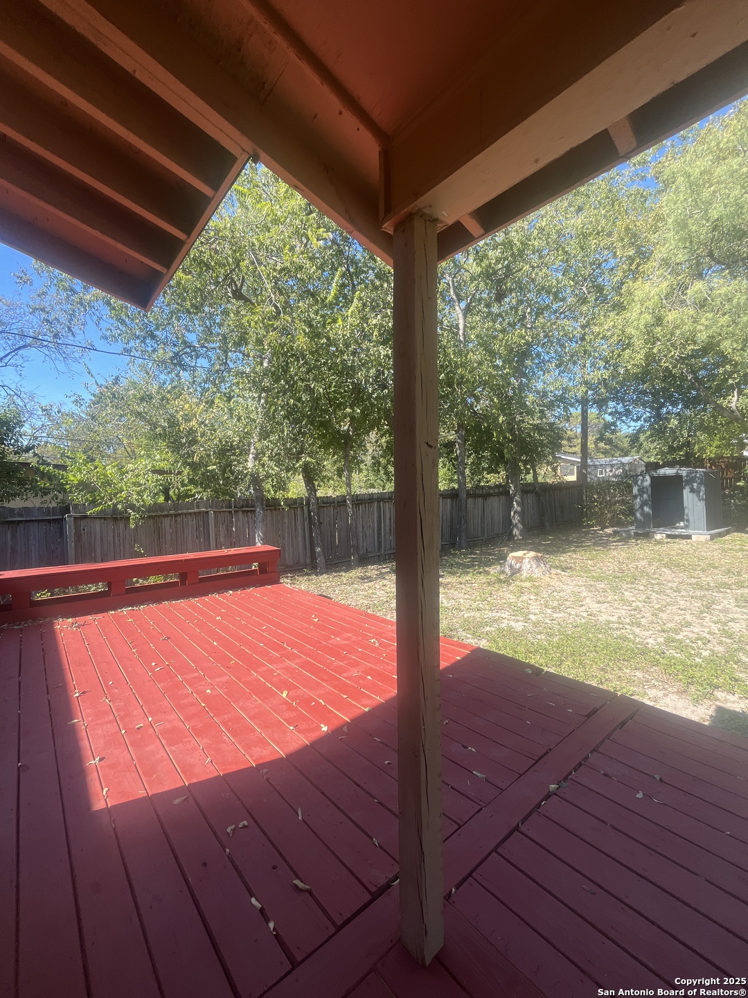 GREAT LOCATION (3 blocks from 410/I10 exchange) 3 - 1 1/2, stove, refrigerator, washer/dryer, central air/heat, on demand hot water system, soft water system, huge back yard w/storage unit - car port with storage closet, big deck (bench w/table) for entertaining in the back yard, hardwood floors, completely painted: all ceilings, walls, kitchen cabinets. One block from the highest rated elementary school in the SAISD. Five blocks to Wonderland Mall (on Fred. Road.). Perfect for medical professionals or families