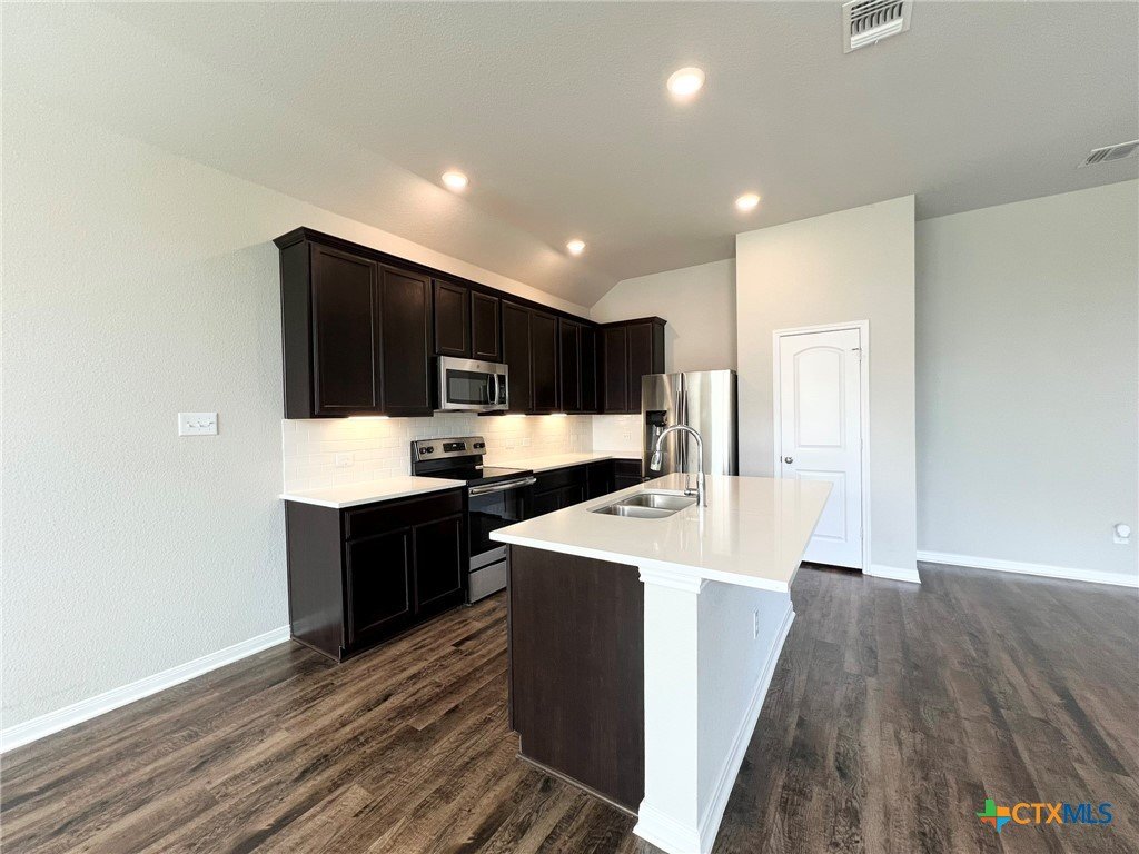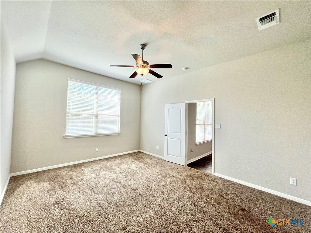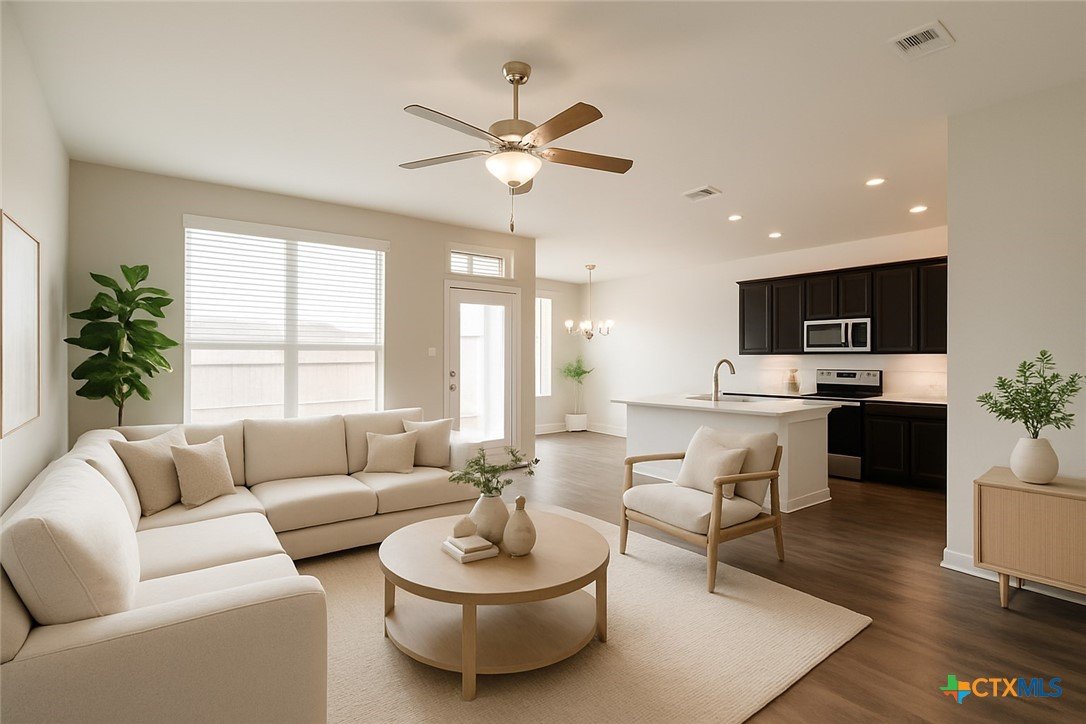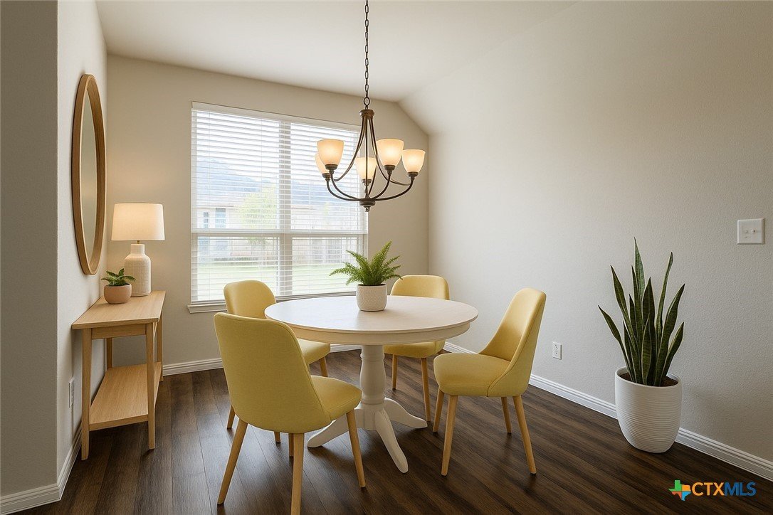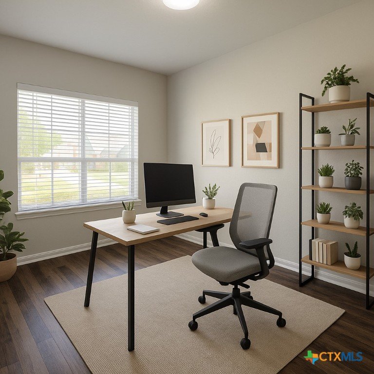 This move-in-ready home features crown molding, recessed lighting, and LVP floors throughout. Bright, spacious living room and a stylish kitchen with dark custom cabinets, granite countertops, stainless steel appliances, and a large eat-in area. The master suite includes a garden tub, walk-in shower, double vanity, and a large closet. Large Office plus two additional bedrooms offer ceiling fans and good storage. Enjoy a covered patio, large fenced yard, and sprinkler system. Easy to show!