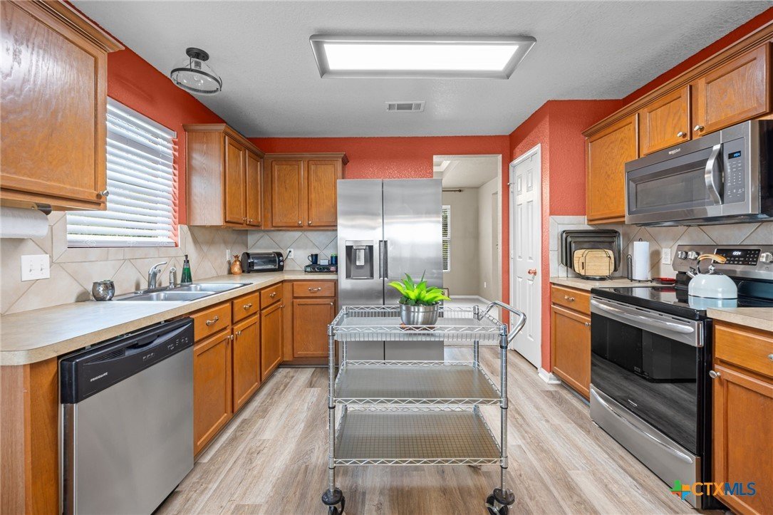 Welcome to 5318 Whistle Stop — a beautifully maintained 3-bedroom, 2-bath home in south Temple and Temple ISD, offering comfort, functionality, and thoughtful updates throughout. Built in 2004 and spanning 1,879 sq ft, this home features a formal dining with tray ceiling, formal living, and a spacious den with a wood-burning fireplace, creating the perfect layout for everyday life and entertaining. Enjoy a split floor plan for added privacy, along with vinyl plank flooring in the main living areas, updated fixtures, and new exterior paint (2022). The roof, including some of the sheathing, was replaced in 2022, providing peace of mind for years to come. Step outside to a privacy-fenced backyard ideal for relaxing or hosting friends on the weekend. Conveniently located near schools, shopping, and dining — this Temple address checks all the boxes.