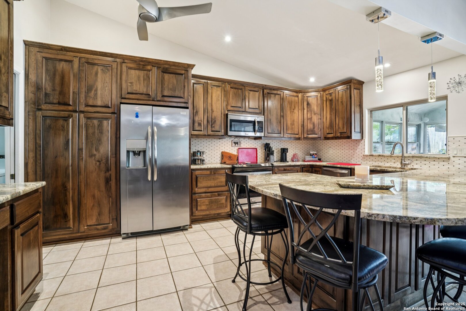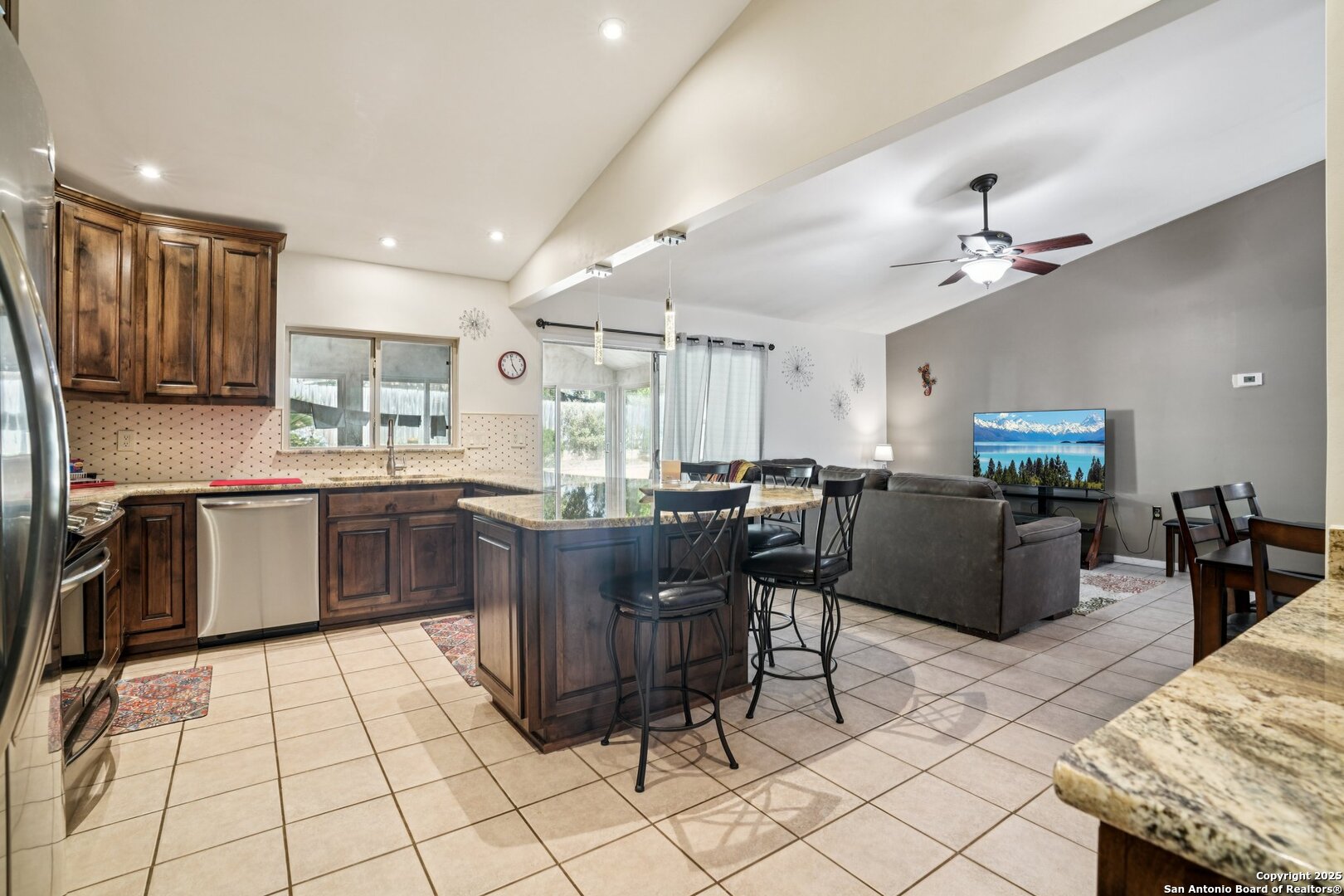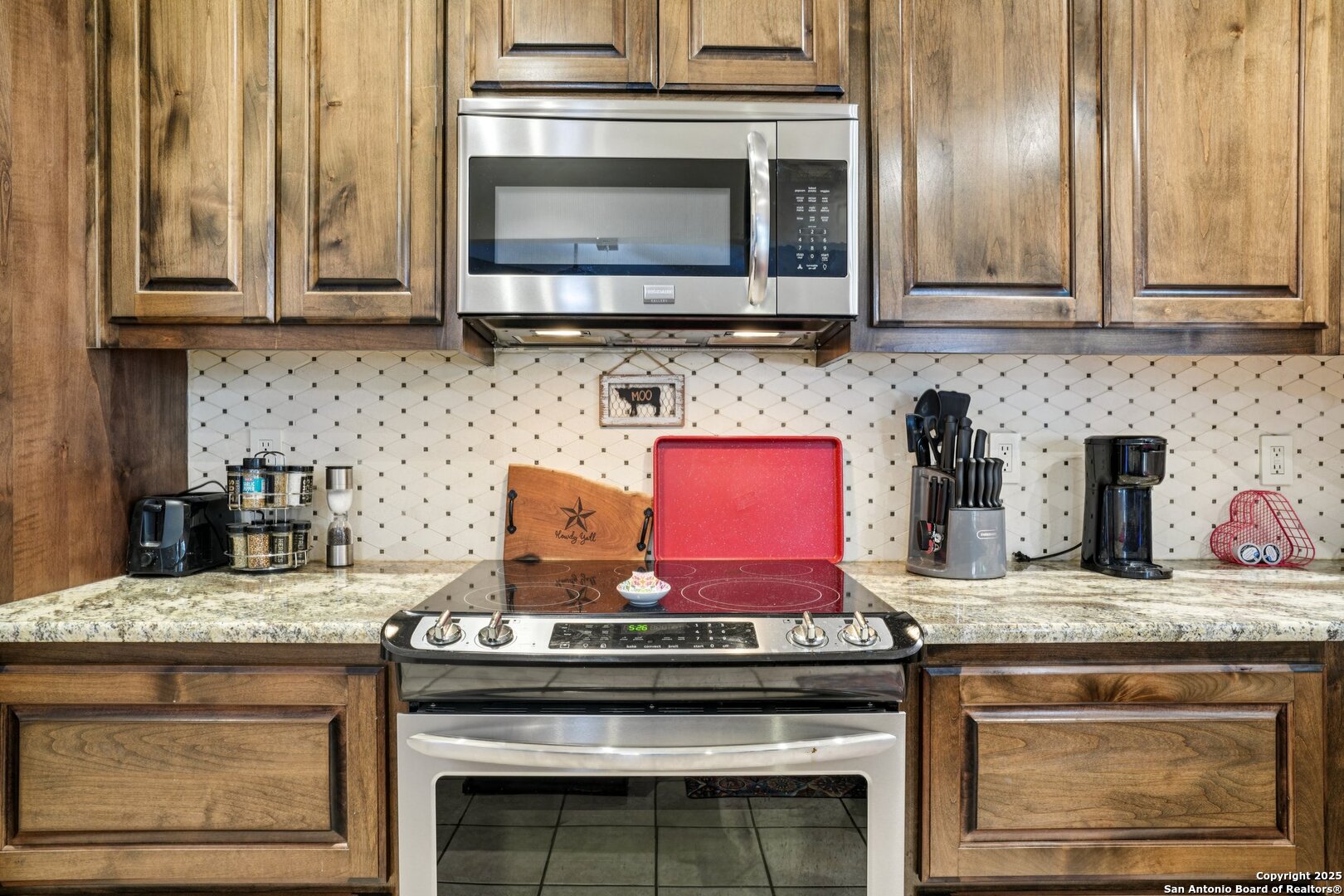 Stunning one-story home where prime location, thoughtful upgrades, and effortless living all come together. Positioned near I-35, Wurzbach Pkwy, 1604, and only 12 minutes from Downtown, you get the convenience you want without sacrificing comfort. This charming one-story is loaded with major upgrades, including the roof, water heater, furnace, HVAC, dishwasher, and stove/oven, giving you comfort and peace of mind. The chef-inspired kitchen showcases custom cabinets, a farmhouse sink, granite countertops, fresh paint, and added insulation to boost efficiency. Step outside and unwind in your private getaway with a heated in-ground pool and hot tub, both equipped with color-changing lights to match the mood. The sunroom serves as a versatile bonus space-ideal for a gym, bar area, or entertainment room overlooking the backyard oasis. Fully furnished and ready for short-term rentals, this property is also a prime investment opportunity for immediate income. Whether you're looking for a beautiful residence or a turnkey rental, this one checks every box. Come see it-you might fall in love faster than you expect!