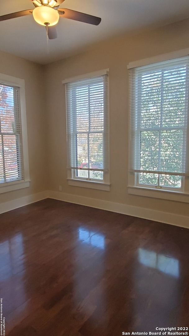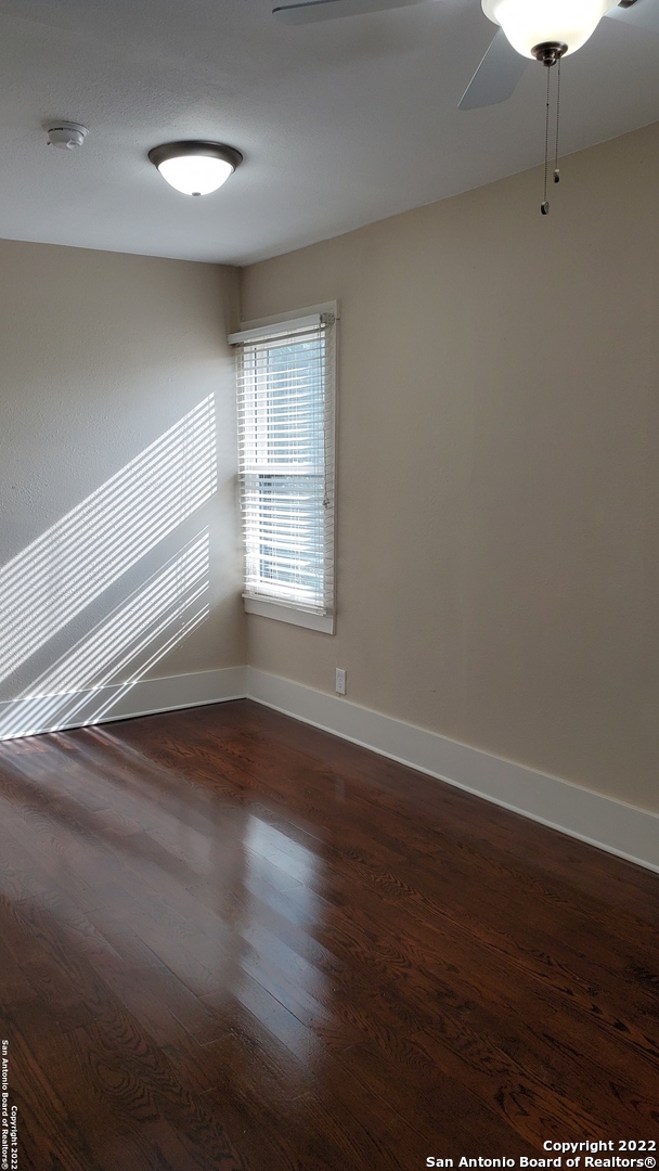 Just 5 minutes from the heart of downtown entertainment including the Pearl and Frost Bank Center. Located close to Fort Sam Houston with easy access to IH 35, 281 and Loop 410. This is an upstairs 2 bedroom/1bathroom apartment in a 4 plex. Recently renovated, with high ceilings, ceiling fans, wood floors, central heat/air, washer/dryer connections, side by side refrigerator with ice maker, dishwasher, 2 inch white Levolor blinds, solar screens and several energy efficient windows.
