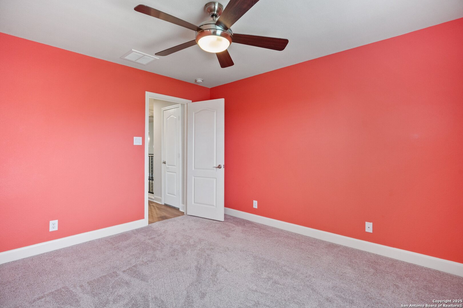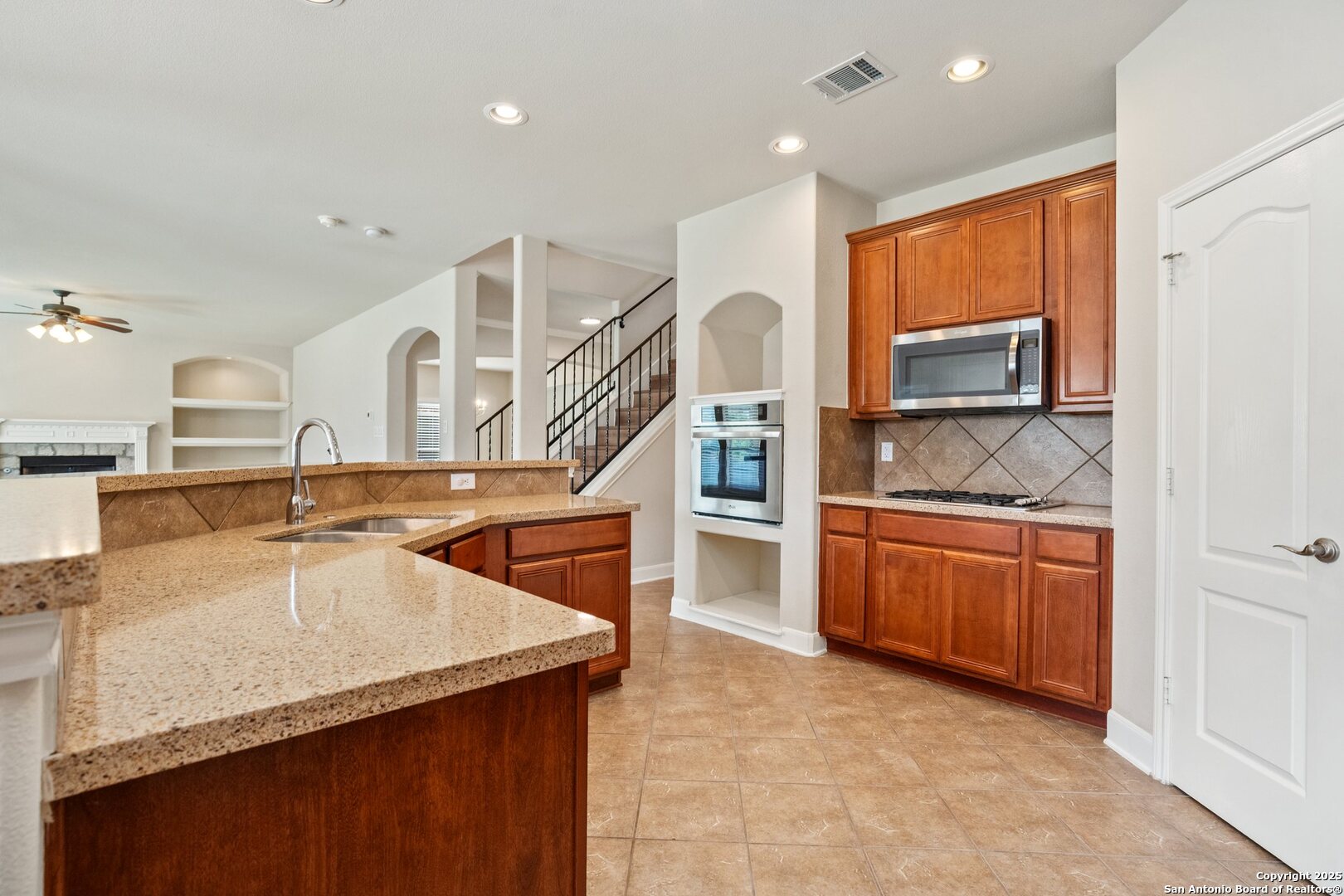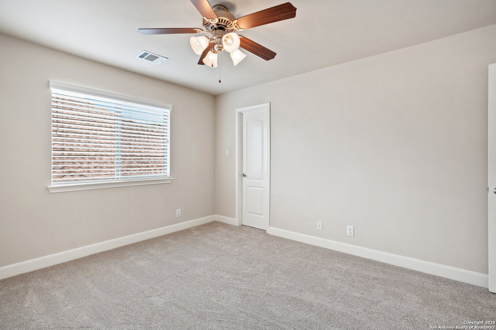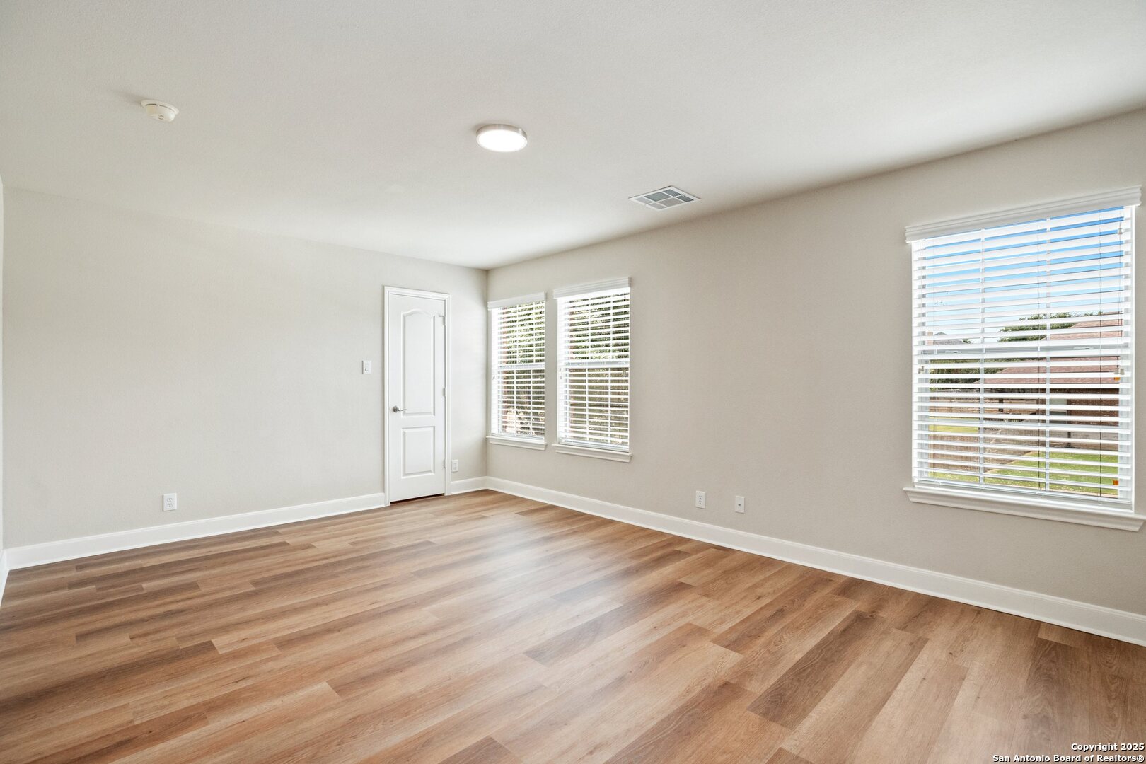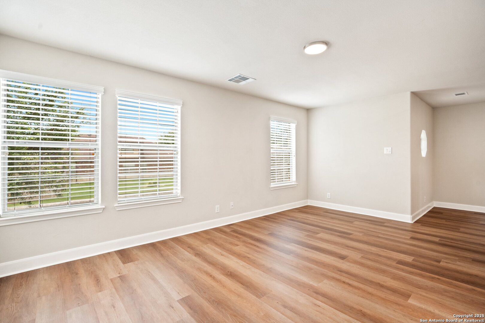 Spacious and move-in ready, this 2-story, 5-bedroom, 3-bath home is located in the popular Alamo Ranch community includes a first floor guest suite with full bath. Thoughtfully updated throughout, the home features brand new luxury vinyl plank flooring, fresh carpet, and a newly added exterior pergola. Major upgrades include a new roof, oven, and AC condenser-all installed in 2023. The property also includes a full sprinkler system and an owned 7.2kW solar panel setup for added energy efficiency. All bathrooms have brand new toilets. The light-filled, open-concept layout offers plenty of space for everyday living and entertaining. The first floor features a formal living and dining combo, as well as a second large living area with a fireplace and built-in shelving that flows into the kitchen and breakfast nook. The kitchen includes stainless steel appliances, gas cooking, and generous cabinetry for storage. A secondary bedroom on the first floor adds flexibility for guests or an office. Upstairs, the expansive primary suite includes a private bath with a soaking tub, walk-in shower, and generous closet space. Three additional secondary bedrooms, each with walk-in closets, surround a central loft-style living area that can be used as a game room or playroom. This Energy Star Qualified home has natural gas furnaces that perform well even during colder months. Ample storage throughout the home adds convenience. There is something for everyone in Alamo Ranch. Top-notch community amenities include a swimming pool, playground, tennis and basketball courts. Located just minutes from HEB, restaurants, this property is ready for its next chapter. Schedule your personal tour today!