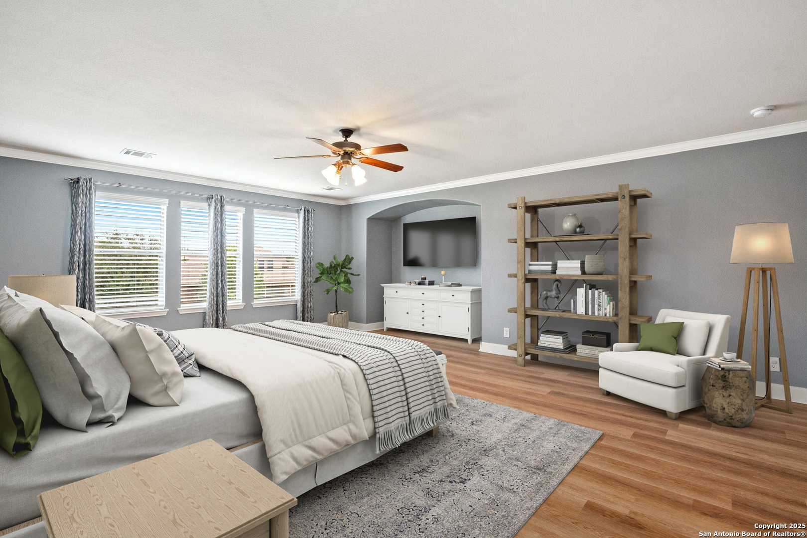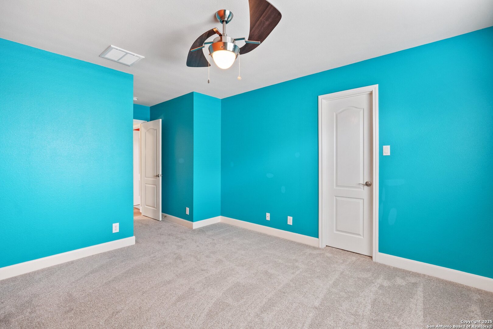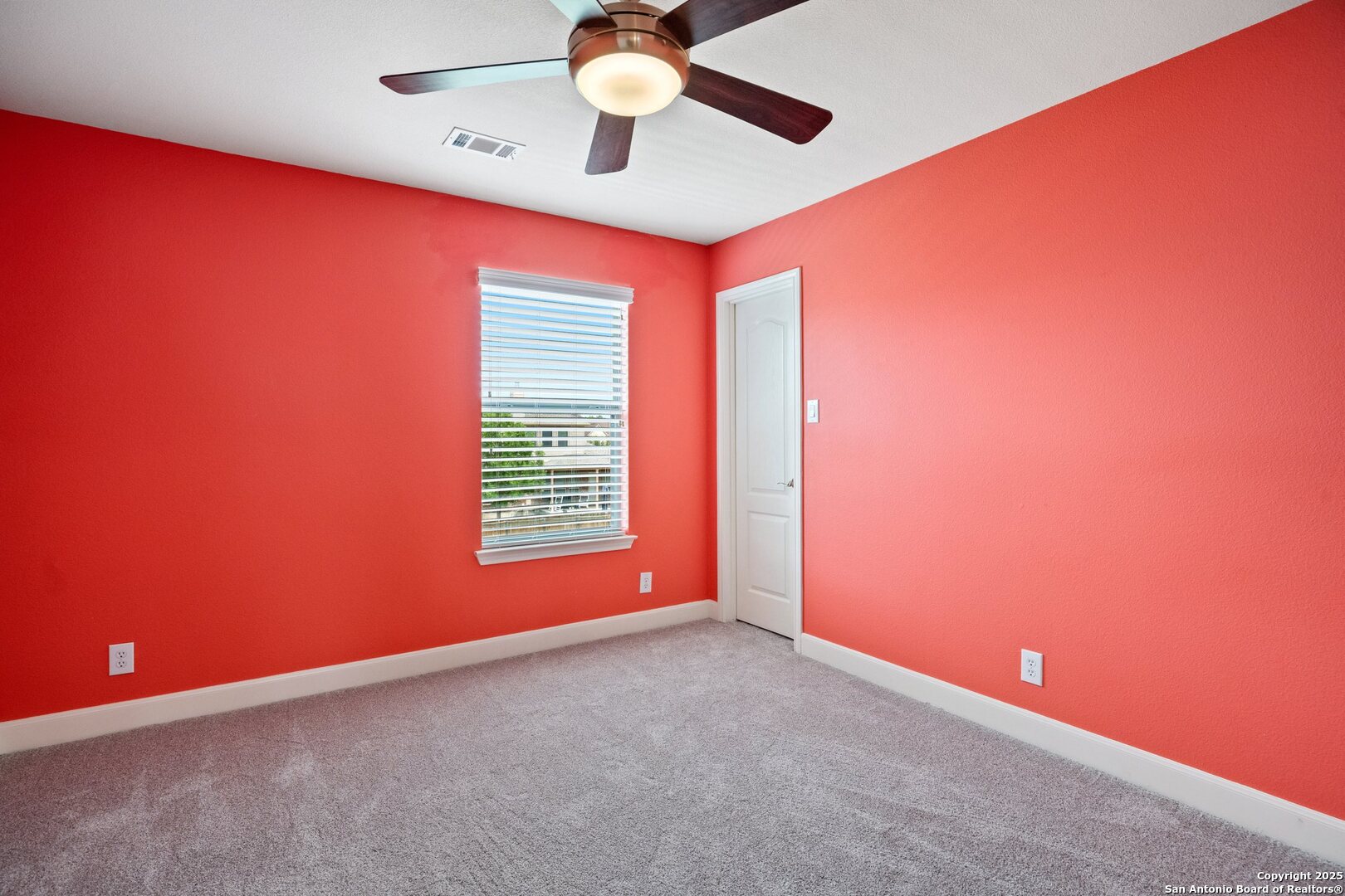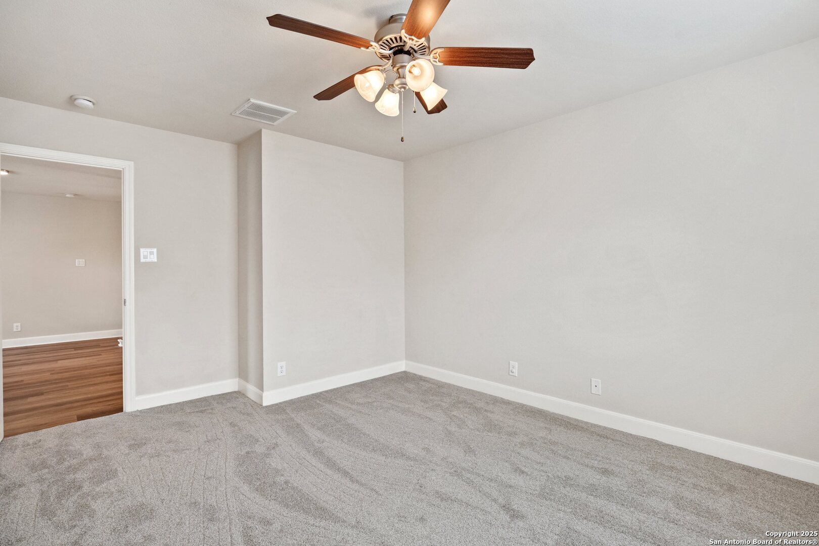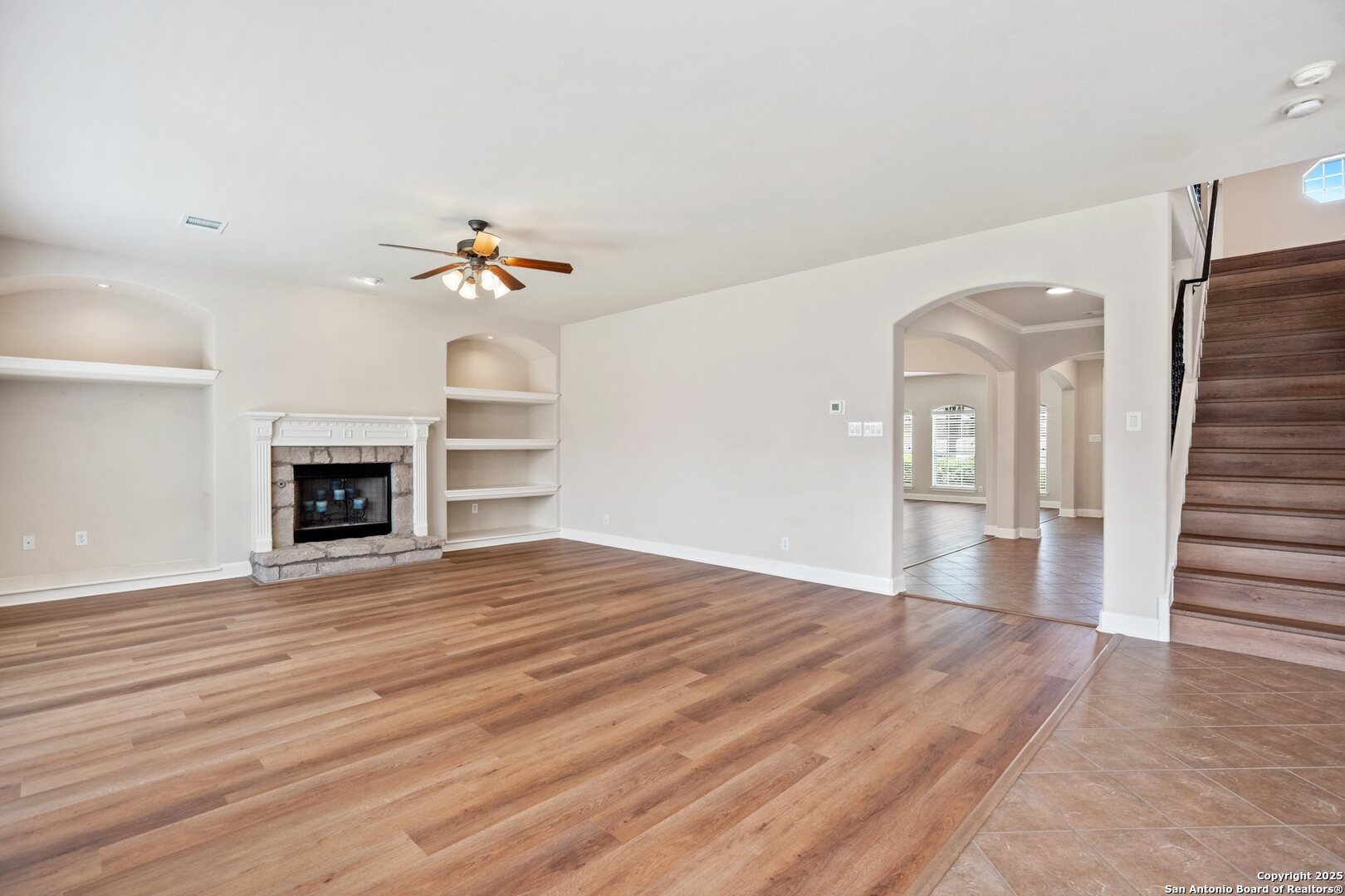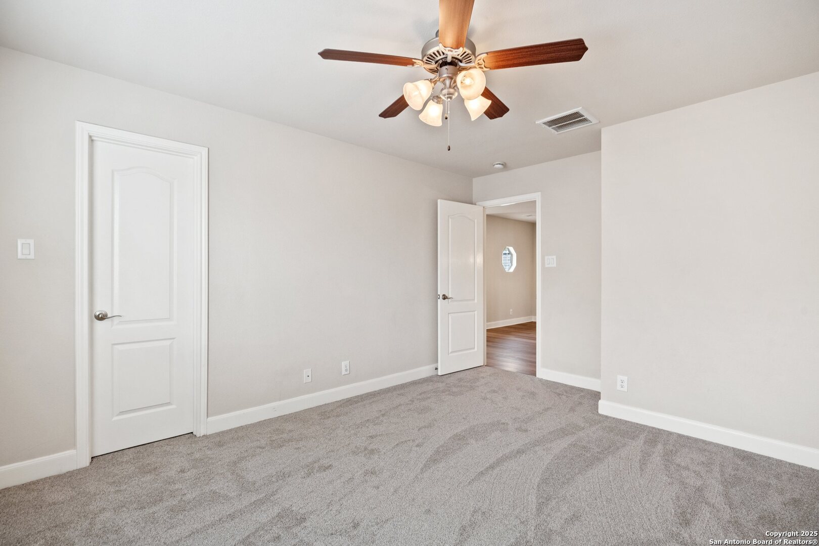 Spacious and move-in ready, this 2-story, 5-bedroom, 3-bath home is located in the popular Alamo Ranch community includes a first floor guest suite with full bath. Thoughtfully updated throughout, the home features brand new luxury vinyl plank flooring, fresh carpet, and a newly added exterior pergola. Major upgrades include a new roof, oven, and AC condenser-all installed in 2023. The property also includes a full sprinkler system and an owned 7.2kW solar panel setup for added energy efficiency. All bathrooms have brand new toilets. The light-filled, open-concept layout offers plenty of space for everyday living and entertaining. The first floor features a formal living and dining combo, as well as a second large living area with a fireplace and built-in shelving that flows into the kitchen and breakfast nook. The kitchen includes stainless steel appliances, gas cooking, and generous cabinetry for storage. A secondary bedroom on the first floor adds flexibility for guests or an office. Upstairs, the expansive primary suite includes a private bath with a soaking tub, walk-in shower, and generous closet space. Three additional secondary bedrooms, each with walk-in closets, surround a central loft-style living area that can be used as a game room or playroom. This Energy Star Qualified home has natural gas furnaces that perform well even during colder months. Ample storage throughout the home adds convenience. There is something for everyone in Alamo Ranch. Top-notch community amenities include a swimming pool, playground, tennis and basketball courts. Located just minutes from HEB, restaurants, this property is ready for its next chapter. Schedule your personal tour today!