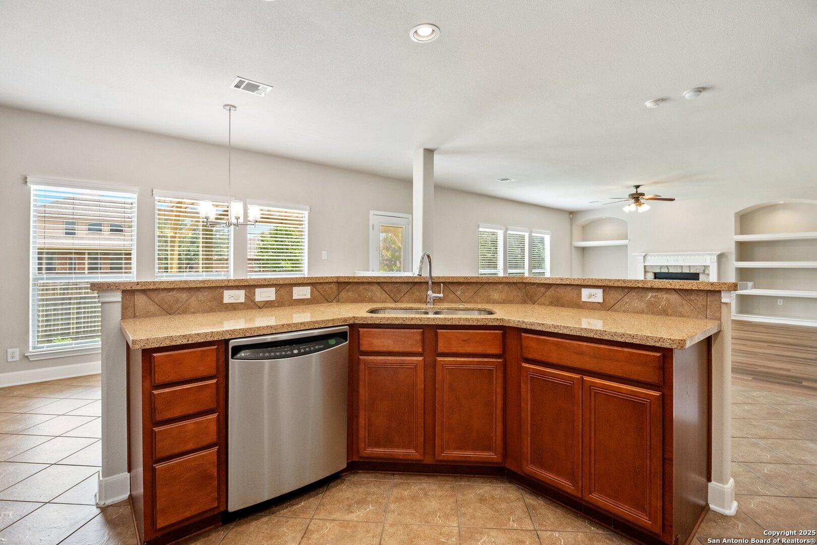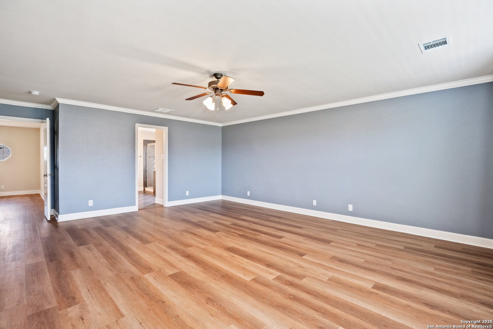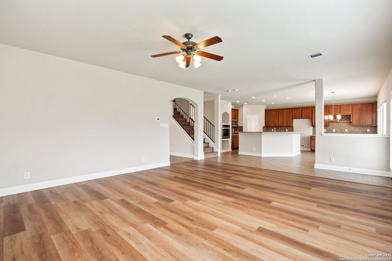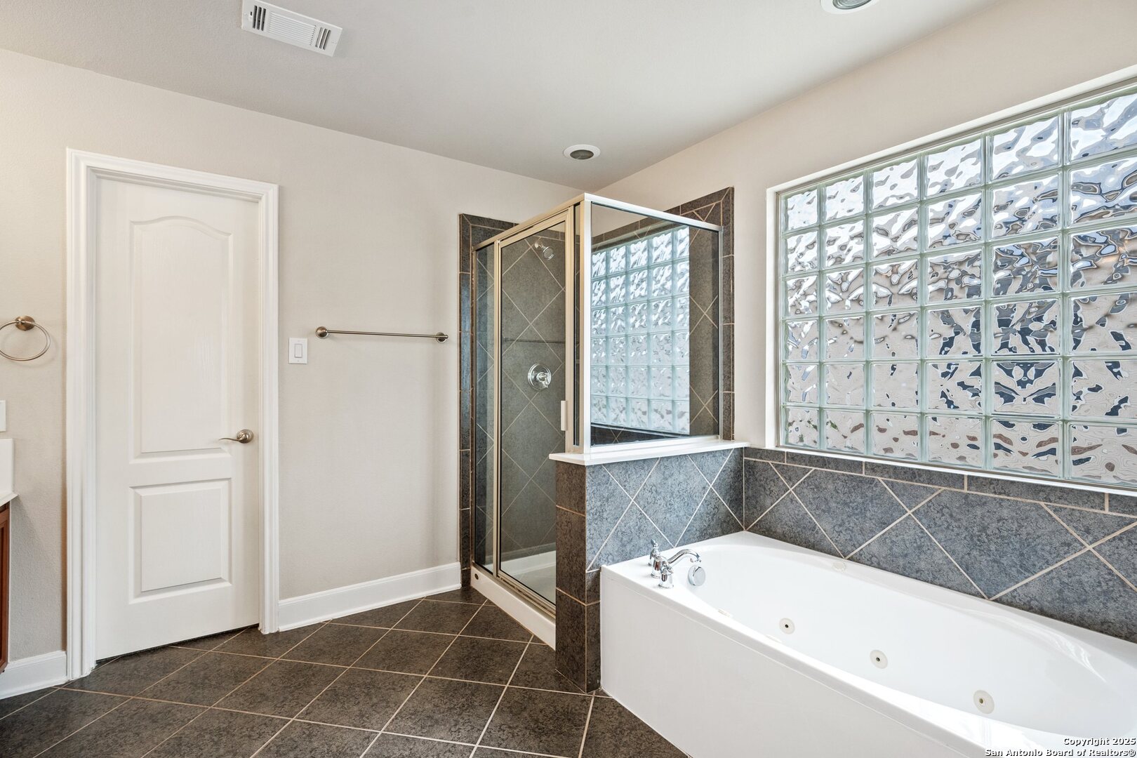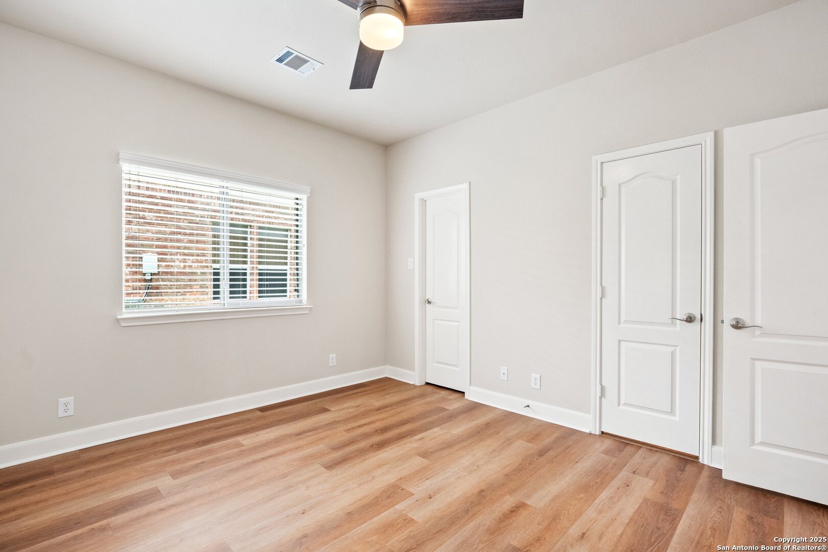 Spacious and move-in ready, this 2-story, 5-bedroom, 3-bath home is located in the popular Alamo Ranch community includes a first floor guest suite with full bath. Thoughtfully updated throughout, the home features brand new luxury vinyl plank flooring, fresh carpet, and a newly added exterior pergola. Major upgrades include a new roof, oven, and AC condenser-all installed in 2023. The property also includes a full sprinkler system and an owned 7.2kW solar panel setup for added energy efficiency. All bathrooms have brand new toilets. The light-filled, open-concept layout offers plenty of space for everyday living and entertaining. The first floor features a formal living and dining combo, as well as a second large living area with a fireplace and built-in shelving that flows into the kitchen and breakfast nook. The kitchen includes stainless steel appliances, gas cooking, and generous cabinetry for storage. A secondary bedroom on the first floor adds flexibility for guests or an office. Upstairs, the expansive primary suite includes a private bath with a soaking tub, walk-in shower, and generous closet space. Three additional secondary bedrooms, each with walk-in closets, surround a central loft-style living area that can be used as a game room or playroom. This Energy Star Qualified home has natural gas furnaces that perform well even during colder months. Ample storage throughout the home adds convenience. There is something for everyone in Alamo Ranch. Top-notch community amenities include a swimming pool, playground, tennis and basketball courts. Located just minutes from HEB, restaurants, this property is ready for its next chapter. Schedule your personal tour today!