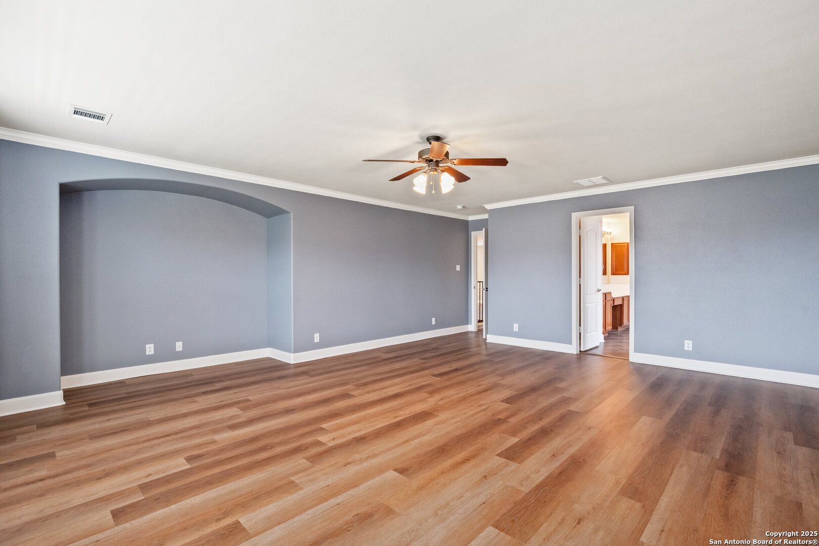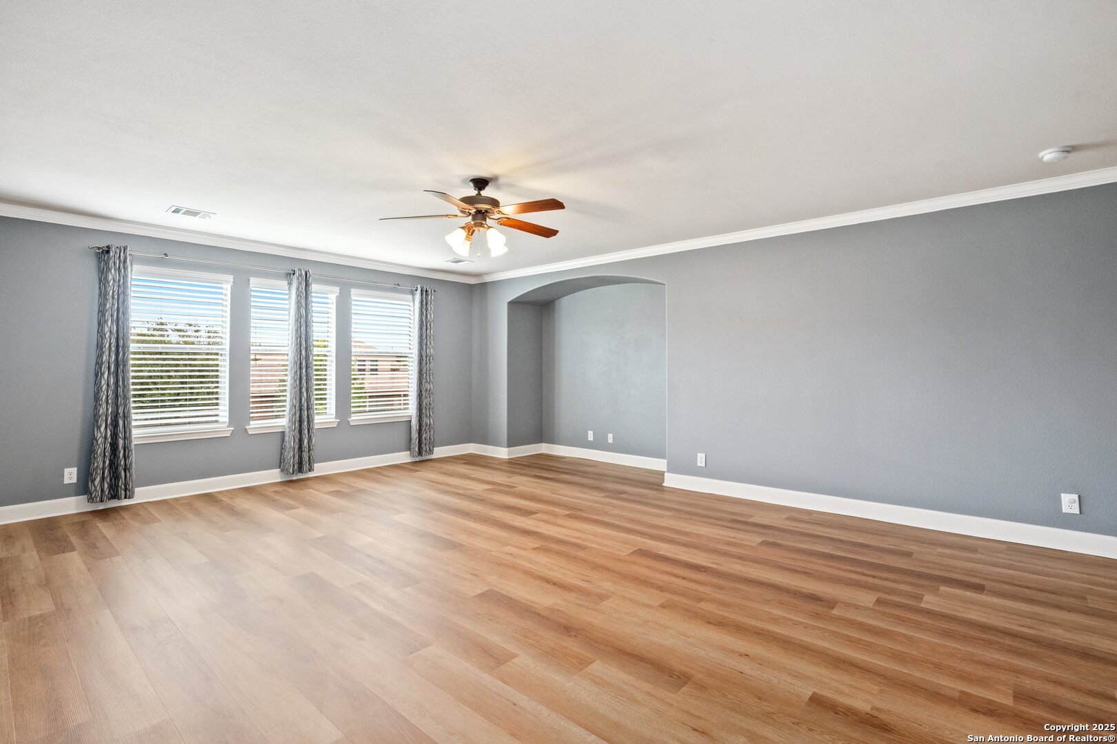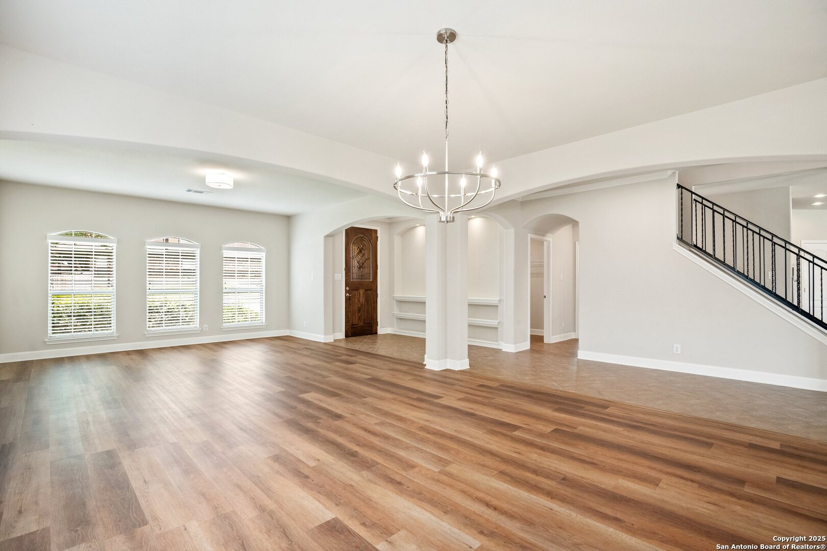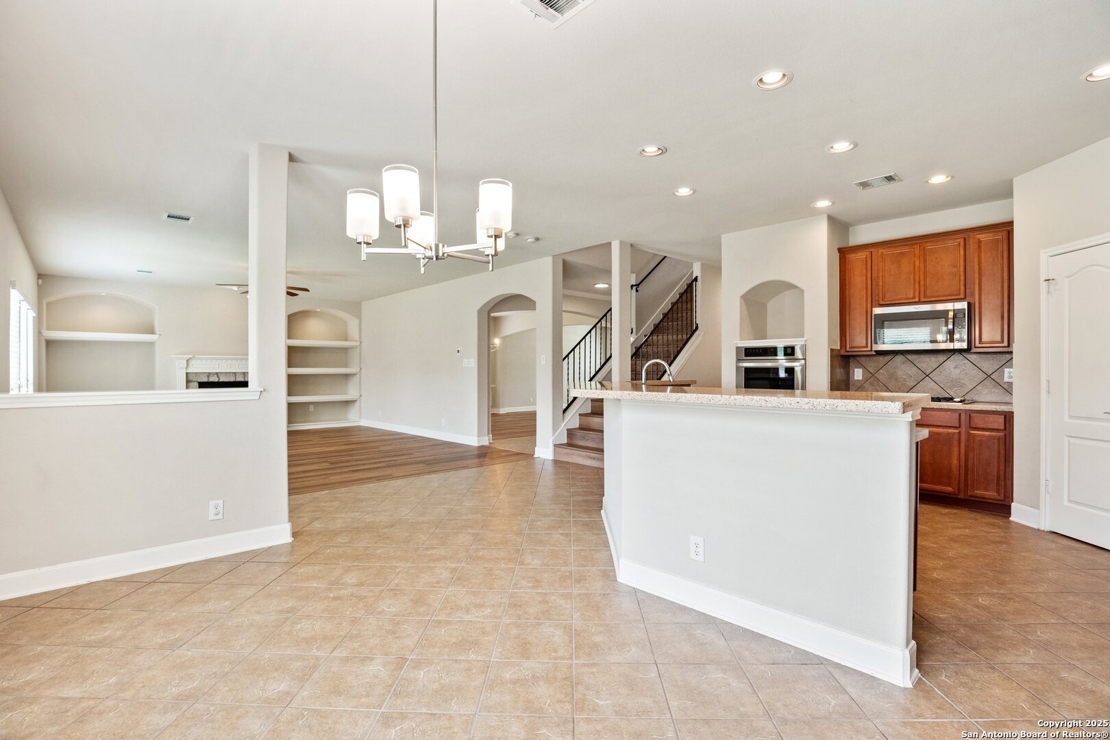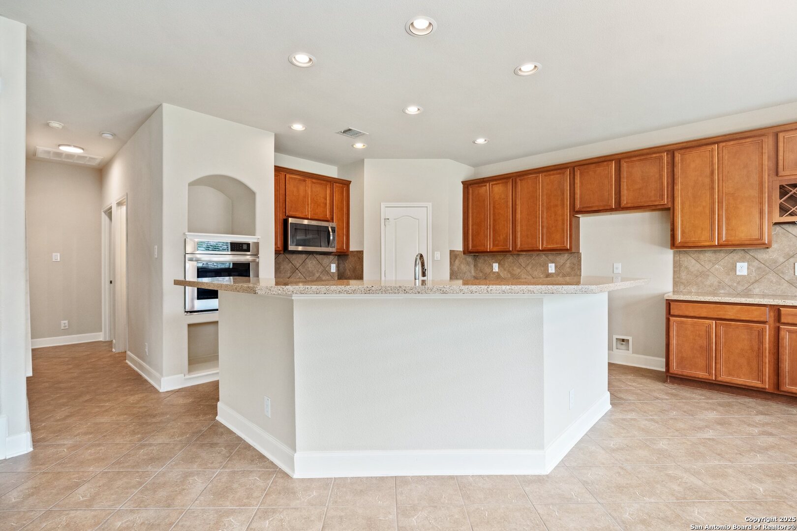 Spacious and move-in ready, this 2-story, 5-bedroom, 3-bath home is located in the popular Alamo Ranch community includes a first floor guest suite with full bath. Thoughtfully updated throughout, the home features brand new luxury vinyl plank flooring, fresh carpet, and a newly added exterior pergola. Major upgrades include a new roof, oven, and AC condenser-all installed in 2023. The property also includes a full sprinkler system and an owned 7.2kW solar panel setup for added energy efficiency. All bathrooms have brand new toilets. The light-filled, open-concept layout offers plenty of space for everyday living and entertaining. The first floor features a formal living and dining combo, as well as a second large living area with a fireplace and built-in shelving that flows into the kitchen and breakfast nook. The kitchen includes stainless steel appliances, gas cooking, and generous cabinetry for storage. A secondary bedroom on the first floor adds flexibility for guests or an office. Upstairs, the expansive primary suite includes a private bath with a soaking tub, walk-in shower, and generous closet space. Three additional secondary bedrooms, each with walk-in closets, surround a central loft-style living area that can be used as a game room or playroom. This Energy Star Qualified home has natural gas furnaces that perform well even during colder months. Ample storage throughout the home adds convenience. There is something for everyone in Alamo Ranch. Top-notch community amenities include a swimming pool, playground, tennis and basketball courts. Located just minutes from HEB, restaurants, this property is ready for its next chapter. Schedule your personal tour today!