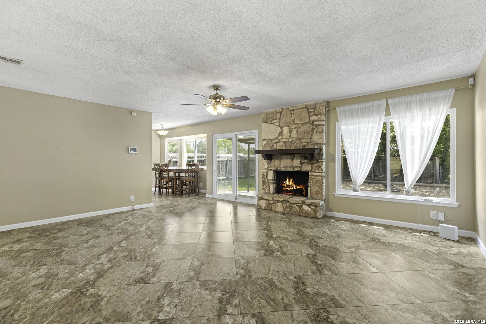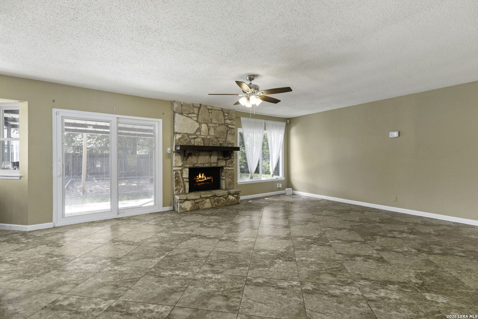 This charming 3 bedroom and 2 full bathroom home is ready for you. Located minutes from Highway 35 and Loop 410 with shopping and restaurants nearby. Interior features tile flooring throughout this house. Spacious family room with a wood burning fireplace. A roomy primary bedroom that offers an airy size bathroom with a double vanity, his and her walk-In closets. Second bedrooms share a full bathroom with a vanity. Exterior features covered patio with fenced backyard and mature trees. Recent Updates Include HVAC System 2023, Light Fixtures, Fans and Brand-new energy efficient windows and sliding glass doors.