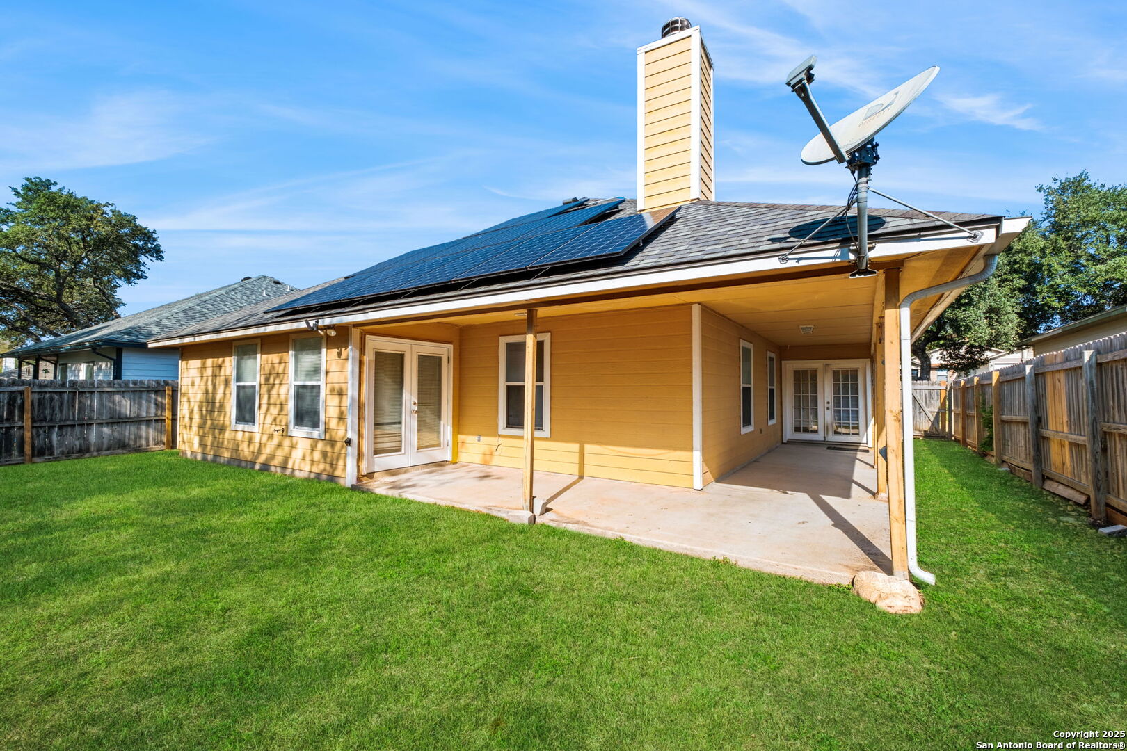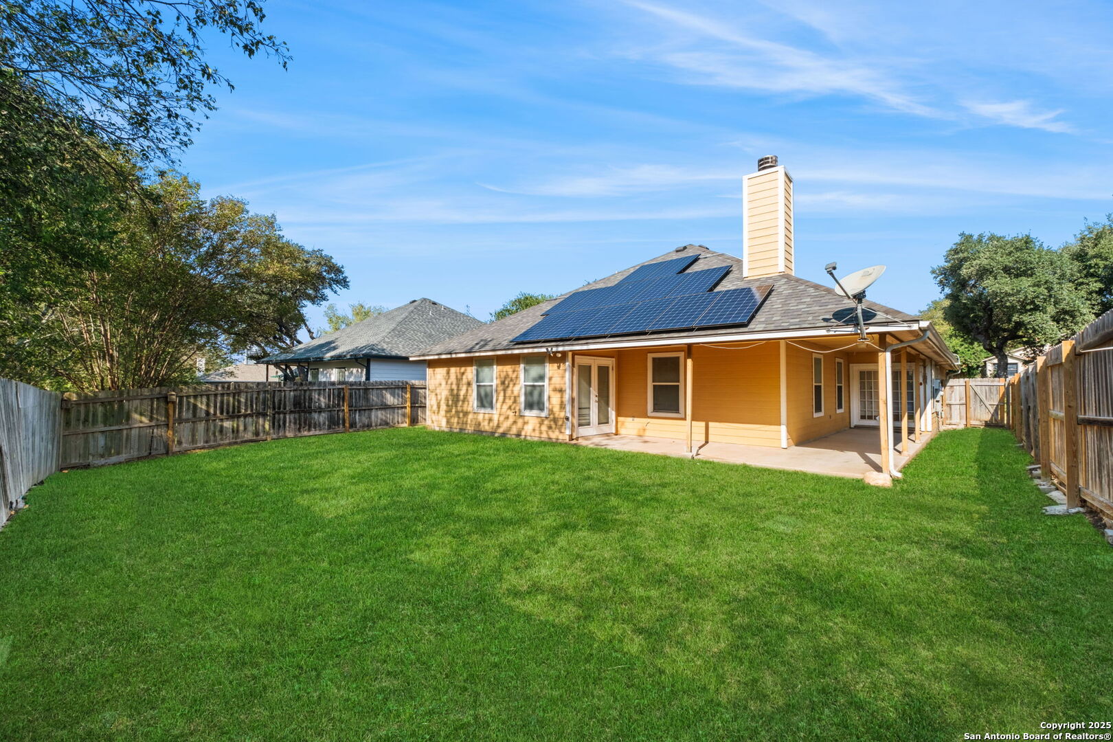 Great single-story 3-bedroom, 2-bath home with no HOA and the added benefit of owned solar panels for energy savings! Enjoy a spacious main living area with a cozy fireplace, perfect for relaxing or entertaining. Step outside to a large covered patio and fully privacy-fenced backyard, offering a wonderful outdoor retreat. The home also includes an attached two-car garage for added convenience. Ideally located near Loop 1604, you're just minutes from shopping, dining, and everything San Antonio has to offer-don't miss this opportunity! SOLAR PANELS (January 2022) ARE PAID OFF. ROOF Replaced 2021