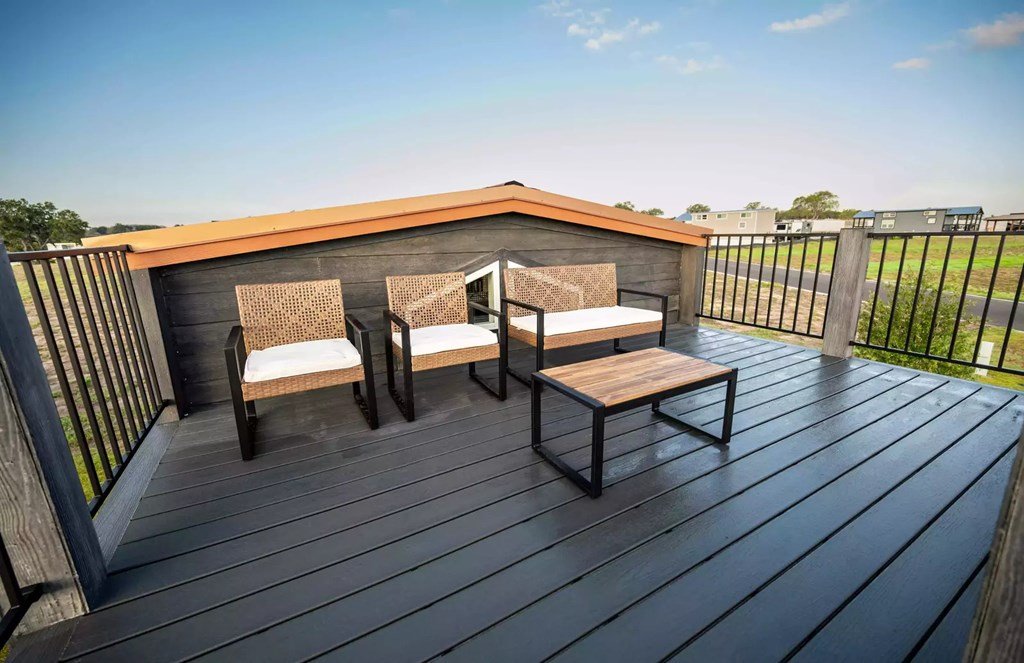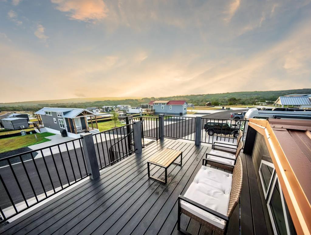 Tucked within the highly desirable Firefly Resort in Fredericksburg, Texas, this thoughtfully designed tiny home offers a unique opportunity to own a luxurious retreat in the heart of the Hill Country. Located just 10 miles from Main Street and surrounded by the vineyards of the famous Highway 290 wine trail, this property is ideal for both personal enjoyment and short-term rental income. The home itself is a masterclass in compact luxury. Inside, you'll find a cozy main-level bedroom, a full bathroom, and a well-equipped kitchen with everything you need to cook and entertain. The upper-level loft accommodates two full-size beds comfortably, making it a great space for families or guests. Every square foot of this home has been maximized to provide both comfort and style. Step outside and the charm continues. A covered front porch with a hanging chair offers the perfect spot to enjoy your morning coffee or a glass of local wine in the evening. Follow the elegant spiral staircase to the rooftop deck, where you can take in the wide-open skies and sweeping views of the Hill Country. And tucked around the back of the home is a private, covered hot tub—an unexpected bonus that makes this property truly feel like a personal spa getaway. Firefly Resort itself is full of amenities that make life easy and enjoyable. Residents and guests enjoy access to a resort-style pool with panoramic views, a modern clubhouse, outdoor kitchen and grill stations, laundry facilities, a business center, a dog park, and a playground. Whether you're looking for a weekend escape, a low-maintenance investment, or a place to call home in one of Texas's most charming destinations, Unit #205 offers it all—style, comfort, and an unbeatable location.