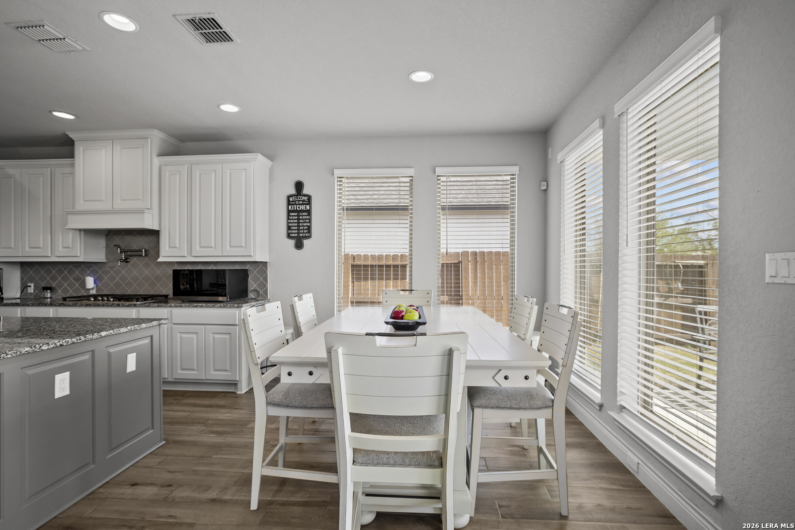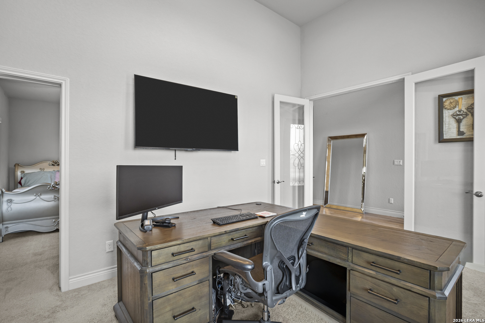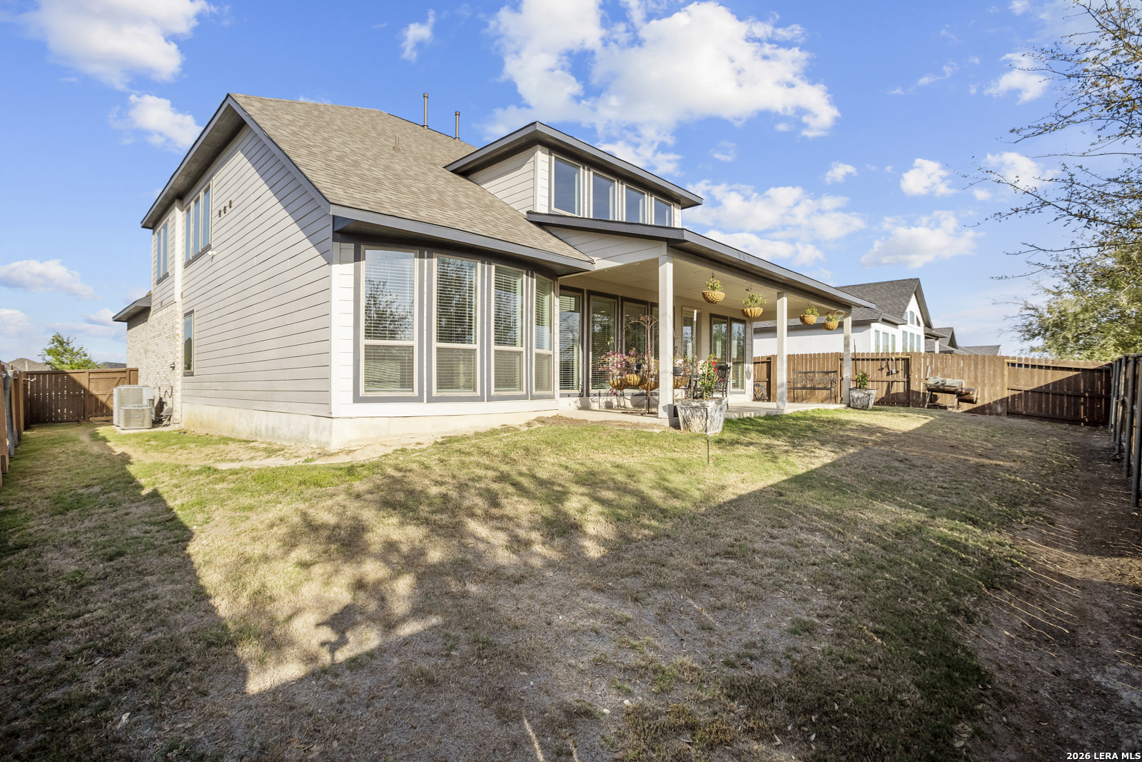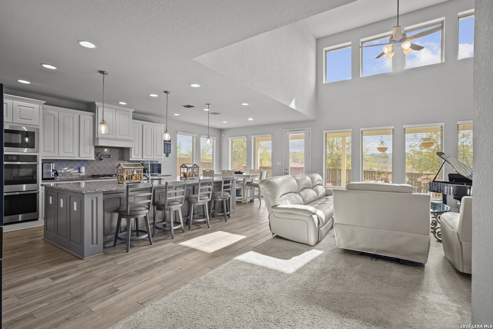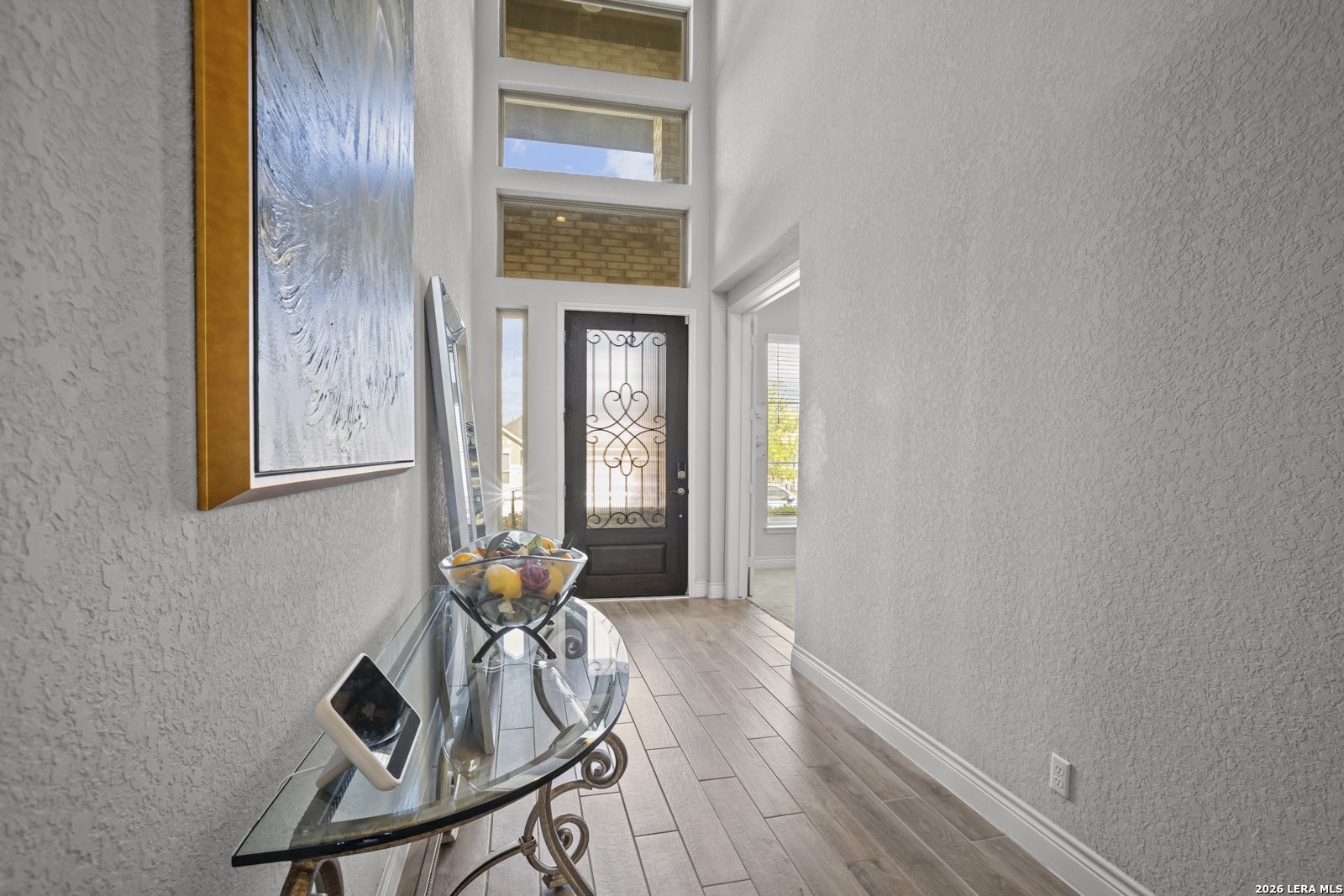 This stunning two story Perry Home offers 3,352 square feet of refined living space with an open floor plan designed for both comfort and entertaining. Just off the grand foyer at the front of the home is a private office, perfect for working from home or a quiet study space. The spacious living room features soaring ceilings and a wall of large windows that fill the home with natural light and overlook the backyard. The open layout flows seamlessly into the kitchen, which includes a large island with seating, granite countertops, stainless steel appliances, double ovens, and a five burner gas cooktop, making it perfect for gatherings and everyday living. The primary suite offers a spa like bathroom with a large soaking tub, separate walk in shower, double vanity, and plenty of space to relax and unwind. Additional upgrades include ceramic wood tile flooring, neutral tones throughout, a tankless water heater, three car garage, mudroom, blinds, stained fence, and a full irrigation system. Located in a community with exceptional amenities, Homestead Commons features a fitness center, pool, pavilion, parks, and walking trails. This move in ready home offers the feel of new construction without the wait and is priced aggressively.