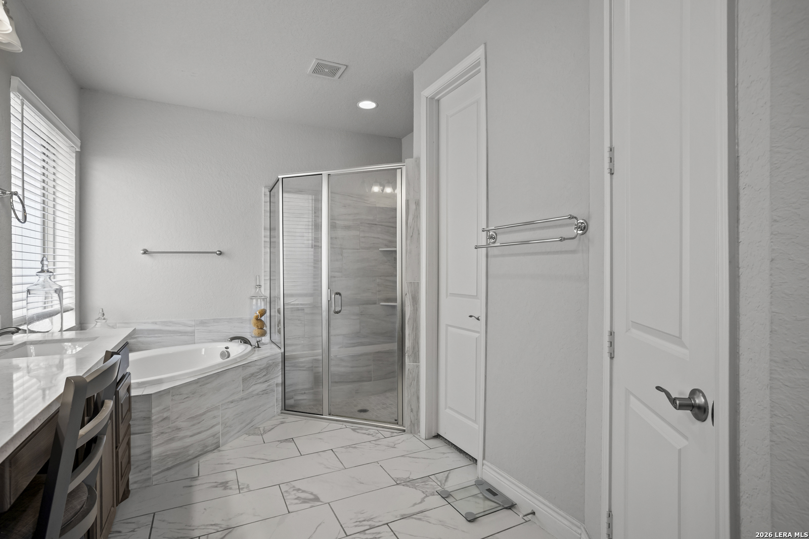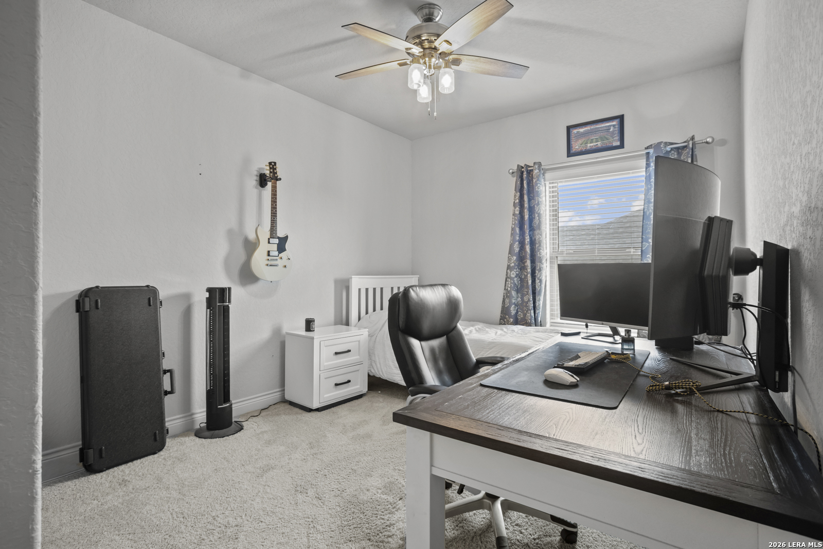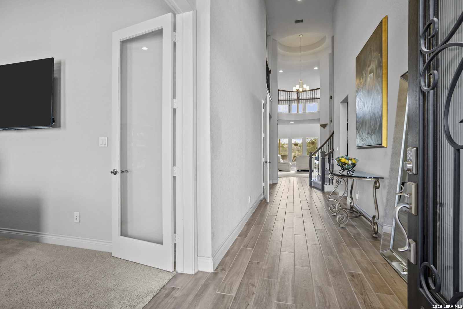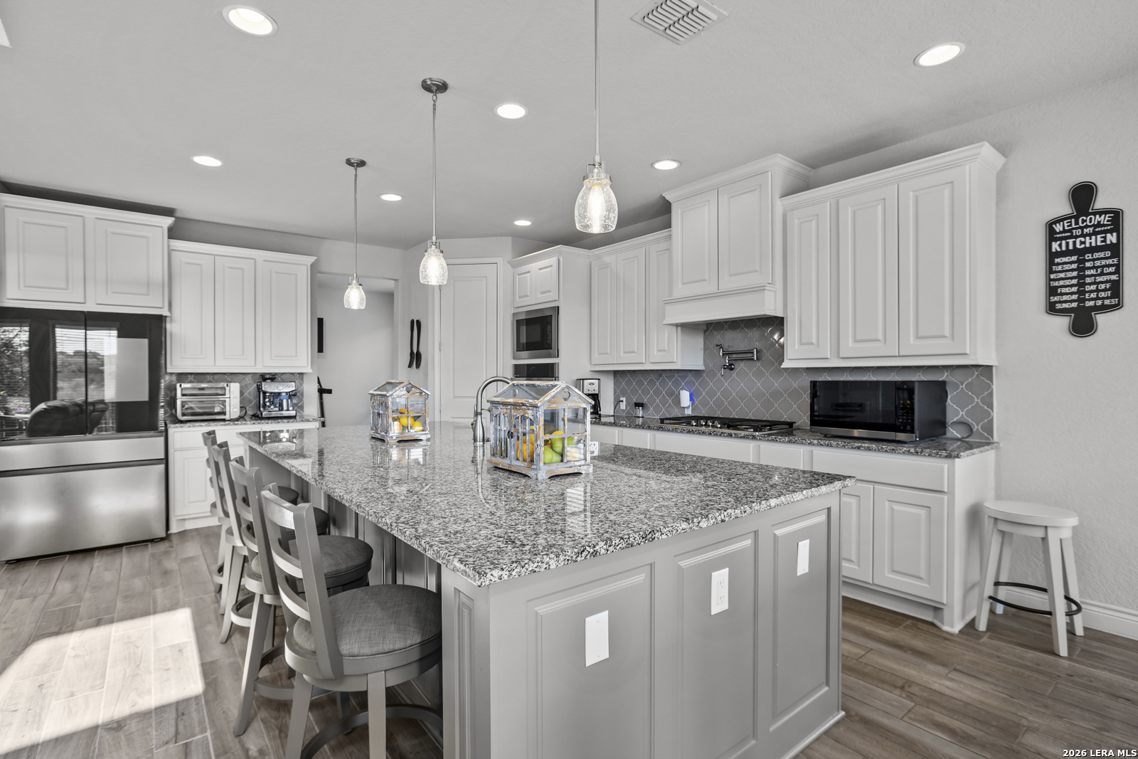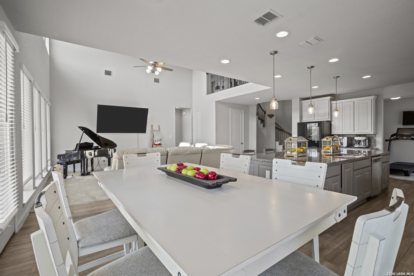 This stunning two story Perry Home offers 3,352 square feet of refined living space with an open floor plan designed for both comfort and entertaining. Just off the grand foyer at the front of the home is a private office, perfect for working from home or a quiet study space. The spacious living room features soaring ceilings and a wall of large windows that fill the home with natural light and overlook the backyard. The open layout flows seamlessly into the kitchen, which includes a large island with seating, granite countertops, stainless steel appliances, double ovens, and a five burner gas cooktop, making it perfect for gatherings and everyday living. The primary suite offers a spa like bathroom with a large soaking tub, separate walk in shower, double vanity, and plenty of space to relax and unwind. Additional upgrades include ceramic wood tile flooring, neutral tones throughout, a tankless water heater, three car garage, mudroom, blinds, stained fence, and a full irrigation system. Located in a community with exceptional amenities, Homestead Commons features a fitness center, pool, pavilion, parks, and walking trails. This move in ready home offers the feel of new construction without the wait and is priced aggressively.